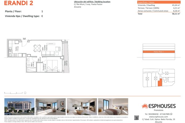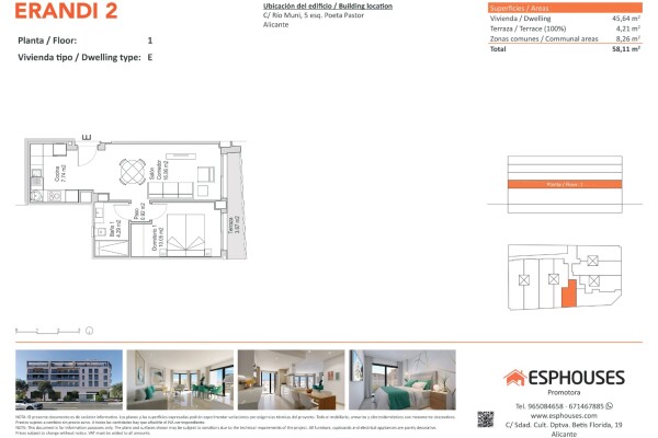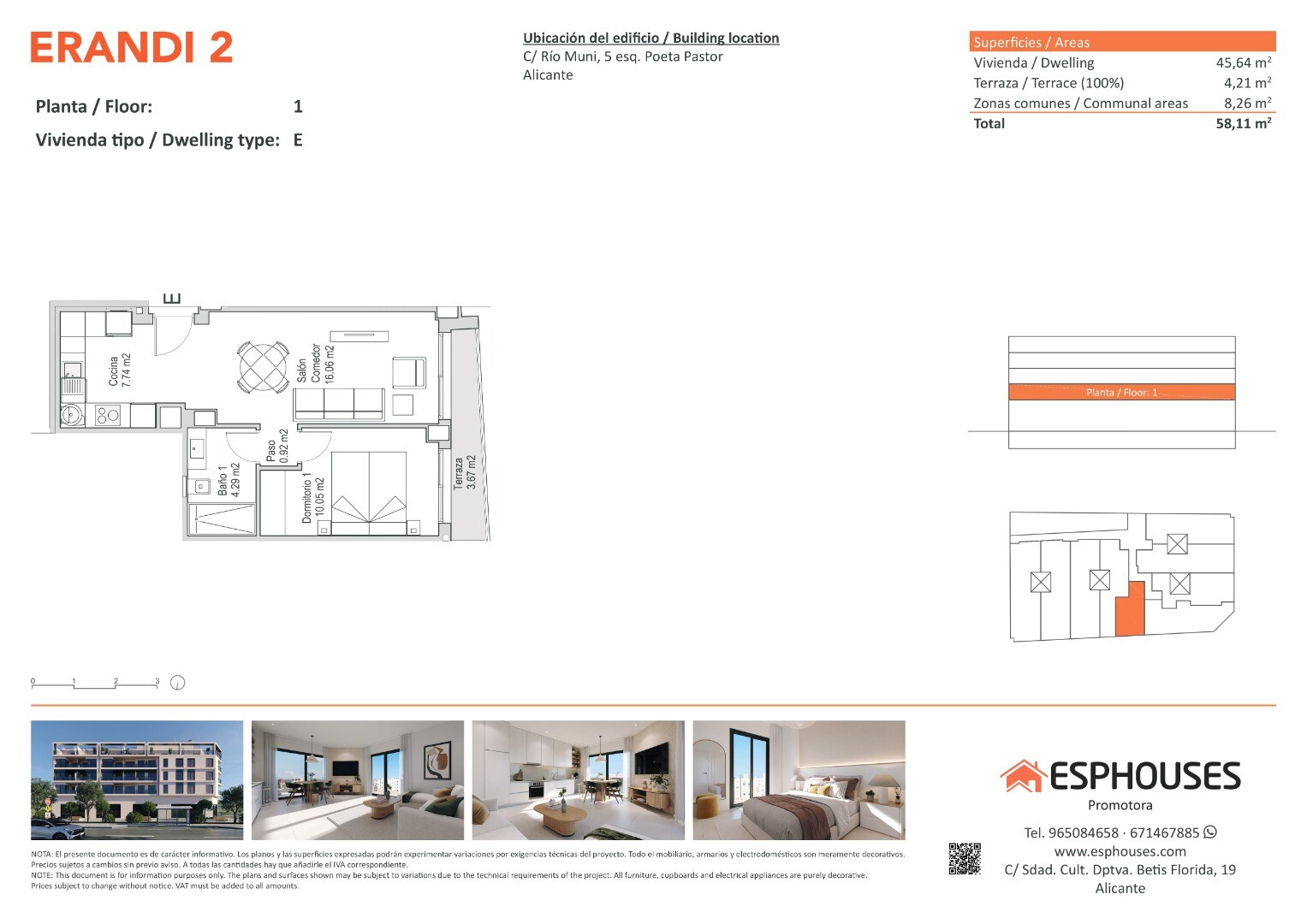 Situată în cartierul La Florida, una dintre cele mai emblematice și bine conectate zone din Alicante, la doar câteva minute de centrul comercial Puerta de Alicante, 10–15 minute cu transportul public până în centrul orașului, la 2 km de plajă și la 12 km de aeroport. O alegere excelentă pentru locuit sau investit.