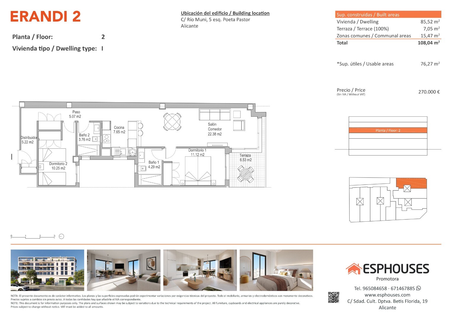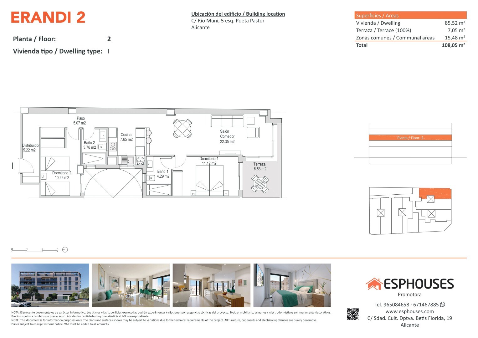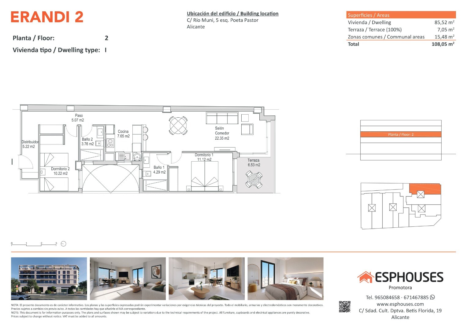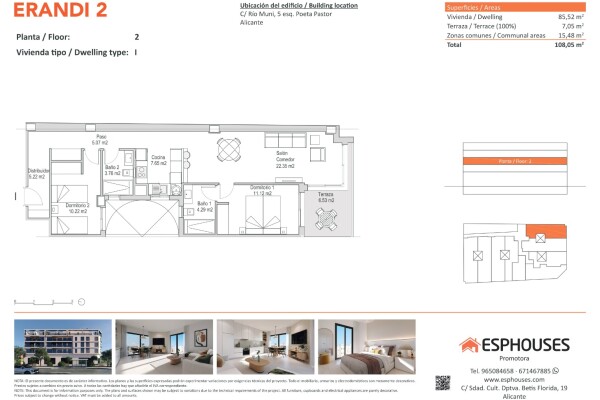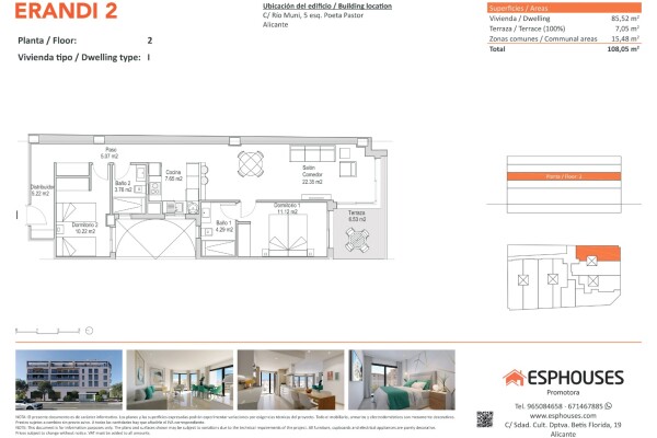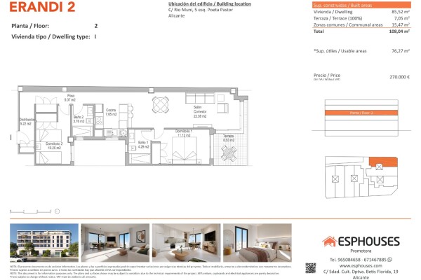 Această locuință atractivă se află la etajul al doilea al clădirii moderne ERANDI 2, situată în cartierul bine conectat și dezvoltat La Florida, din Alicante. Suprafața construită este de 85,52 m² și cuprinde două dormitoare cu dulapuri încastrate, două băi, un living spațios cu bucătărie deschisă și o terasă de 7,05 m² orientată spre sud — perfect...ă pentru a te bucura de soare pe tot parcursul zilei.