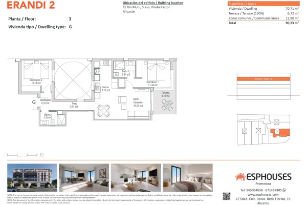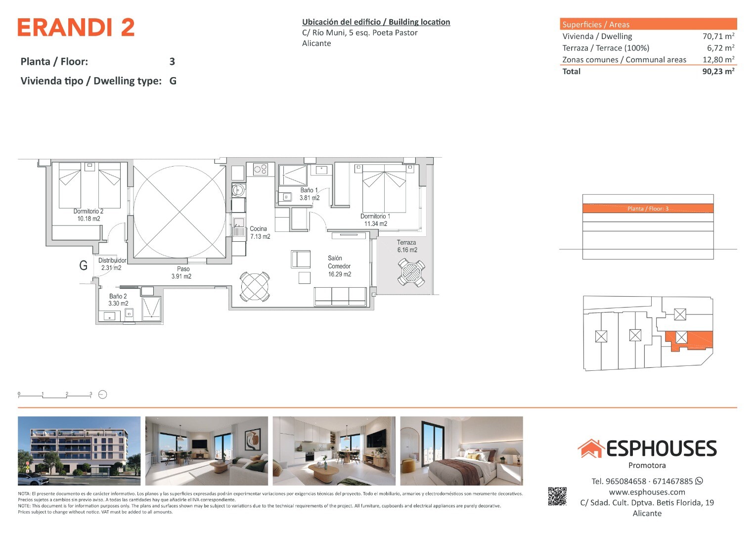 Acest apartament nou, situat la etajul trei al clădirii ERANDI 2, oferă un design modern și funcțional, cu o excelentă orientare sudică care permite lumină naturală pe tot parcursul zilei. Este amplasat în La Florida, un cartier emblematic și bine conectat din Alicante.
