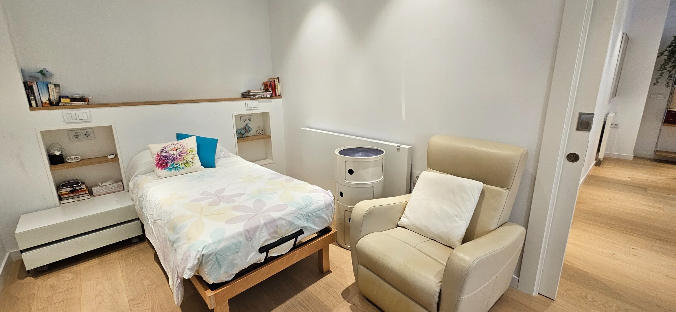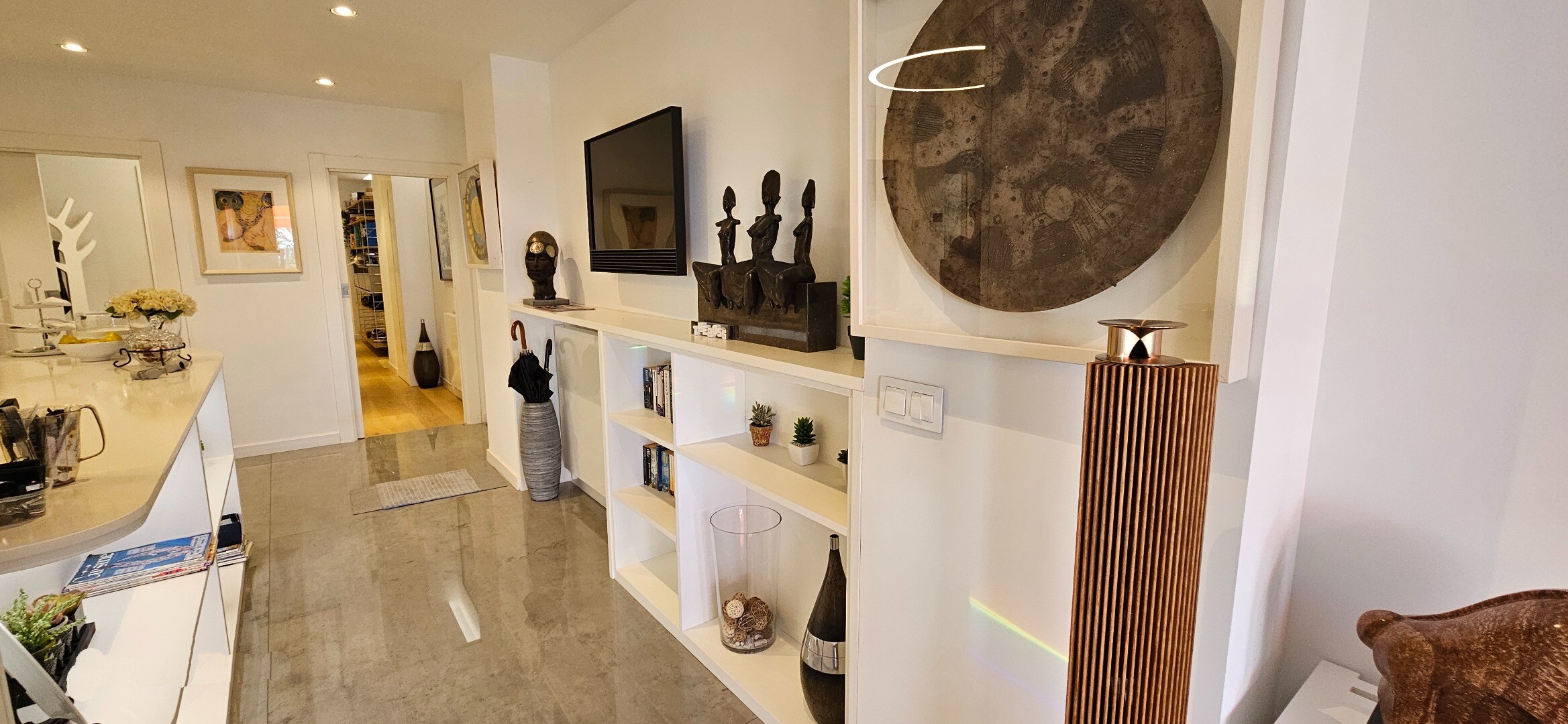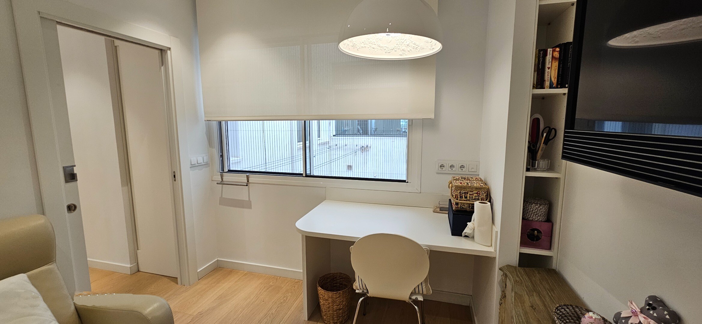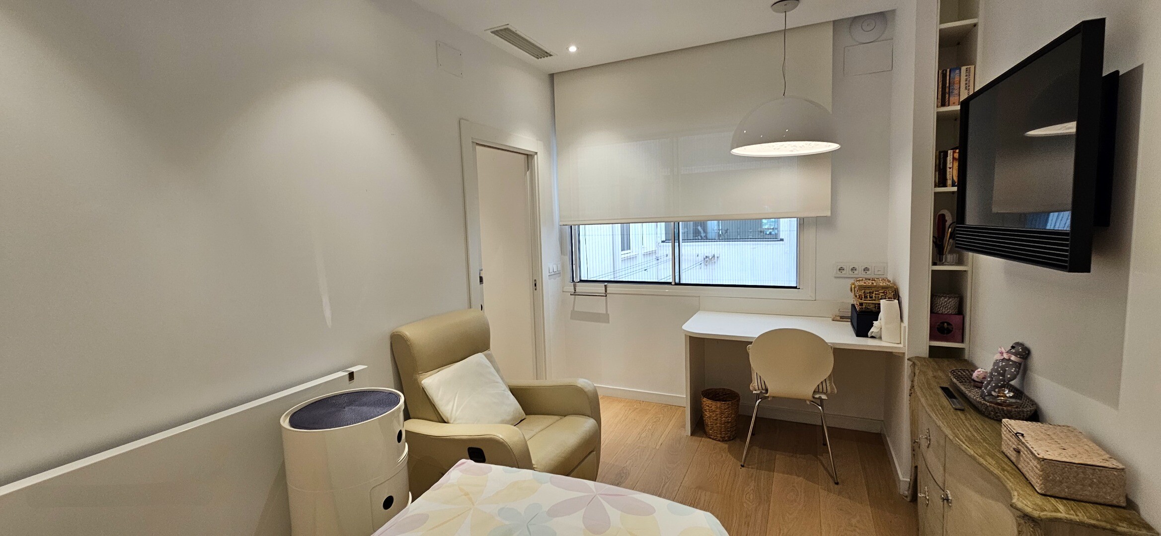 În ceea ce privește facilitățile, locuința dispune de încălzire centrală pe gaz natural prin intermediul radiatoarelor Irsap și aer condiționat prin conducte cu sistem Airzone, cu două unități independente pentru zona de zi și de noapte. Pereții netezi, mobilierul realizat la comandă și ușile glisante contribuie la o estetică curată și modernă, optimizând fiecare spațiu.