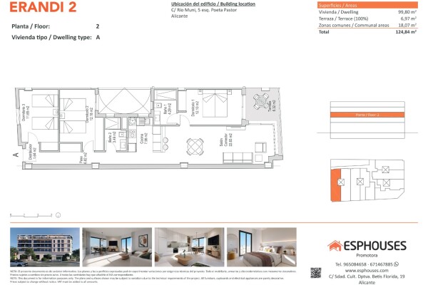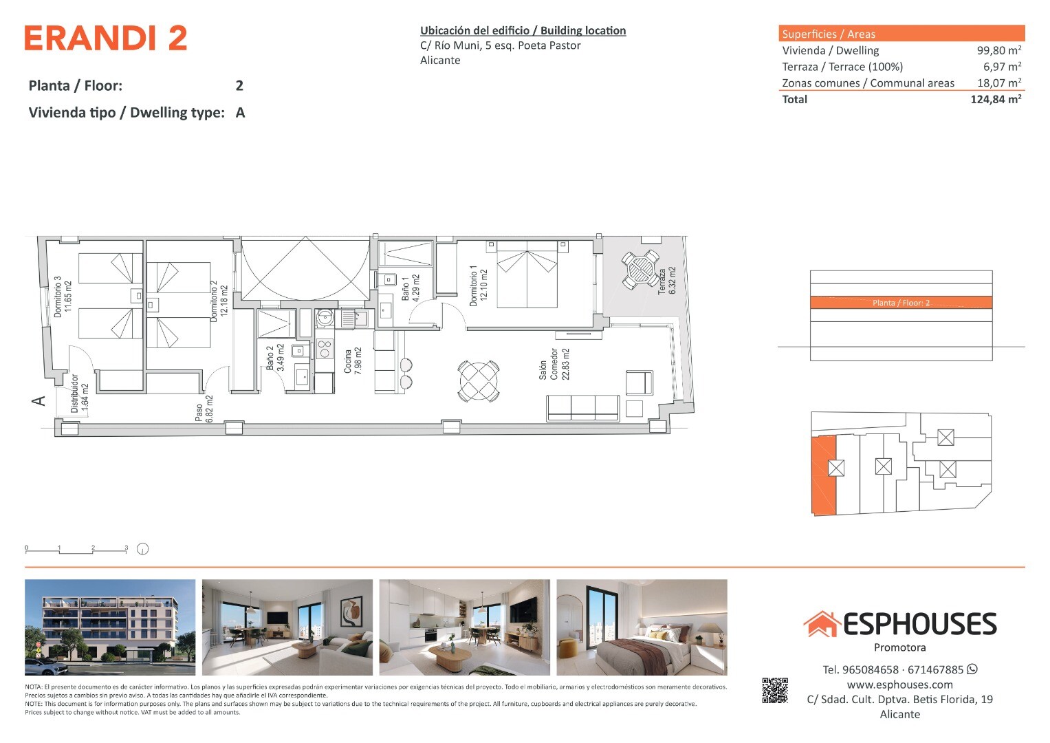 Locația este excelentă – la doar câteva minute de centrul comercial Puerta de Alicante, la doar 2 km de plajă și cu acces rapid către centrul orașului și aeroportul din Alicante, situat la 12 km. O oportunitate ideală pentru a locui sau a investi într-un mediu urban modern, cu toate facilitățile.
