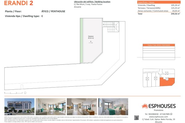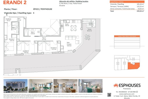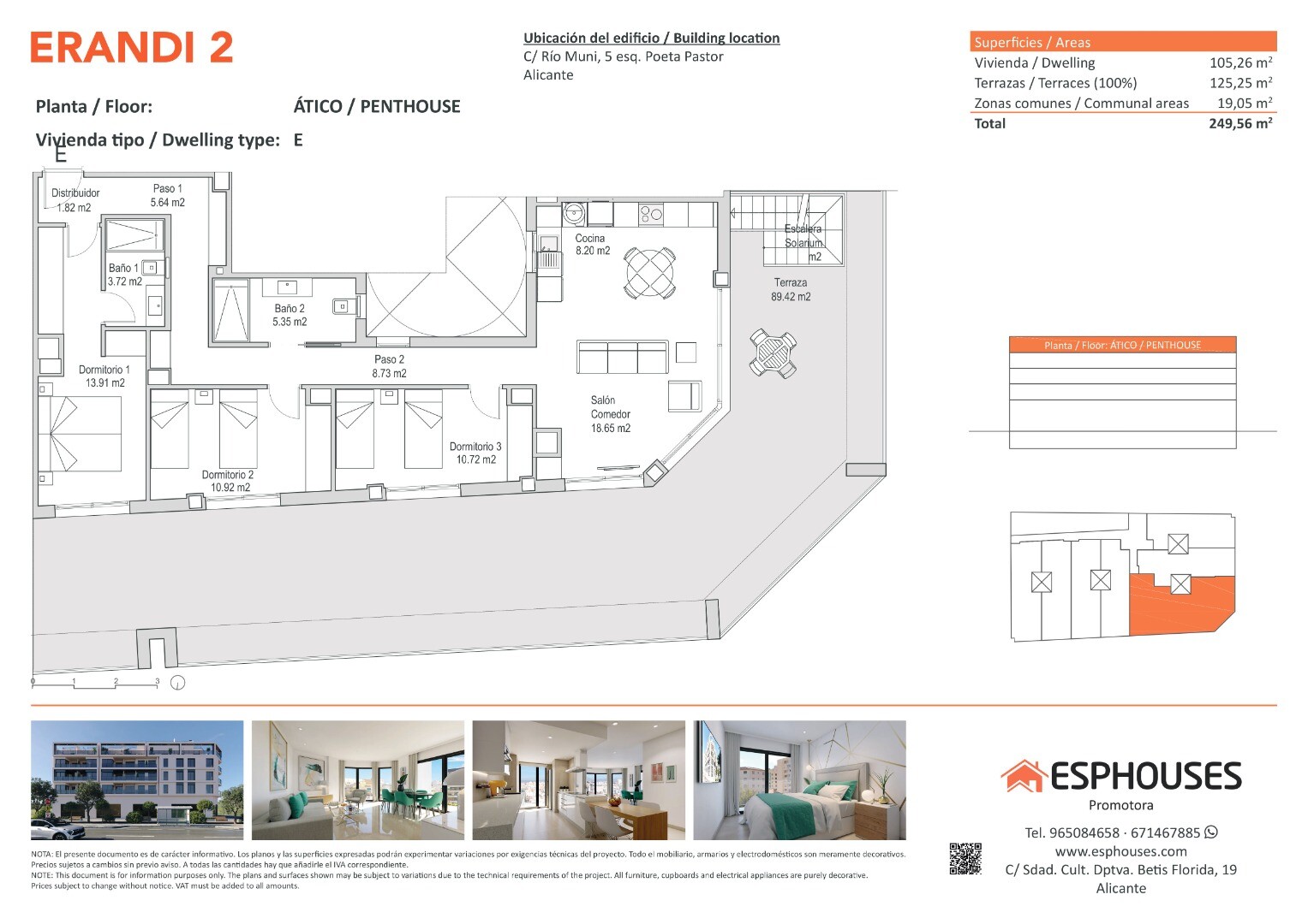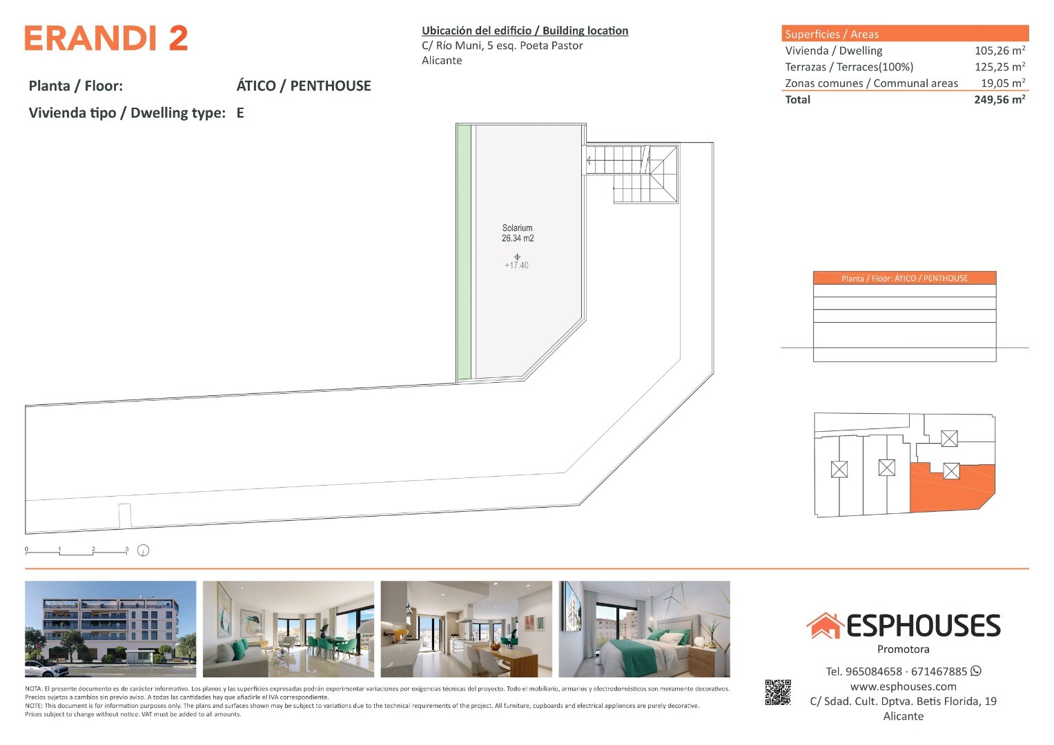 Acest penthouse spectaculos se află la etajul al patrulea al clădirii ERANDI 2, în cartierul emblematic La Florida – una dintre cele mai bine conectate și dezvoltate zone din Alicante. Cu o suprafață construită de 105,26 m², locuința include trei dormitoare spațioase cu dulapuri încastrate, două băi complete și un living luminos cu bucătărie deschi...să, într-un design modern care profită din plin de lumina naturală.