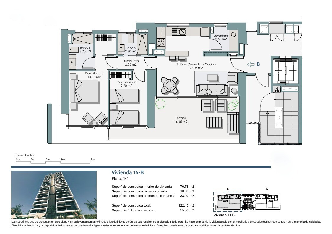 Descoperiți un concept rezidențial unic, format din 44 de locuințe de lux distribuite într-o clădire impresionantă de 22 de etaje. Slim Tower se remarcă prin arhitectura sa inovatoare, cu linii elegante și moderne, situată strategic într-o zonă privilegiată din Benidorm, lângă prestigiosul colegiu Lope de Vega și spitalul IMED Levante. Fiecare dint...re aceste locuințe a fost concepută pentru a oferi un cămin primitor și funcțional, evidențiindu-se prin saloanele spațioase și luminoase cu bucătărie americană, galerie și două băi complete. Finisajele de calitate superioară și terasele mari se îmbină cu un angajament ferm pentru eficiența energetică, creând un spațiu de maximă armonie și confort. În plus, pentru un plus de confort, prețul fiecărui apartament include un loc de parcare și o boxă situate la subsolul clădirii. Stilul de viață în acest complex este completat de zone comune excepționale, unde rezidenții se pot bucura de o piscină de tip infinity, solarium și grădini atent proiectate pentru relaxare. Acest cadru ideal este completat de o zonă pentru copii și proximitatea față de facilități sportive, magazine și o gamă largă de servicii, asigurând că luxul și practicalitatea sunt întotdeauna la îndemâna dumneavoastră.
