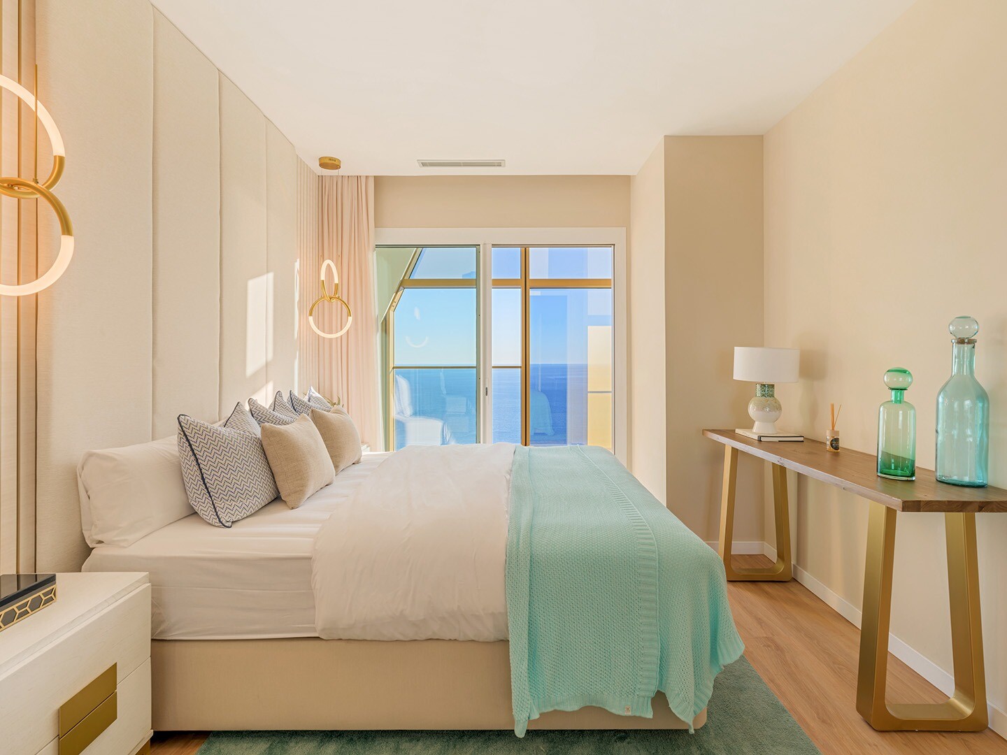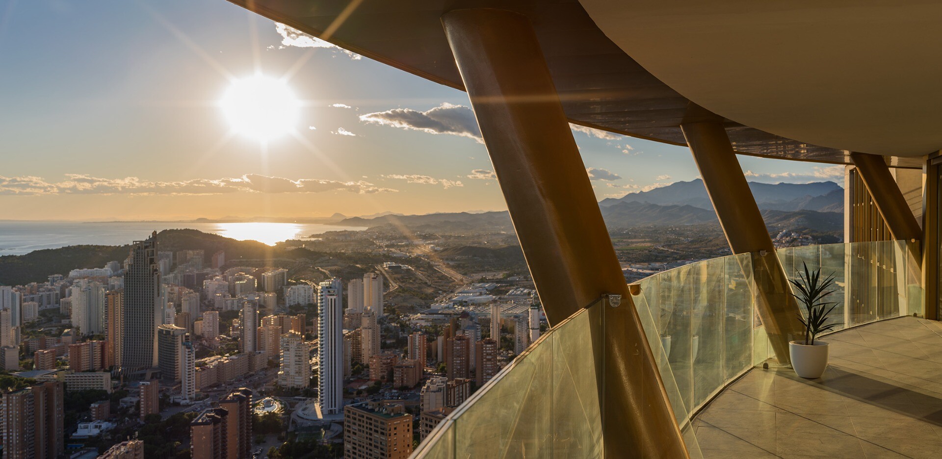 Situat la etajul 39, între cele două turnuri ale emblematicului Edificio Intempo, în Benidorm, în structura cunoscută sub numele de "Diamante", acest apartament de lux are o suprafață de 179 m². Acesta are 3 dormitoare și 2 băi. Este dotat cu aer condiționat. Acesta include un loc de garaj și o cameră de depozitare.