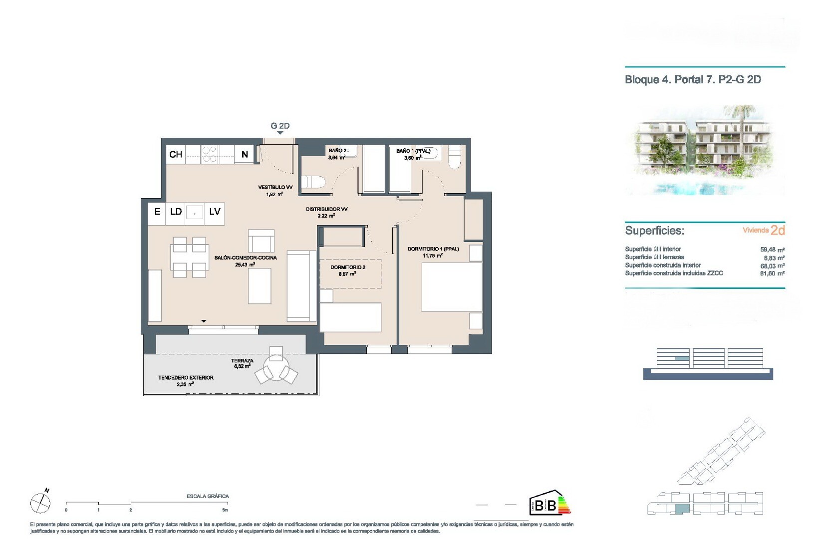 Acest apartament nou construit elegant în Denia va oferi un stil de viață modern și confortabil într-o locație privilegiată. Cu un design contemporan și finisaje de înaltă calitate, această locuință va avea 2 dormitoare care vor oferi un spațiu confortabil și versatil pentru viitorii săi rezidenți. Cele 2 băi proiectate elegant vor oferi confort și... funcționalitate pentru întreaga familie. Inima acestui apartament va fi reprezentată de livingul-sufragerie luminos cu bucătărie integrată, creând un mediu modern și funcțional pentru a vă bucura de momente de convivialitate și relaxare. Dulapurile încorporate vor maximiza spațiul de depozitare, în timp ce aerul condiționat cald și rece prin conducte va asigura un confort optim pe tot parcursul anului. Geamurile duble vor asigura o izolare acustică și termică, creând o atmosferă liniștită și confortabilă. Cu 80 de metri pătrați construiți, acest apartament va oferi spațialitate și confort pentru viața de zi cu zi. În plus, va avea o terasă frumoasă de 7 metri pătrați, unde rezidenții se vor putea bucura de priveliștea panoramică a impresionantului Montgó. Ansamblul se va mândri cu o zonă comună excepțională, care va include piscine, grădini și zone comune interioare și exterioare, oferind spații pentru relaxare și recreere. Cu un loc de garaj și o cameră de depozitare incluse, acest apartament va oferi un confort suplimentar pentru viitorii săi rezidenți. Cu vedere la Montgó și toate facilitățile unui complex rezidențial modern, acest apartament nou în Denia va fi alegerea perfectă pentru cei care caută un stil de viață confortabil și sofisticat pe frumoasa Costa Blanca.