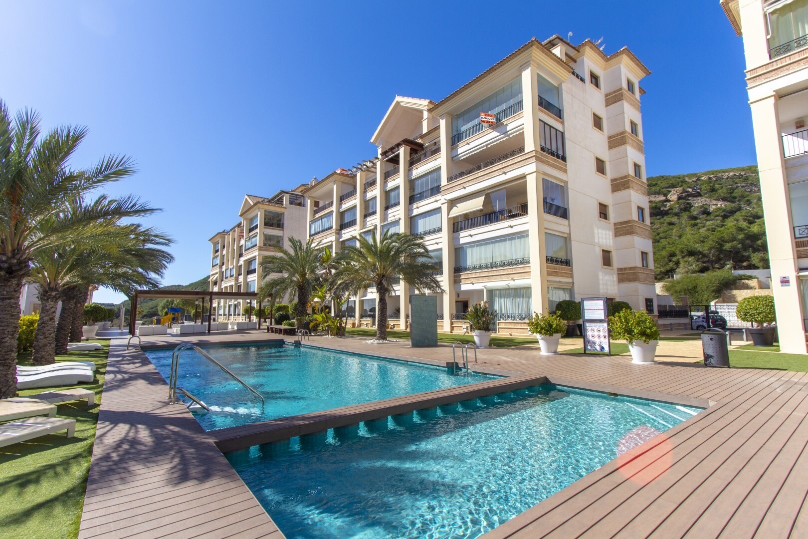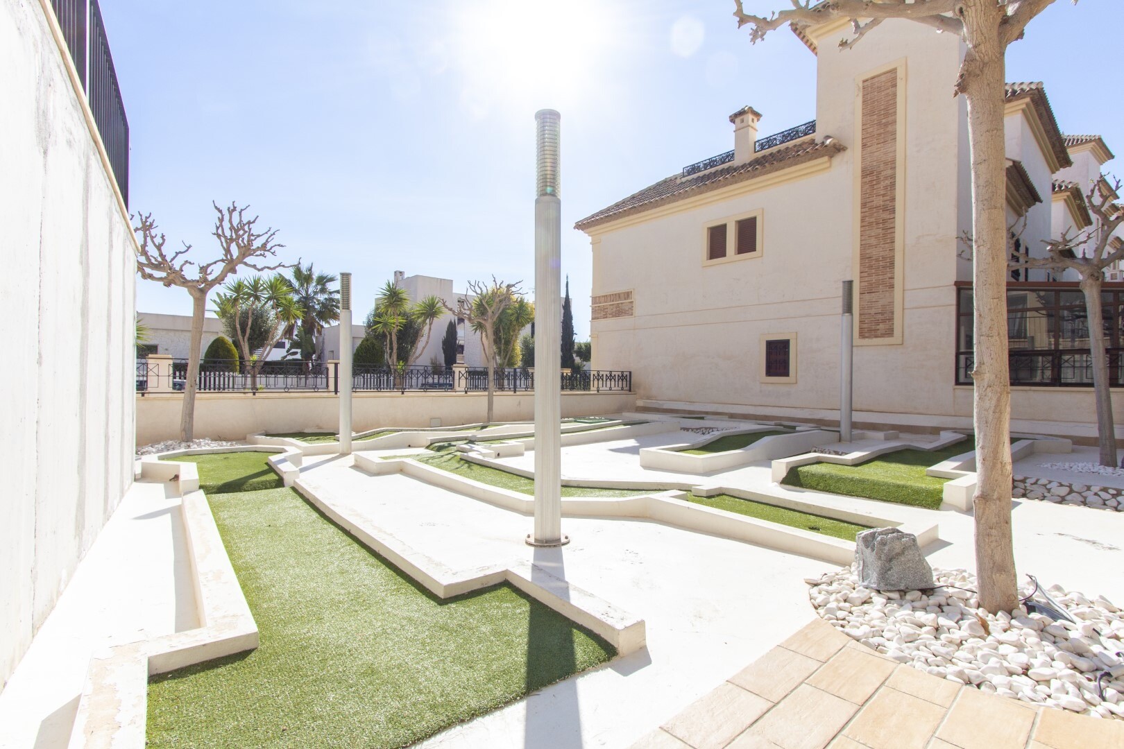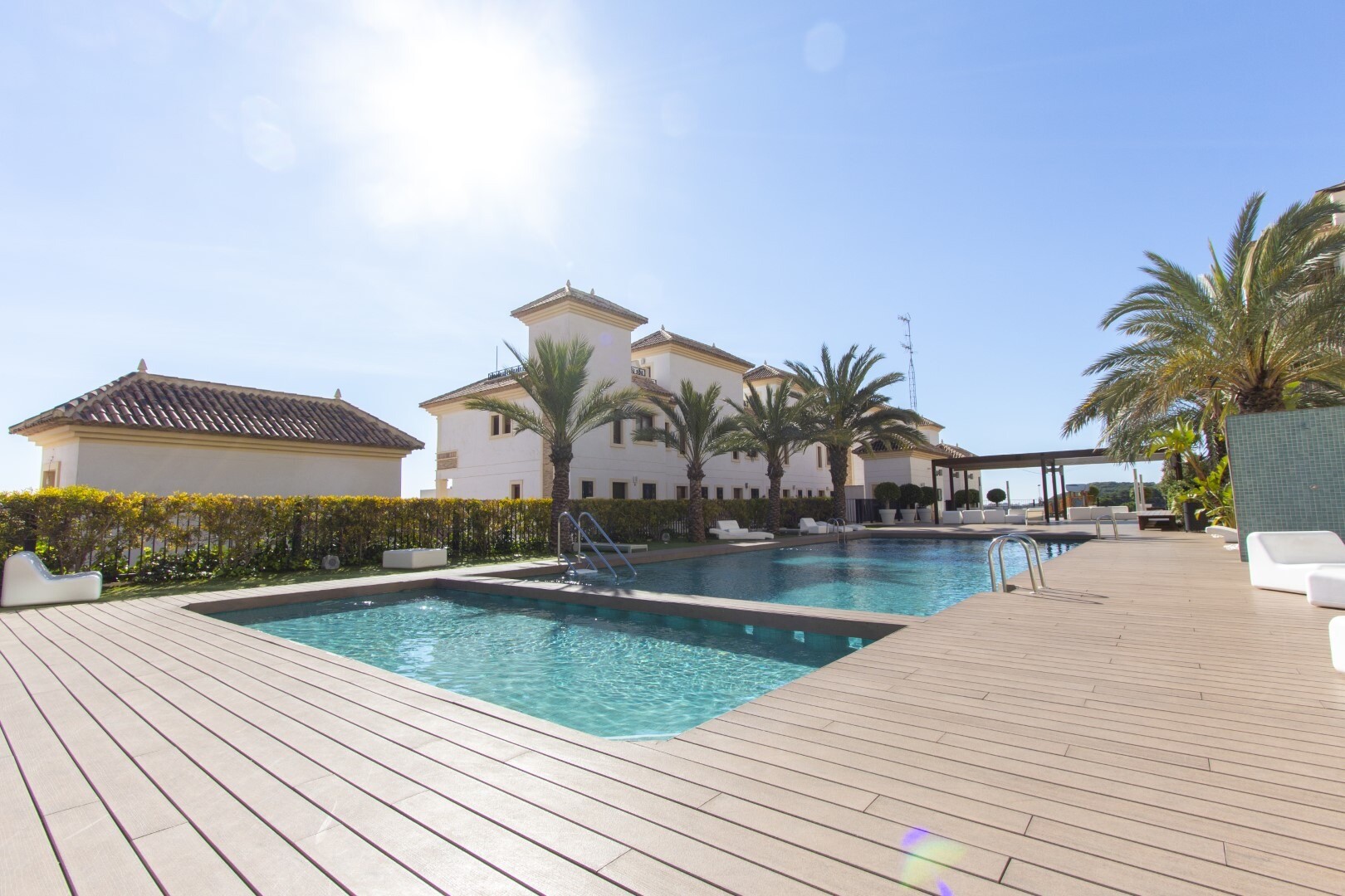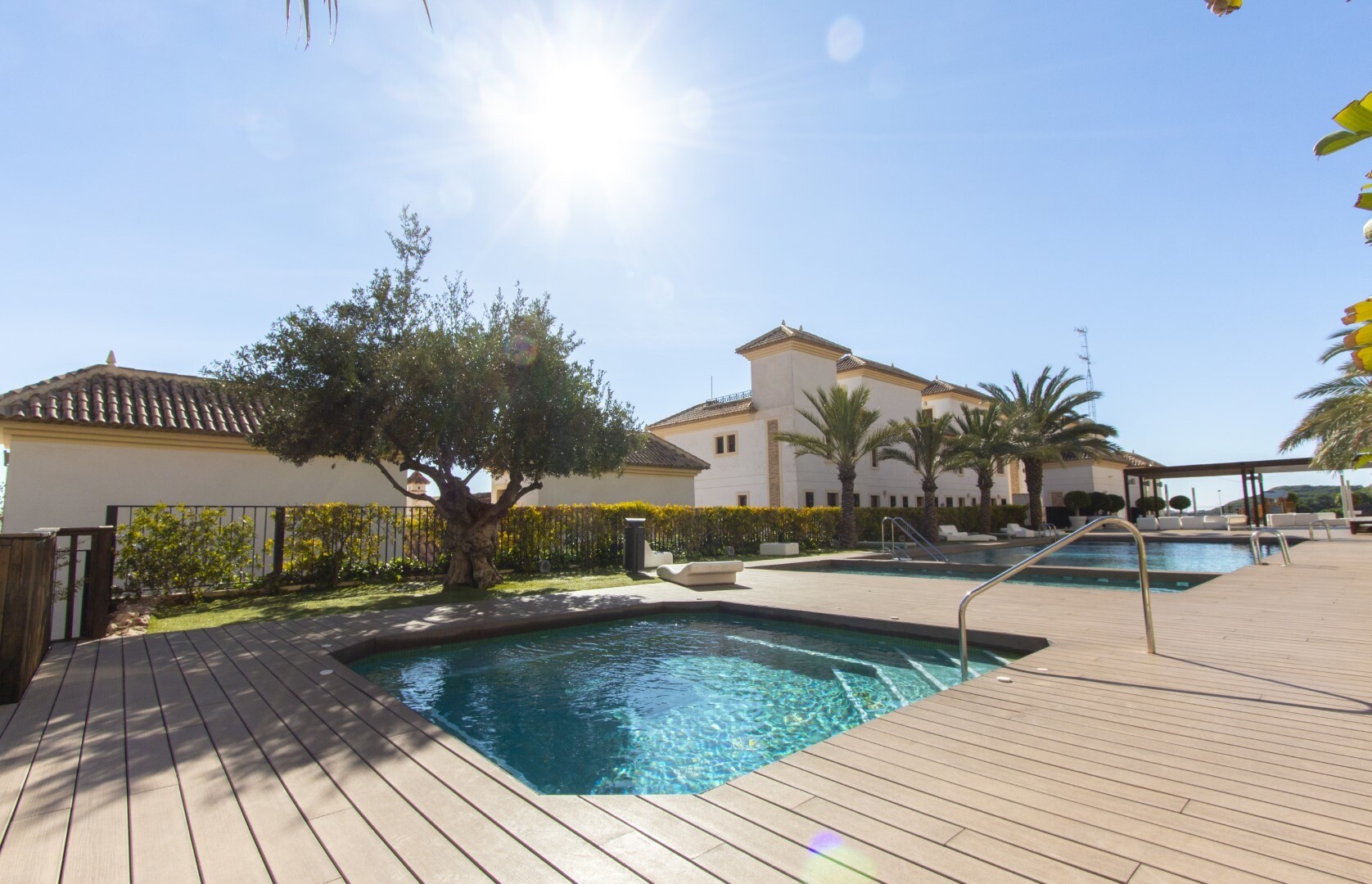 Apartament la parter, intr-o zona rezidentiala inchisa, cu acces direct la zona de gradina cu piscina si gradini. Casa este formata din 2 dormitoare si 2 bai, cu o bucatarie independenta cu galerie si patio, living si sufragerie precum si cele 2 dormitoare cu acces la o terasa mare vitrata. Locuinta a fost construita cu materiale si finisaje de cea... mai buna calitate, locuinta dispune de jaluzele motorizate, sistem de automatizare a locuintei, seif, aer conditionat conductabil si multe alte detalii. Locuința are o piscină mare de vară și o piscină de iarnă, saună, sală de sport, teren de paddle tenis, minigolf și zone frumoase de grădină de care se bucură vecinii. Pretul include un loc de parcare la subsolul blocului. Casa se vinde cu toate mobila si electrocasnicele.