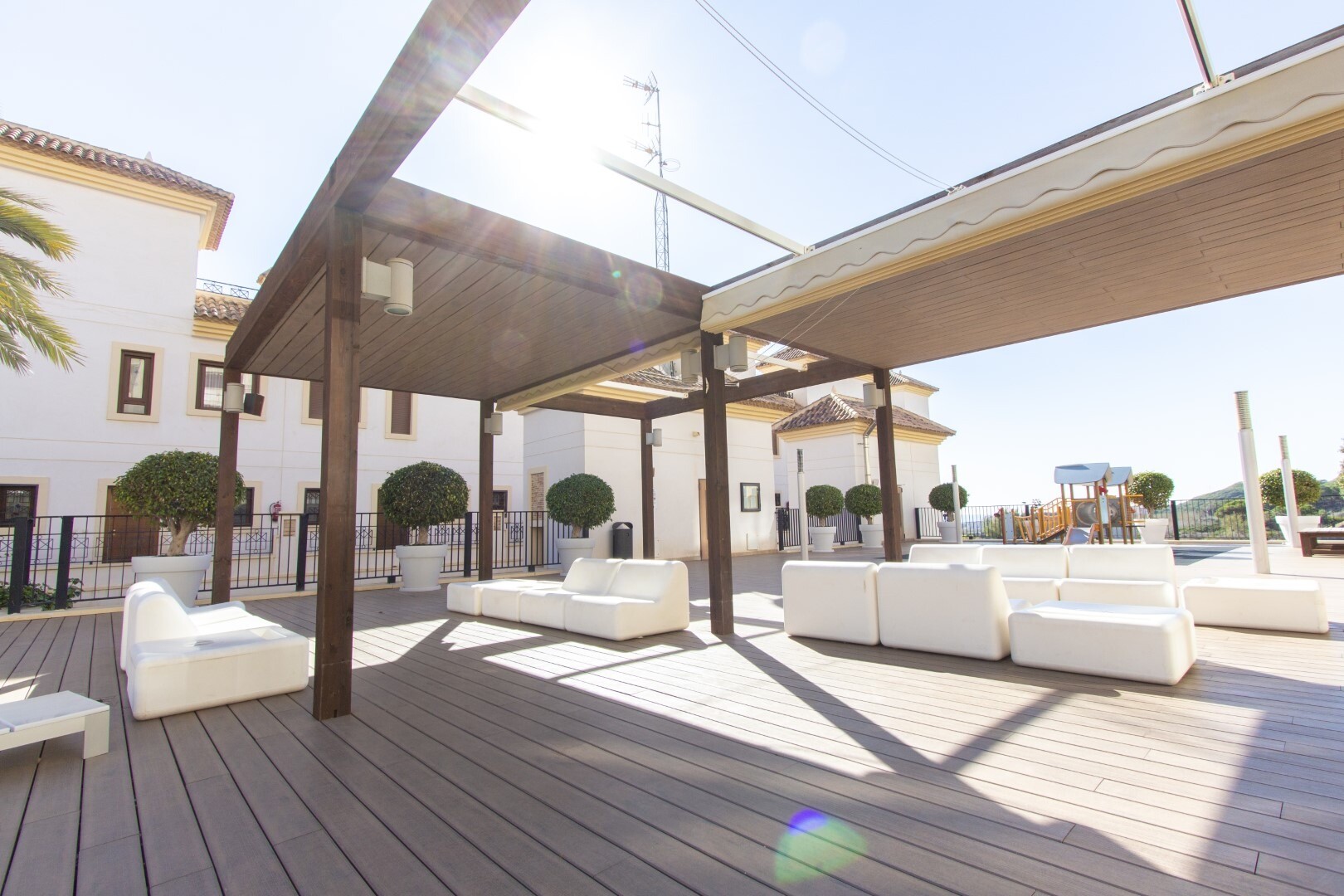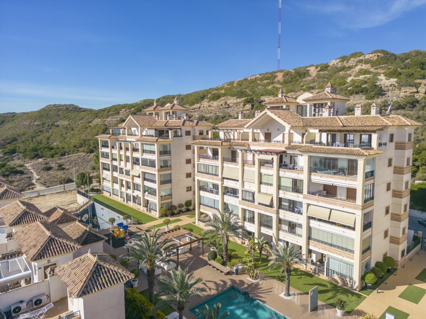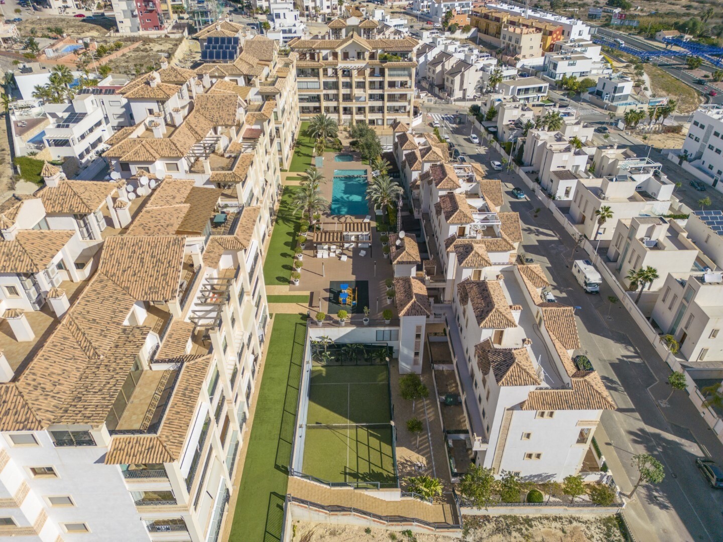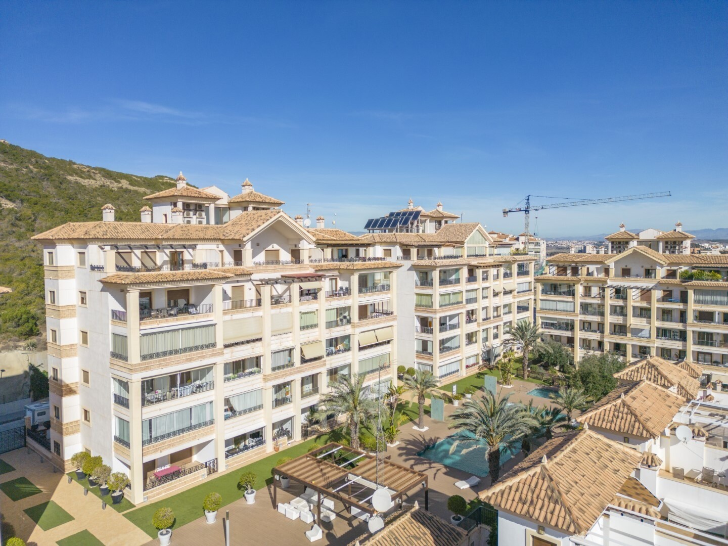 Apartament la parter, intr-o zona rezidentiala inchisa, cu acces direct la zona de gradina cu piscina si gradini. Casa este formata din 2 dormitoare si 2 bai, cu o bucatarie independenta cu galerie si patio, living si sufragerie precum si cele 2 dormitoare cu acces la o terasa mare vitrata. Locuinta a fost construita cu materiale si finisaje de cea... mai buna calitate, locuinta dispune de jaluzele motorizate, sistem de automatizare a locuintei, seif, aer conditionat conductabil si multe alte detalii. Locuința are o piscină mare de vară și o piscină de iarnă, saună, sală de sport, teren de paddle tenis, minigolf și zone frumoase de grădină de care se bucură vecinii. Pretul include un loc de parcare la subsolul blocului. Casa se vinde cu toate mobila si electrocasnicele.
