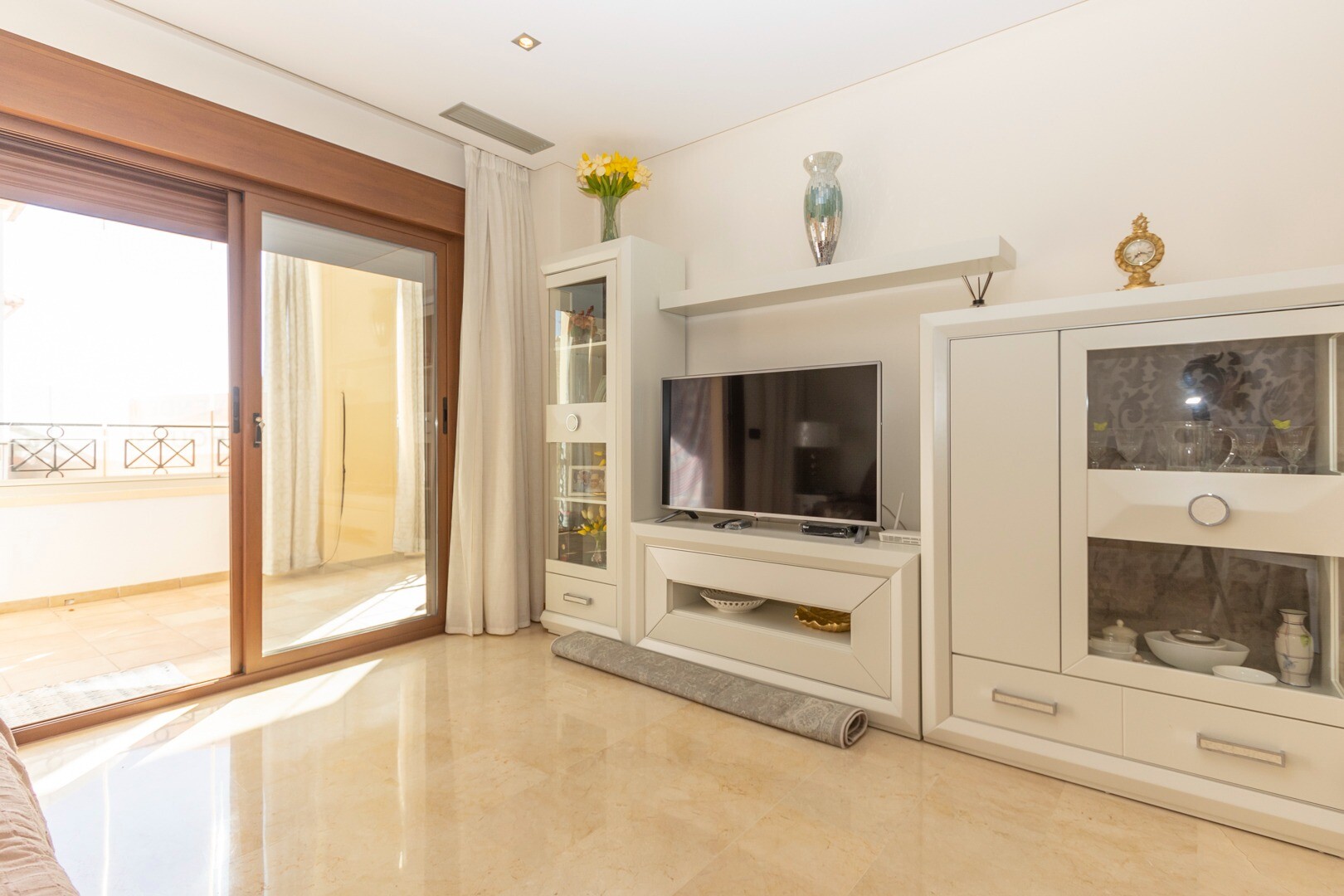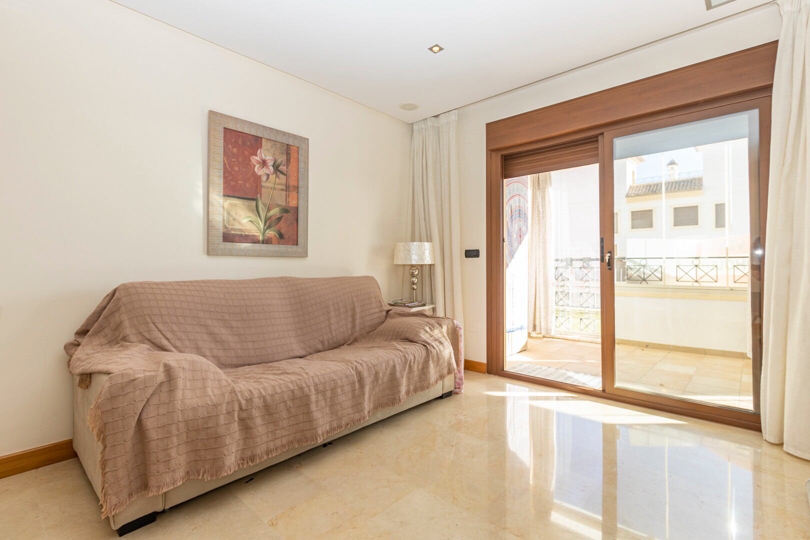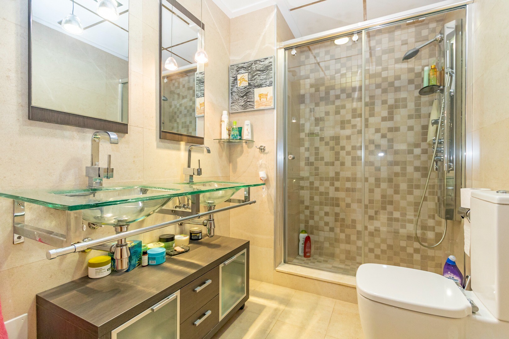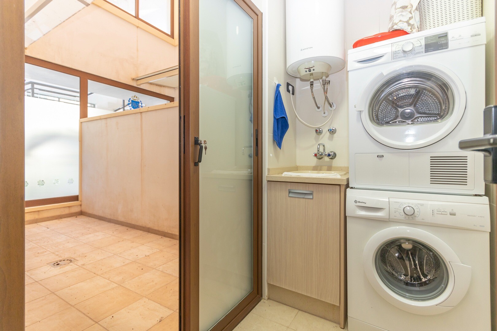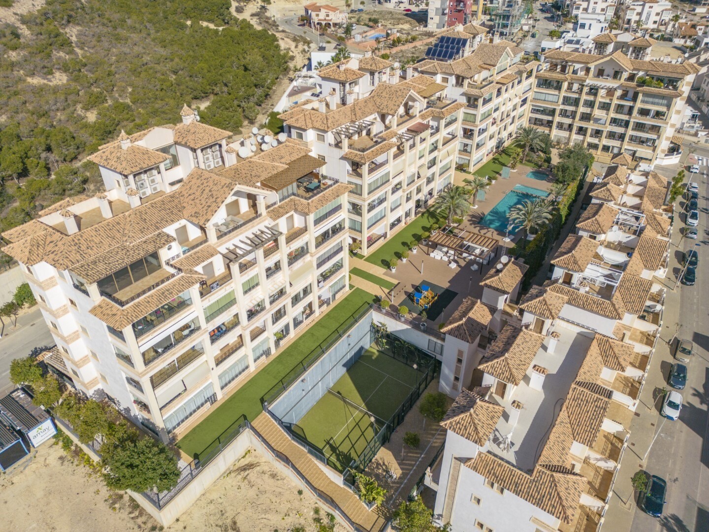 Apartament la parter, intr-o zona rezidentiala inchisa, cu acces direct la zona de gradina cu piscina si gradini. Casa este formata din 2 dormitoare si 2 bai, cu o bucatarie independenta cu galerie si patio, living si sufragerie precum si cele 2 dormitoare cu acces la o terasa mare vitrata. Locuinta a fost construita cu materiale si finisaje de cea... mai buna calitate, locuinta dispune de jaluzele motorizate, sistem de automatizare a locuintei, seif, aer conditionat conductabil si multe alte detalii. Locuința are o piscină mare de vară și o piscină de iarnă, saună, sală de sport, teren de paddle tenis, minigolf și zone frumoase de grădină de care se bucură vecinii. Pretul include un loc de parcare la subsolul blocului. Casa se vinde cu toate mobila si electrocasnicele.