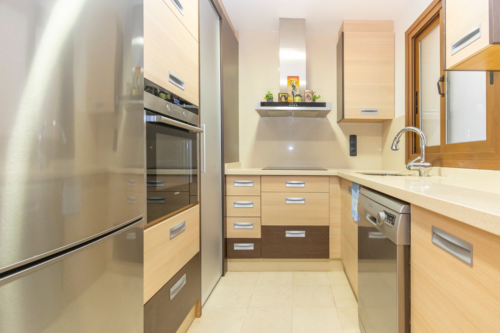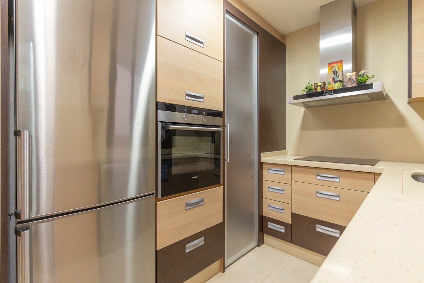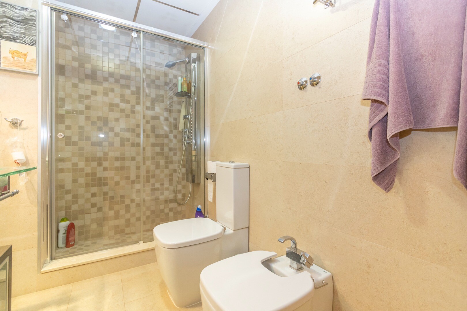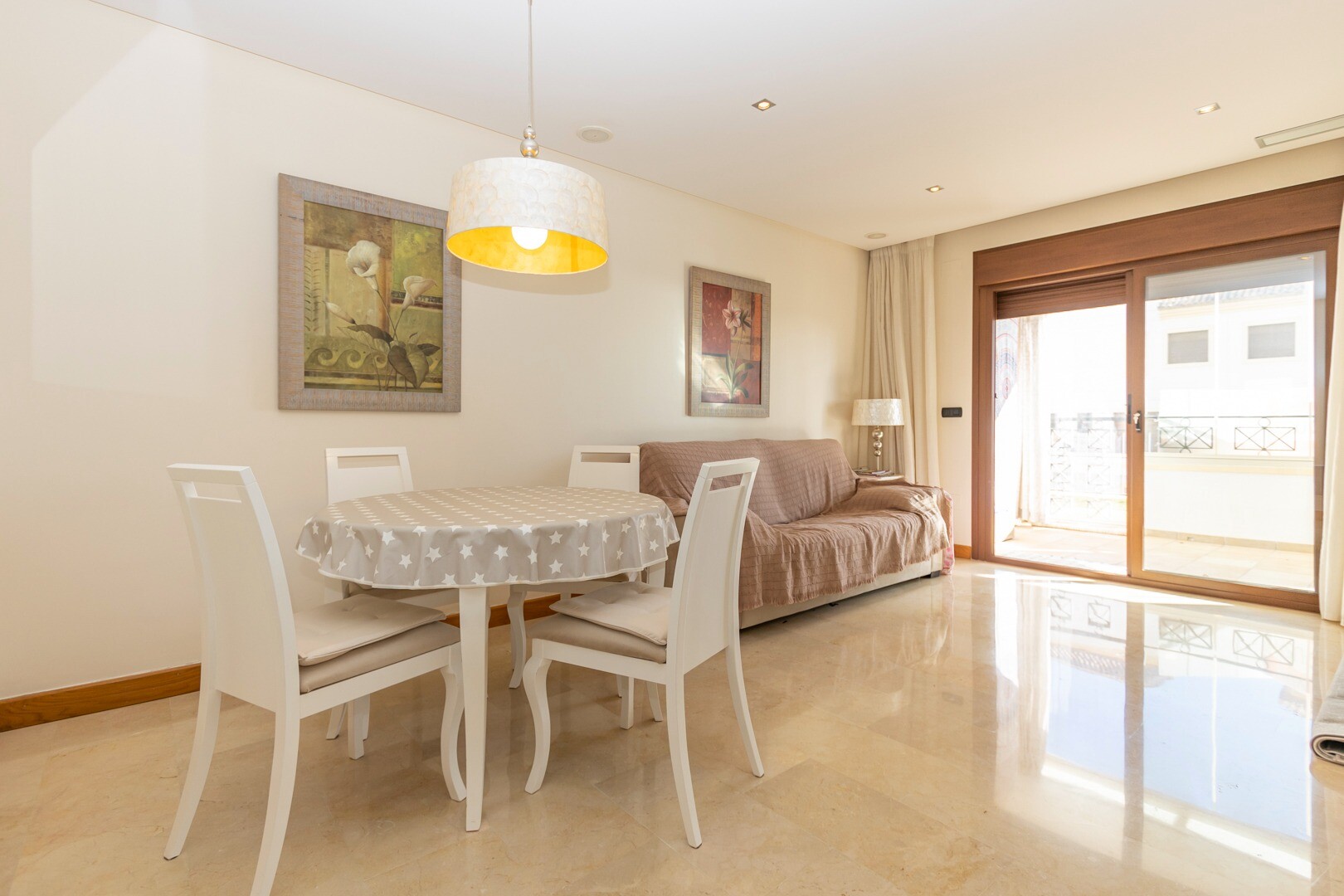 Apartament la parter, intr-o zona rezidentiala inchisa, cu acces direct la zona de gradina cu piscina si gradini. Casa este formata din 2 dormitoare si 2 bai, cu o bucatarie independenta cu galerie si patio, living si sufragerie precum si cele 2 dormitoare cu acces la o terasa mare vitrata. Locuinta a fost construita cu materiale si finisaje de cea... mai buna calitate, locuinta dispune de jaluzele motorizate, sistem de automatizare a locuintei, seif, aer conditionat conductabil si multe alte detalii. Locuința are o piscină mare de vară și o piscină de iarnă, saună, sală de sport, teren de paddle tenis, minigolf și zone frumoase de grădină de care se bucură vecinii. Pretul include un loc de parcare la subsolul blocului. Casa se vinde cu toate mobila si electrocasnicele.