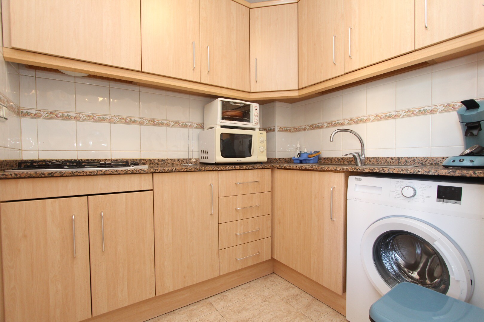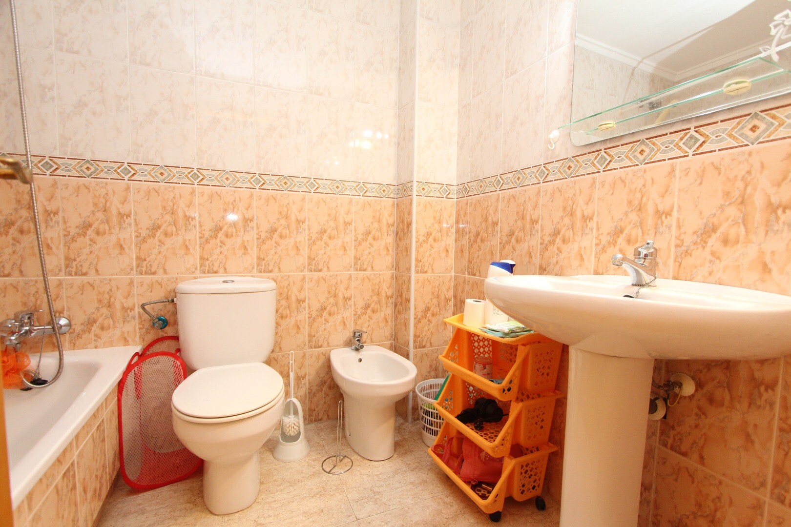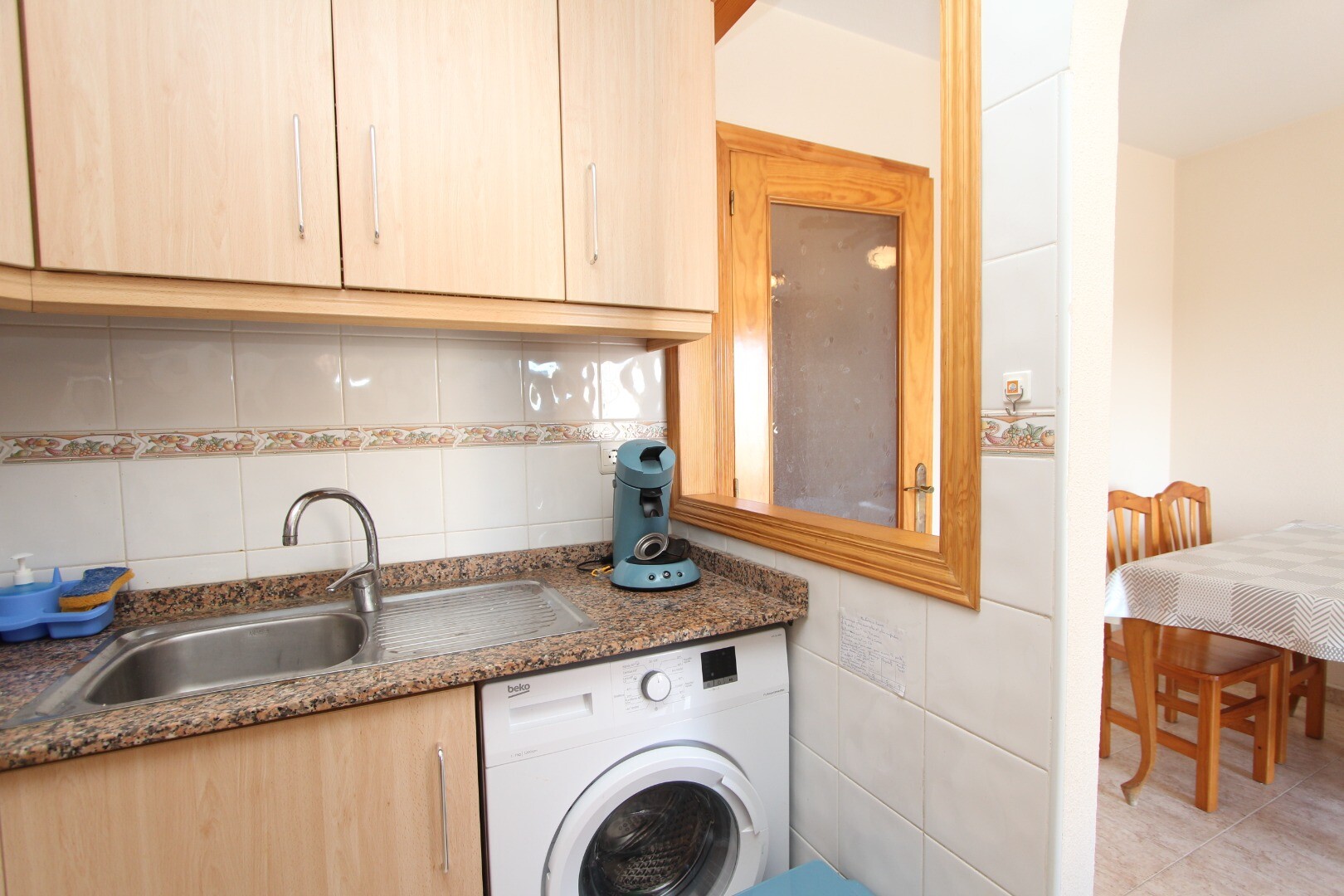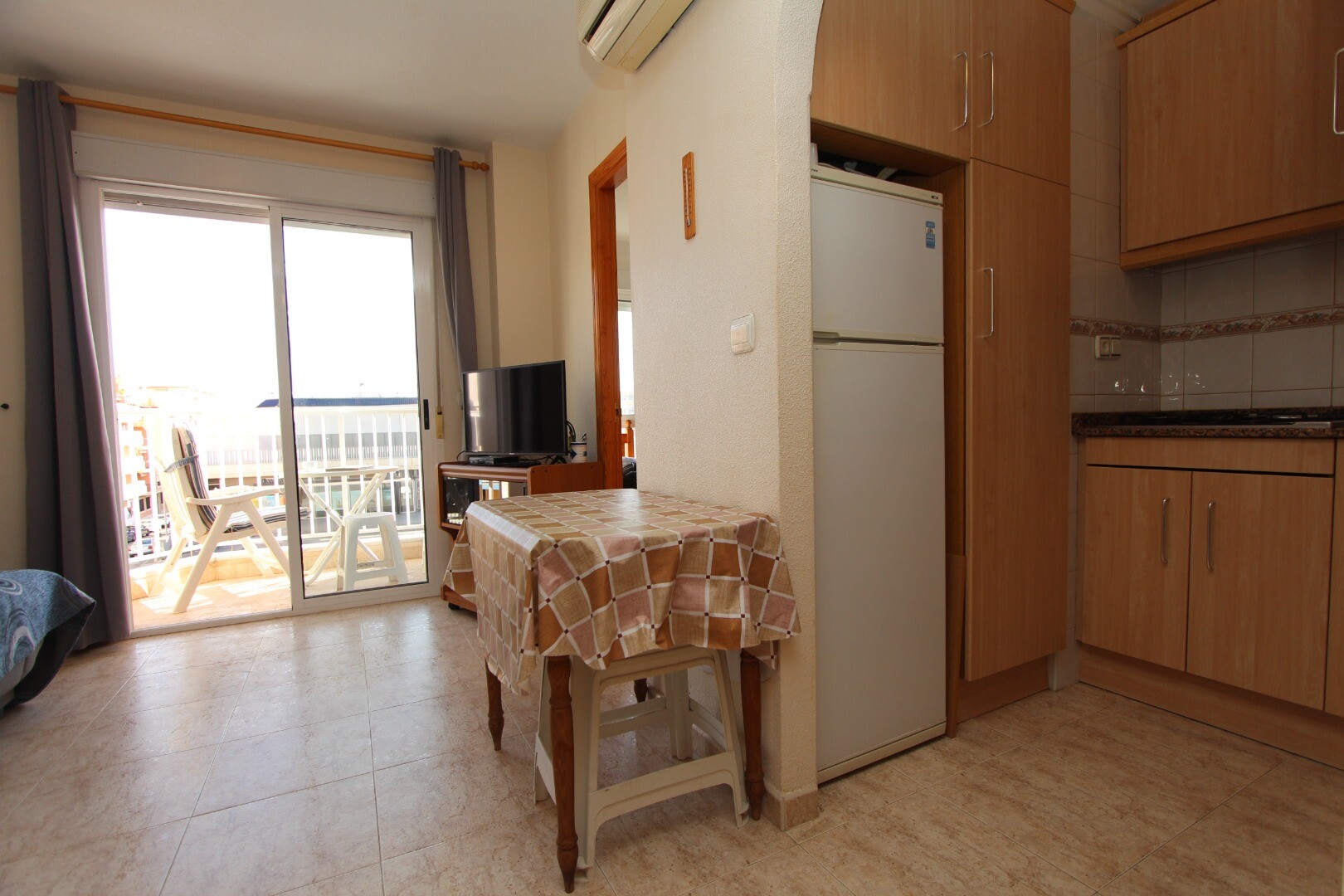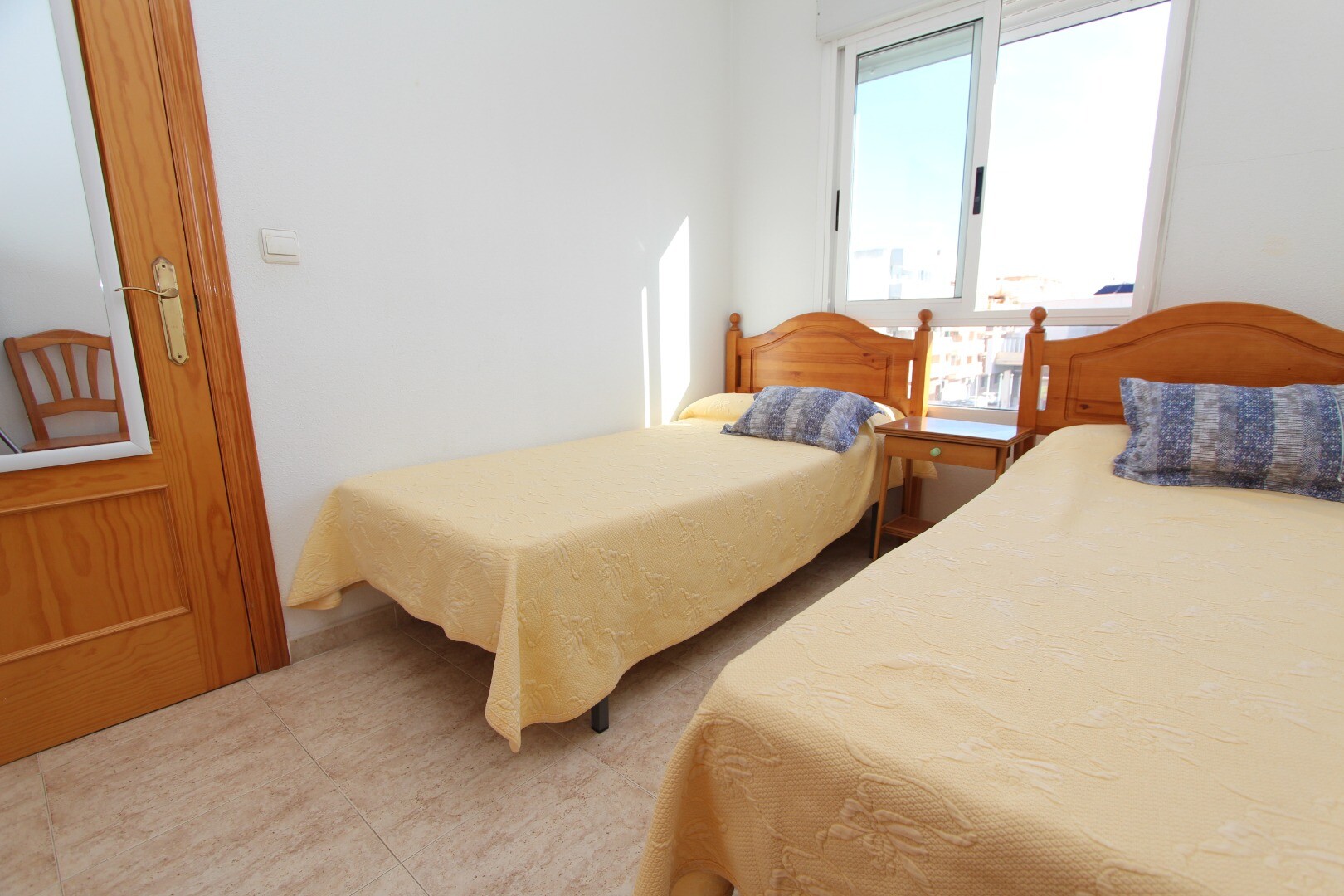 Apartament situat central, la 300 de metri de coastă și la câțiva pași de toate facilitățile imaginabile. Apartamentul are 2 dormitoare, inclusiv un dormitor matrimonial spatios si 1 baie. Din living are acces la o terasă cu vedere deschisă la școala de muzică. Are o terasă comună pe acoperiș unde se află și depozitul. La aeroportul din Alicante se... poate ajunge în aproximativ 30 de minute.