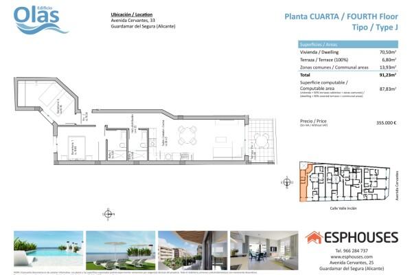 Edificio Olas se bucură de o locație privilegiată, aproape de plajă și înconjurat de o mare varietate de servicii și facilități, cum ar fi restaurante, magazine, supermarketuri și zone de agrement. Guardamar del Segura, cunoscut pentru frumoasele sale plaje cu nisip fin și pentru mediul natural, oferă un stil de viață liniștit și relaxat, fără a renunța la facilitățile necesare aflate la îndemână.