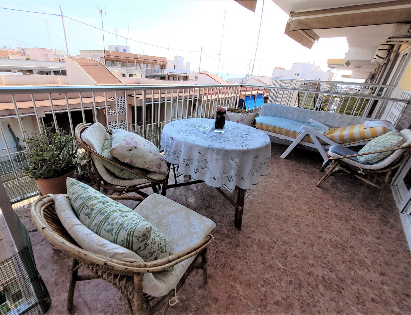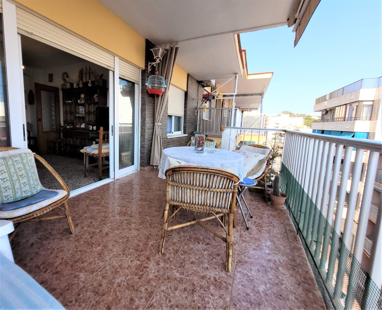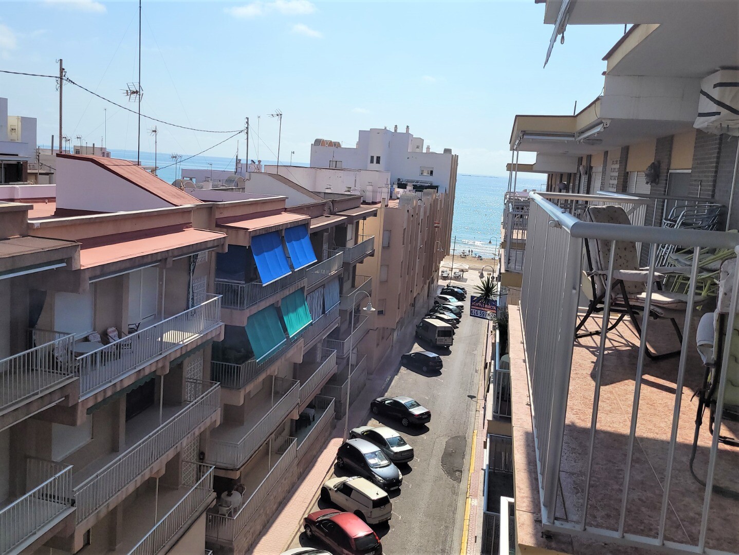 Vă prezentăm acest apartament confortabil cu 3 dormitoare, cu terasă mare și vedere la mare, la doar câțiva pași de plaja din Guardamar del Segura, Alicante, Spania.
