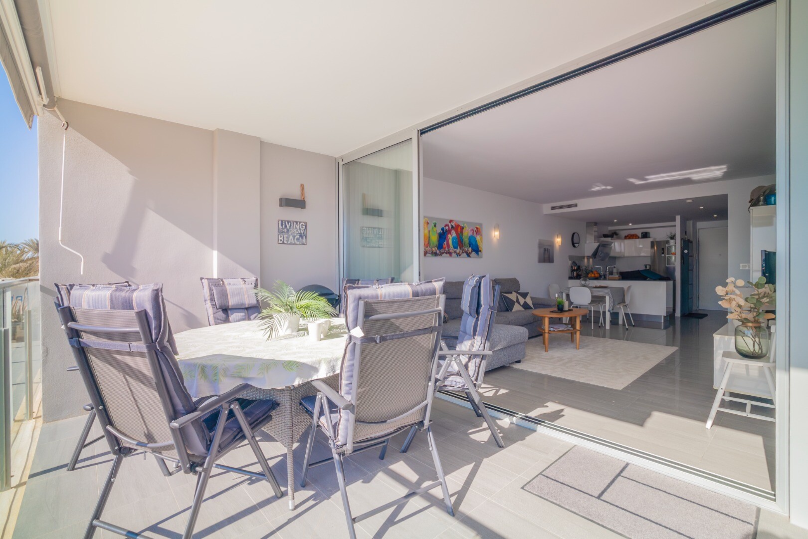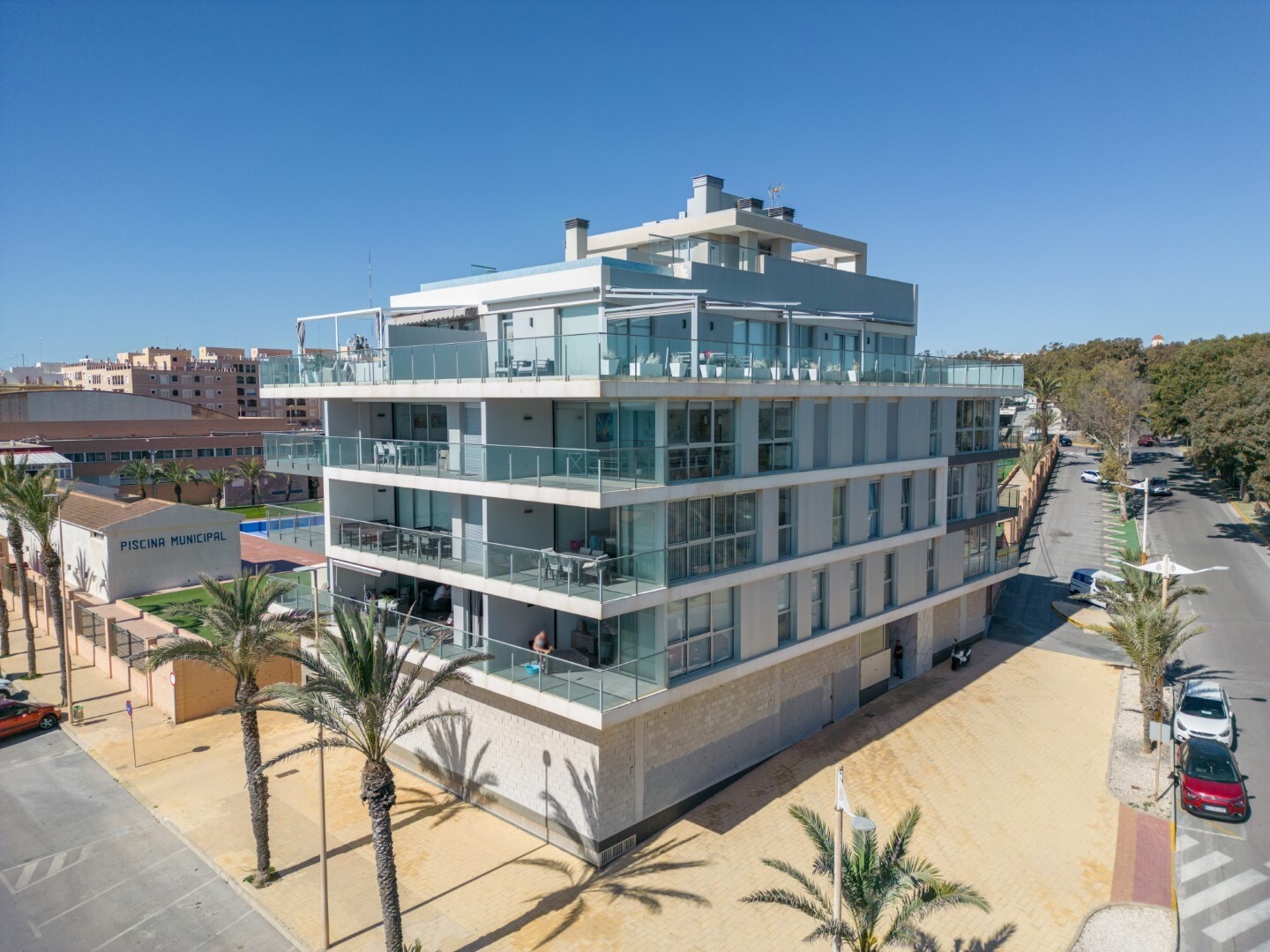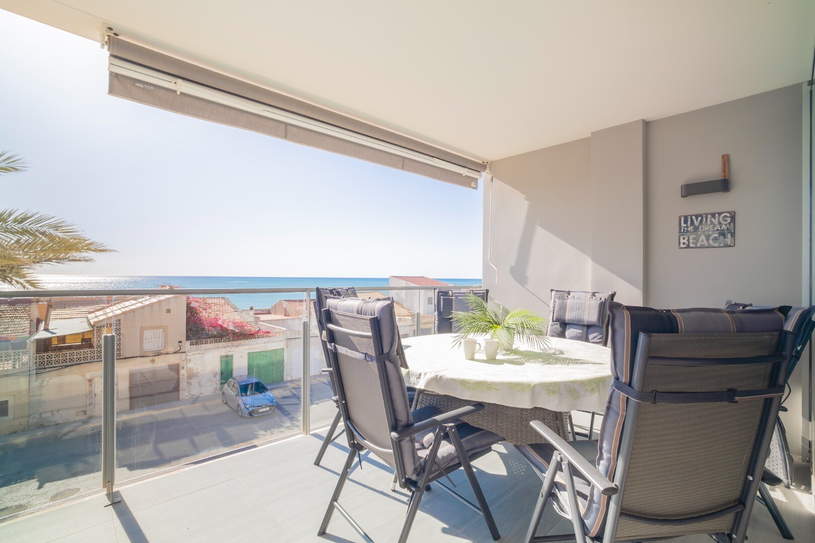 Dorim să vă prezentăm această proprietate modernă și spațioasă, cu 3 dormitoare cu dulapuri încorporate, 2 băi (una dintre ele în ...baie), living-sufragerie și bucătărie cu acces la o terasă mare, unde vă veți bucura de vedere frontală la Marea Mediterană.