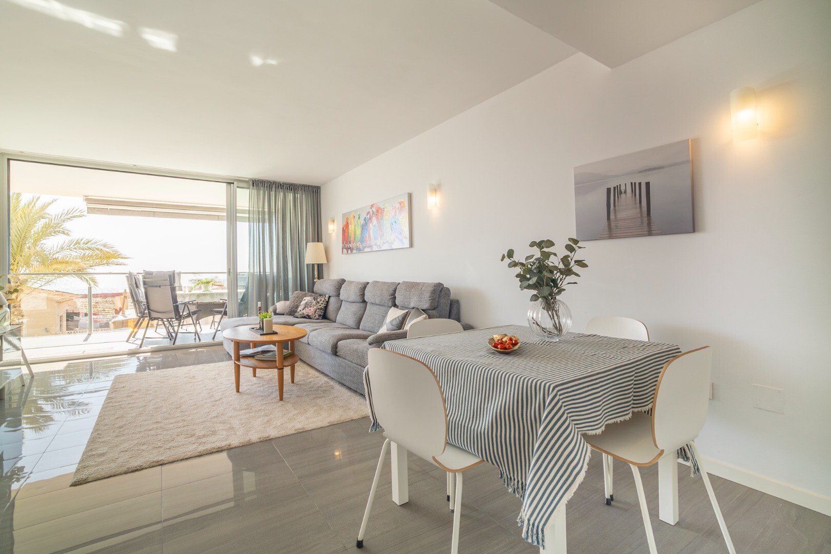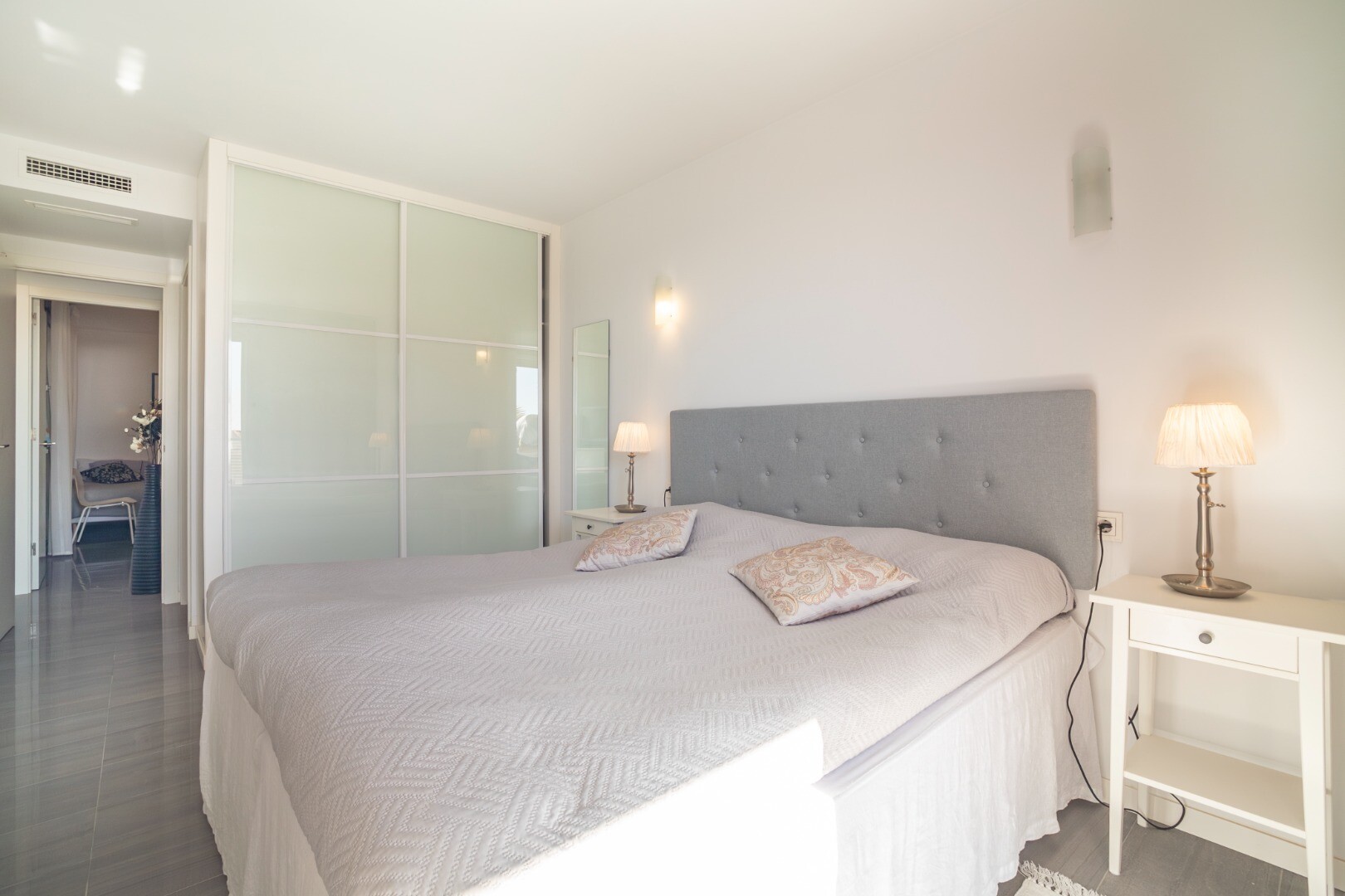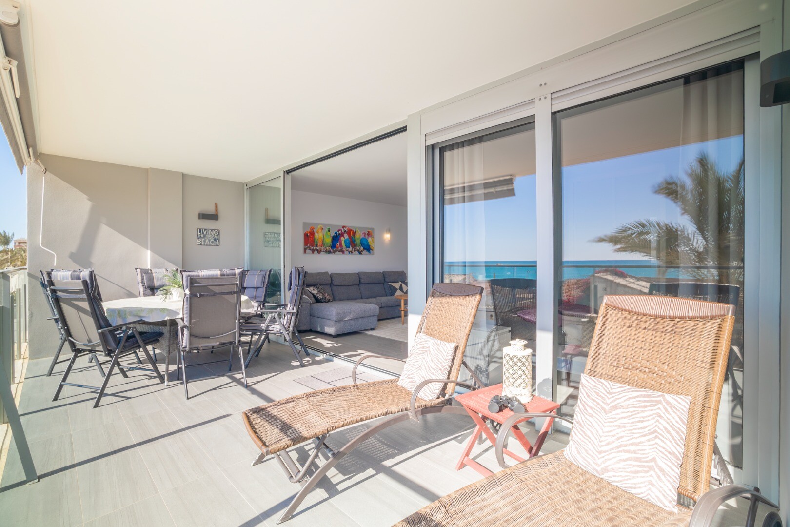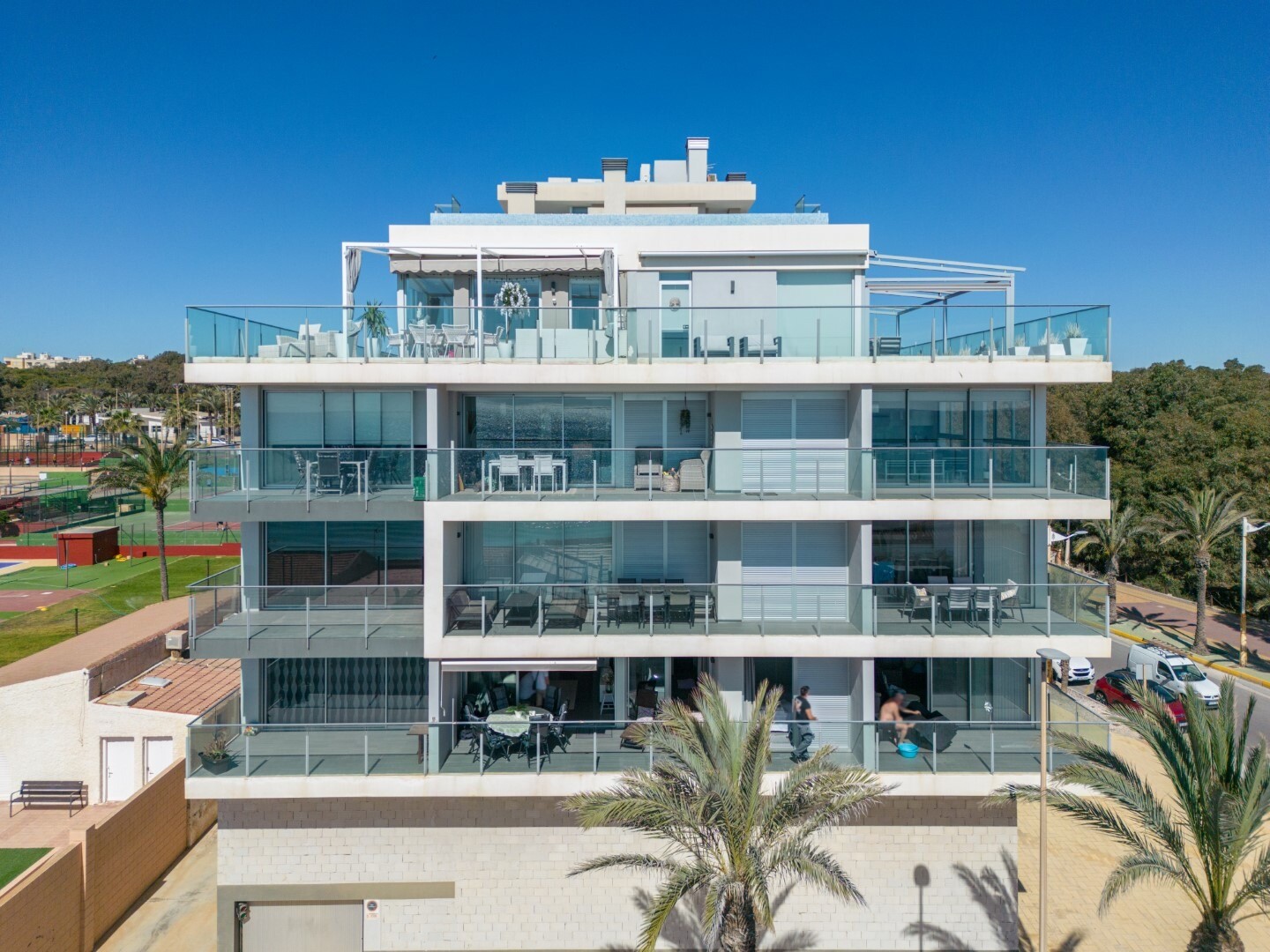 Dorim să vă prezentăm această proprietate modernă și spațioasă, cu 3 dormitoare cu dulapuri încorporate, 2 băi (una dintre ele în ...baie), living-sufragerie și bucătărie cu acces la o terasă mare, unde vă veți bucura de vedere frontală la Marea Mediterană.
