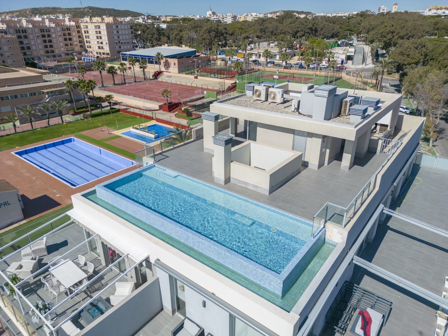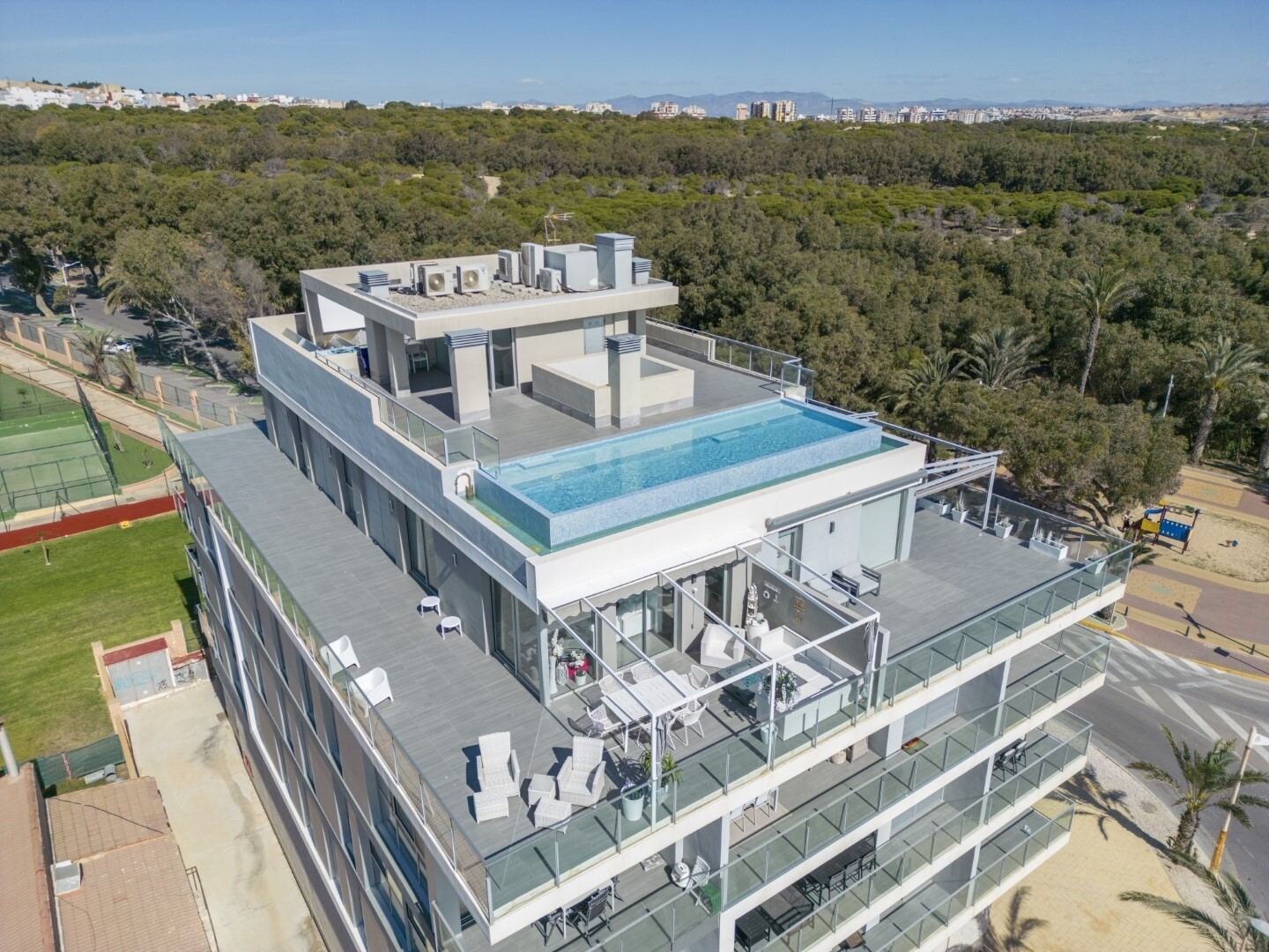 Proprietatea este în stare perfectă, are calități excelente, aer condiționat prin conducte, electrocasnice de înaltă calitate și dispune de un sistem de decalcifiere a apei în toată proprietatea. În preț este inclus un loc de parcare la subsol, cu acces direct din lift. În plus, pe acoperișul clădirii se află o piscină cu vedere infinită, unde vă veți bucura de momente plăcute și de priveliști minunate.