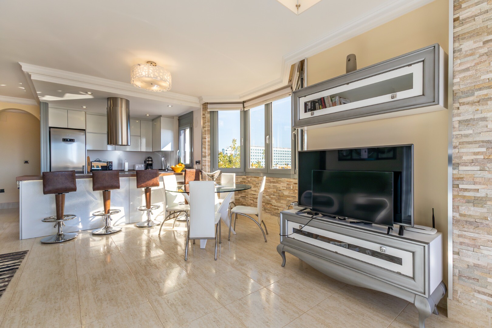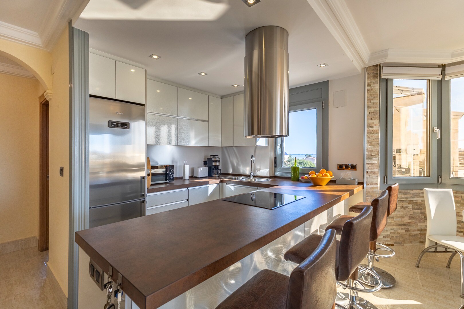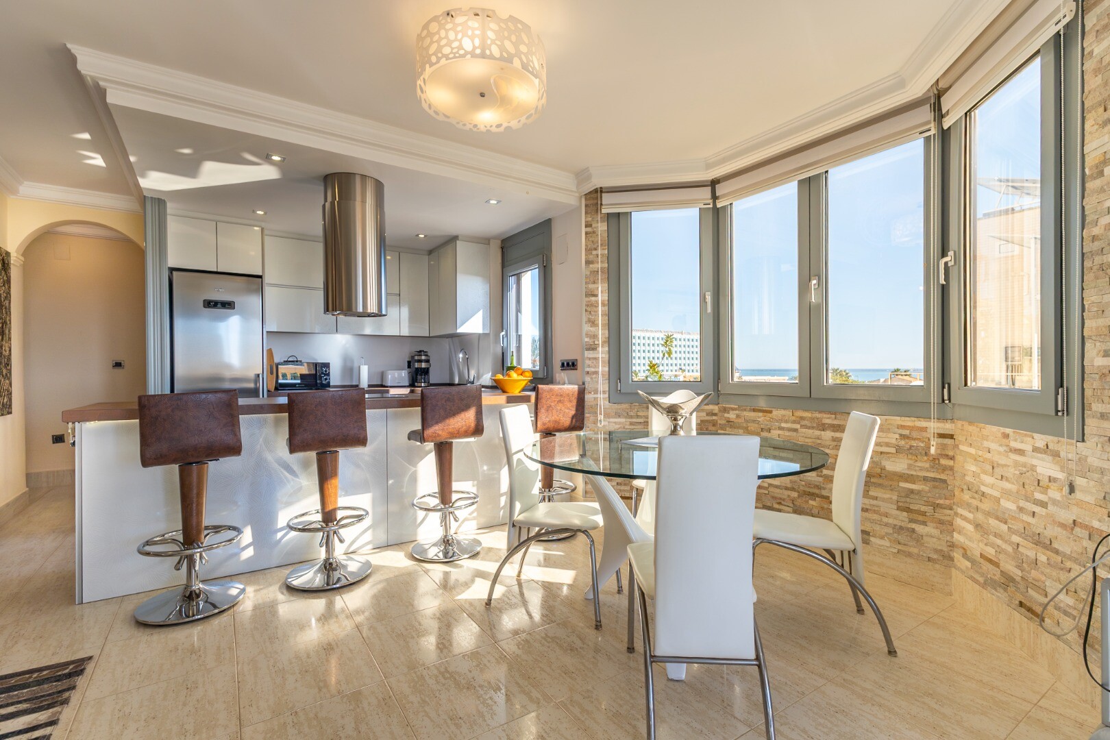 De-a lungul promenadei, vă puteți bucura de un pahar rece ca gheața de vin local cu tapas proaspete la terase, în timp ce pe străzile înguste din centrul orașului veți găsi arrocerías mai tradiționale. Aici puteți comanda un arroz a banda (orez gătit în supă de pește) care este încă preparat în mod tradițional. Pentru o experiență mai modernă, îndreptați-vă spre marina, unde barurile și restaurantele la modă oferă priveliști uimitoare asupra bărcilor care se leagănă și a apusului de soare.