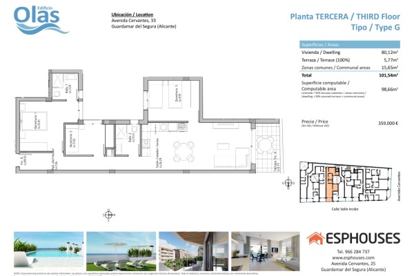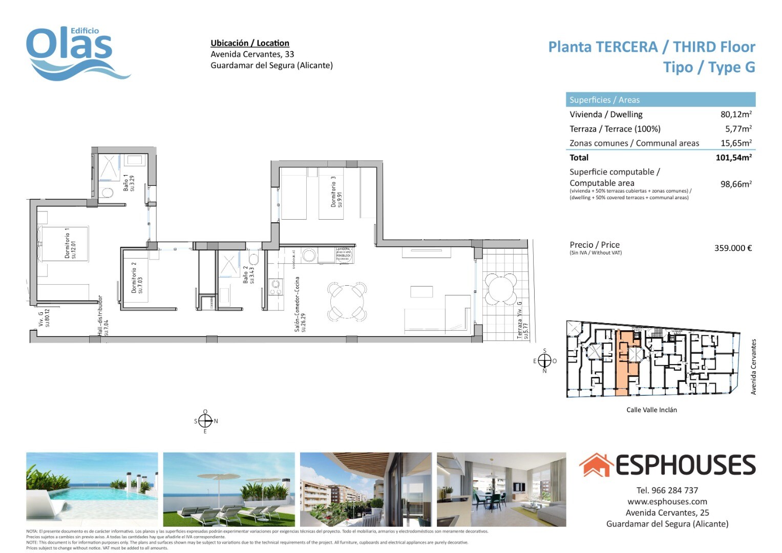 Pe scurt, Edificio Olas este o oportunitate unică de a vă bucura de viața de plajă și de confort în Guardamar del Segura. Locația sa privilegiată, facilitățile excelente și calitatea finisajelor sale fac din acest apartament cu 3 dormitoare o alegere ideală pentru cei care caută o locuință sau o investiție în acest frumos oraș de coastă.