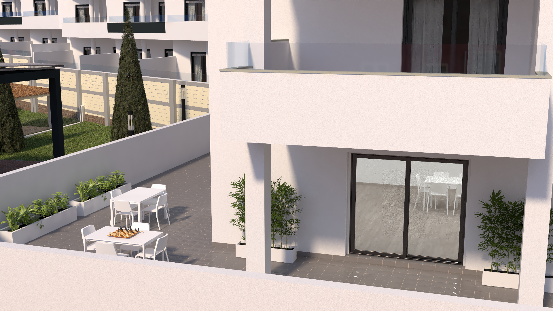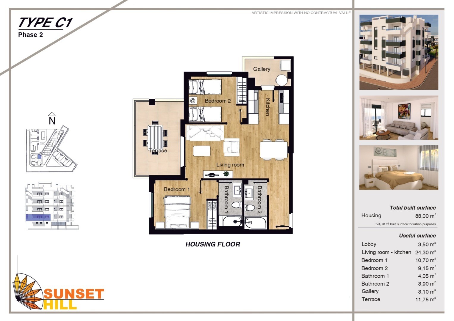 Dezvoltarea va consta din 50 de locuințe de diferite tipologii. Casele sunt construite în patru etape. Faza I se referă la un ansamblu de 8 apartamente, dintre care 4 sunt la parter cu demisol, care sunt destinate în principiu garajului, dar în care se poate face o separare și au o suprafață locuibilă de aproximativ 24. mp, si 4 apartamente la ulti...mul etaj cu solar. Faza a II-a este o clădire cu 4 etaje, cu 4 apartamente pe etaj, 16 apartamente în total, iar fiecare are o zonă de depozitare anexată. Faza III și IV vor fi comparabile cu Faza I. Locuințele din ambele faze, cu excepția celor 4 locuințe de la parter din Faza I, vor avea locuri de parcare supraterane legate de locuințele cu preinstalare pentru mașini electrice. Etajele inferioare au propriul garaj privat cu uși secționale automate controlate de la distanță. Proiectul va avea o zonă socială în aer liber, cu zonă de BBQ și toalete, și două zone sociale interioare, una potrivită pentru organizarea de întâlniri, cu televizor, frigider etc., iar cealaltă va fi probabil o sală de sport. Locuințele se livrează cu aer condiționat prin conducte și recuperator de căldură instalat, băi complet finisate și electrocasnice de bucătărie.