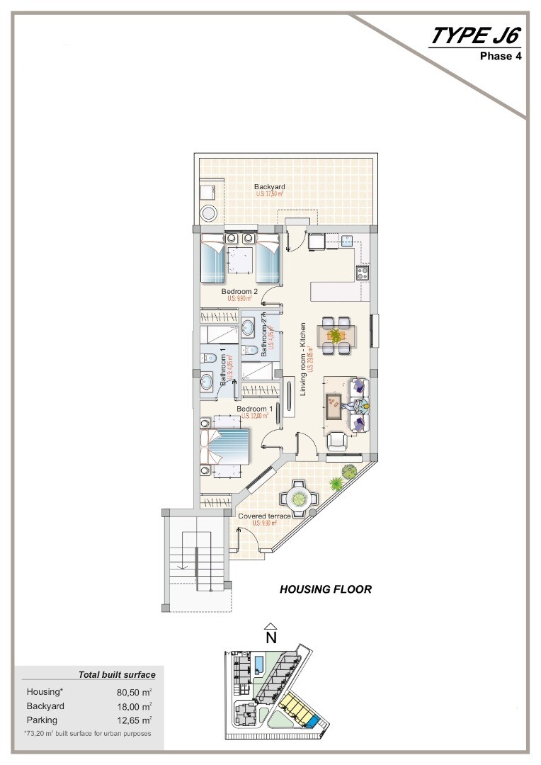 Dezvoltarea va consta din 50 de locuințe de diferite tipologii. Locuințele vor fi construite în patru etape. Faza I se referă la un ansamblu de 8 apartamente, dintre care 4 sunt la parter cu demisol, care sunt în principiu destinate unui garaj, dar în care se poate realiza un compartiment și au o suprafață de aproximativ 24 de locuințe. mp, si 4 ap...artamente la ultimul etaj cu solar. Faza a II-a este o clădire cu 4 etaje, cu 4 apartamente pe etaj, 16 apartamente în total, iar fiecare are un spațiu de depozitare adiacent. Etapele III și IV vor fi similare cu Faza I. Etajele inferioare au propriul garaj privat cu porți secționale automate cu telecomandă. Proiectul va avea o zonă socială în aer liber, cu zonă de BBQ și toalete, și două zone sociale interioare, una potrivită pentru organizarea de întâlniri, cu televizor, frigider etc., iar cealaltă va fi probabil o sală de sport. Locuintele sunt livrate cu aer conditionat prin conducte de aer si o unitate de recuperare a caldura instalata, bai si electrocasnice de bucatarie complet finisate. Reședința Sunset Hills este situată într-o zonă privilegiată, aflată încă în plină expansiune, aproape de plajele din Torrevieja, Punta Prima și Playa Flamenca. În zonă aveți la îndemână toate facilitățile imaginabile: supermarketuri, magazine, restaurante, baruri, automate bancare, centrul comercial în aer liber La Zenia, spitalul universitar din Torrevieja, terenuri de golf. Datorită AP-7 din apropiere, există o conexiune foarte bună la aeroporturile din Alicante și Murcia în aproximativ 40 de minute.