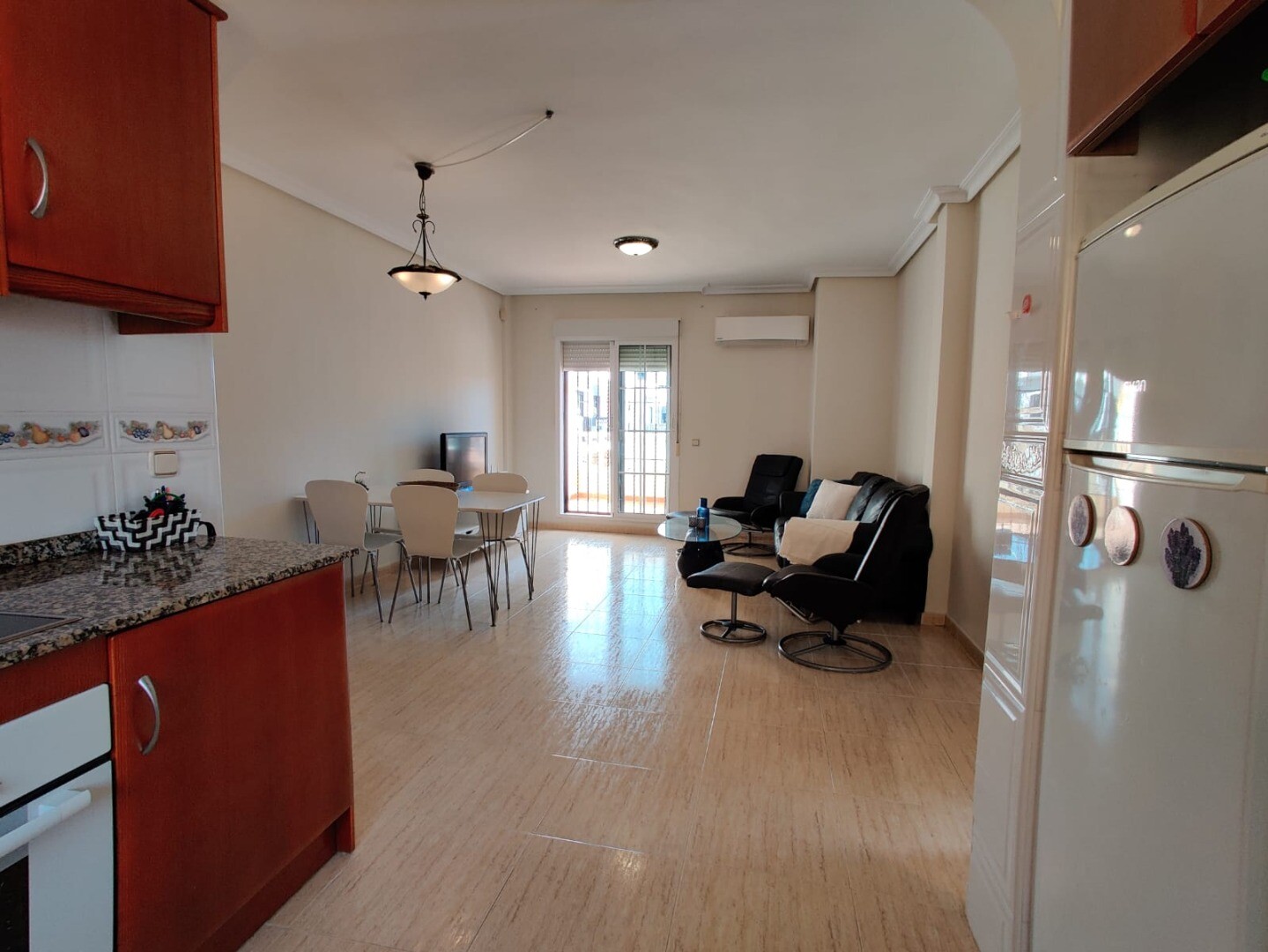 Apartamentul are doua dormitoare si doua bai de aproximativ 70 m2, cu terasa si solar privat cu camera de depozitare (accesata prin scara exterioara a casei). Are o piscină comună și se află la 3 km de frumoasa urbanizare Dehesa de Campoamor și la câțiva metri de zona comercială cu numeroase restaurante și supermarket.