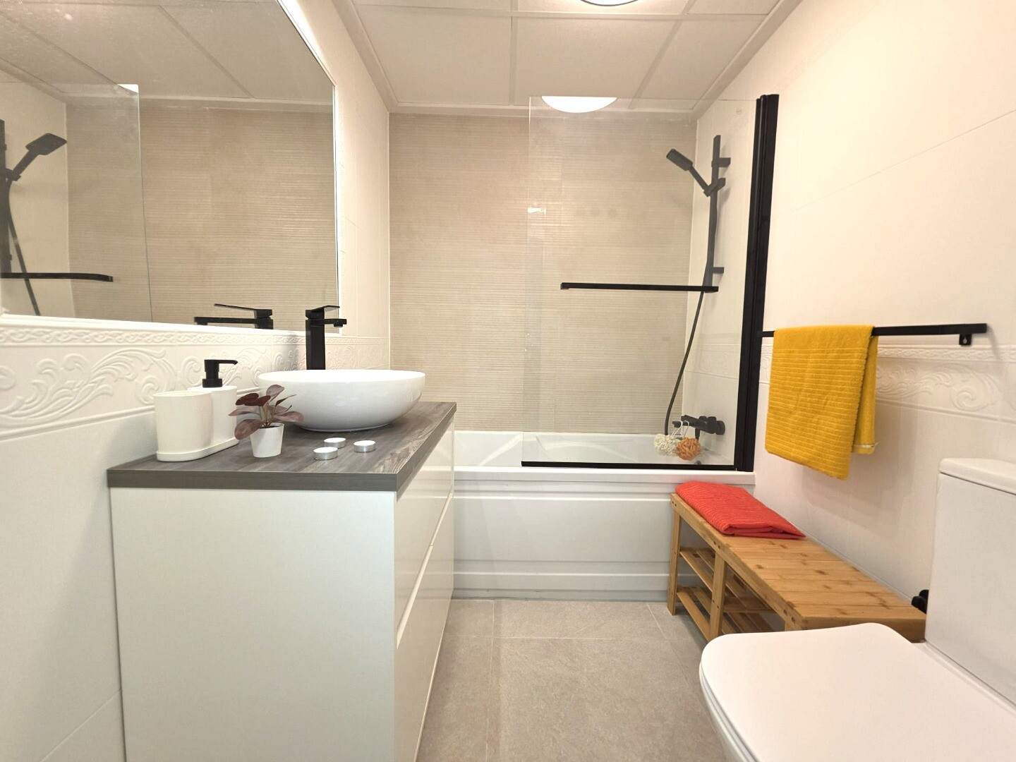 Apartament la parter recent renovat, cu 2 dormitoare și 1 baie, într-un complex rezidențial liniștit, cu 2 piscine, dintre care una este potrivită pentru copii mai mici, dar la câțiva pași de toate facilitățile.