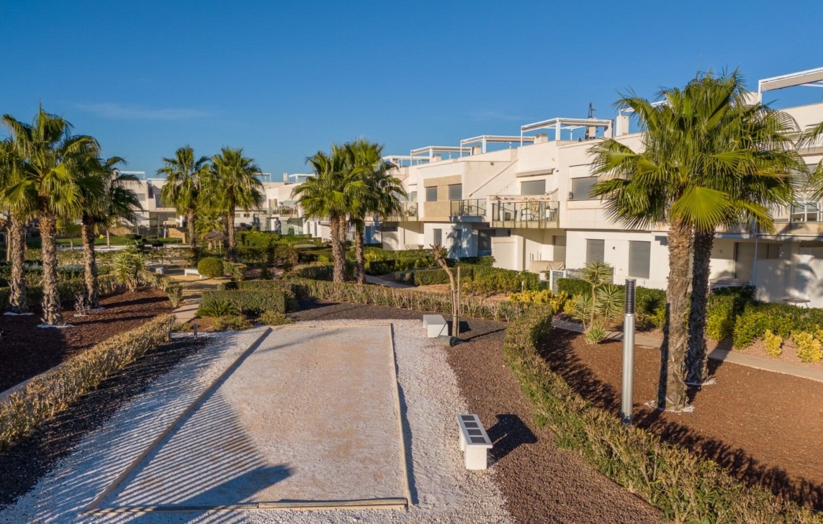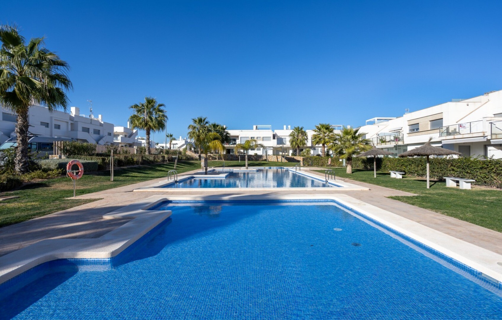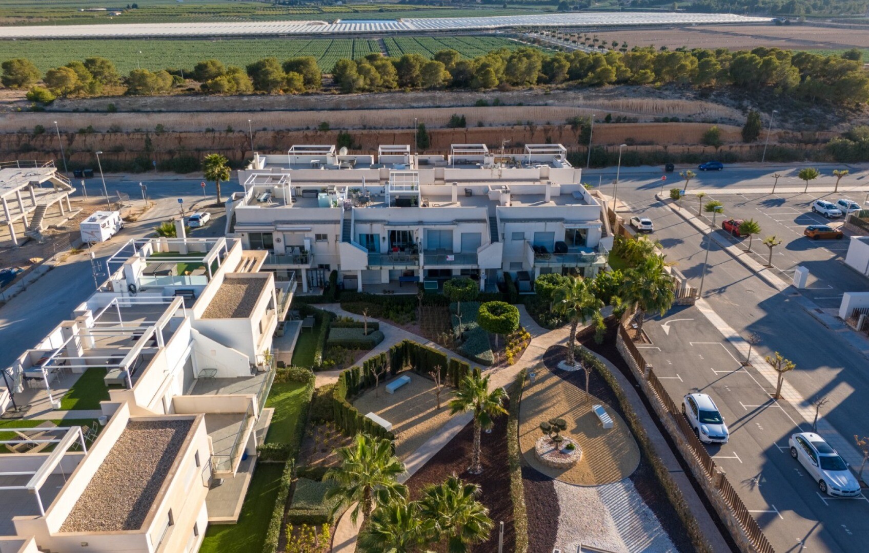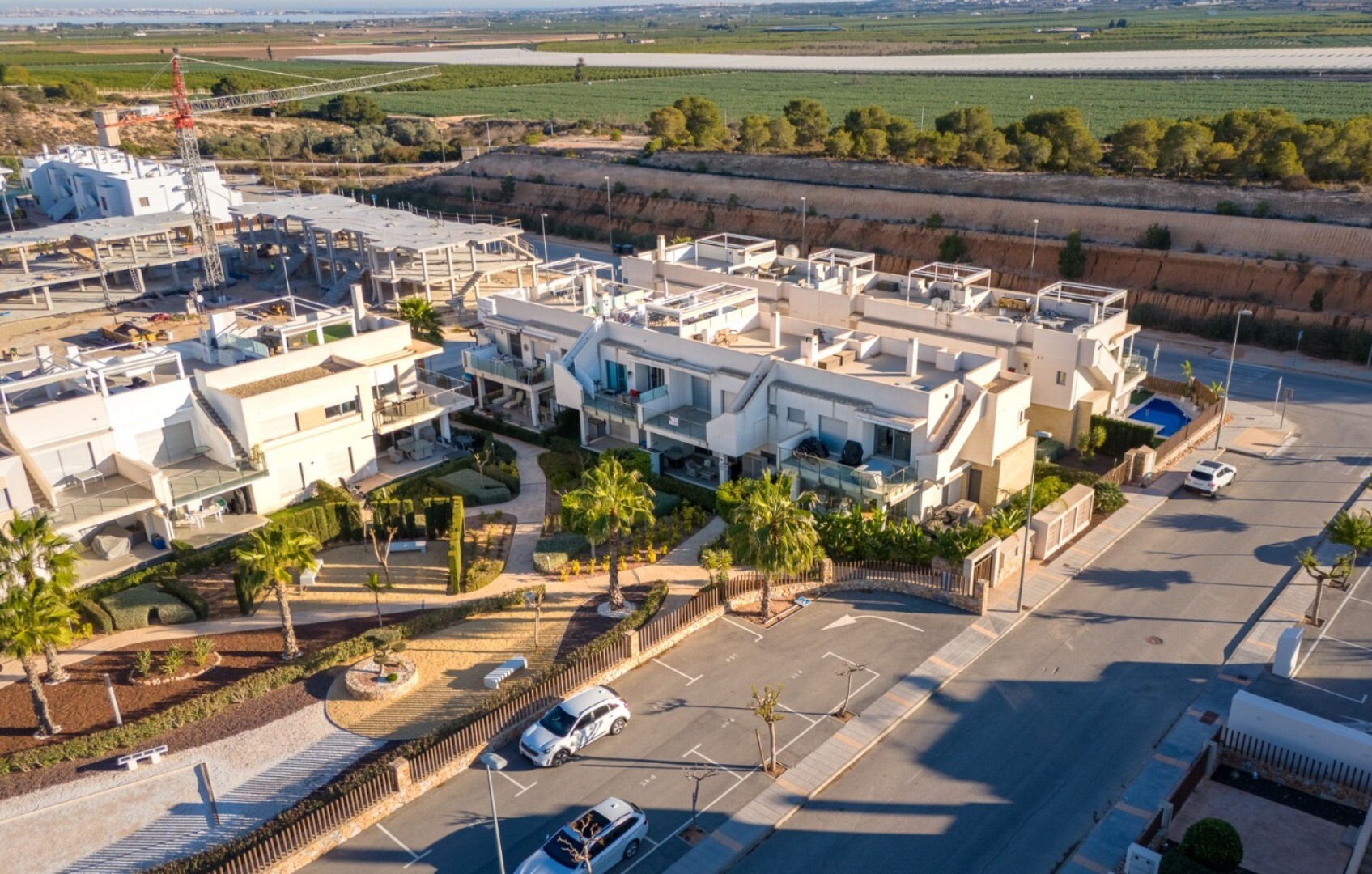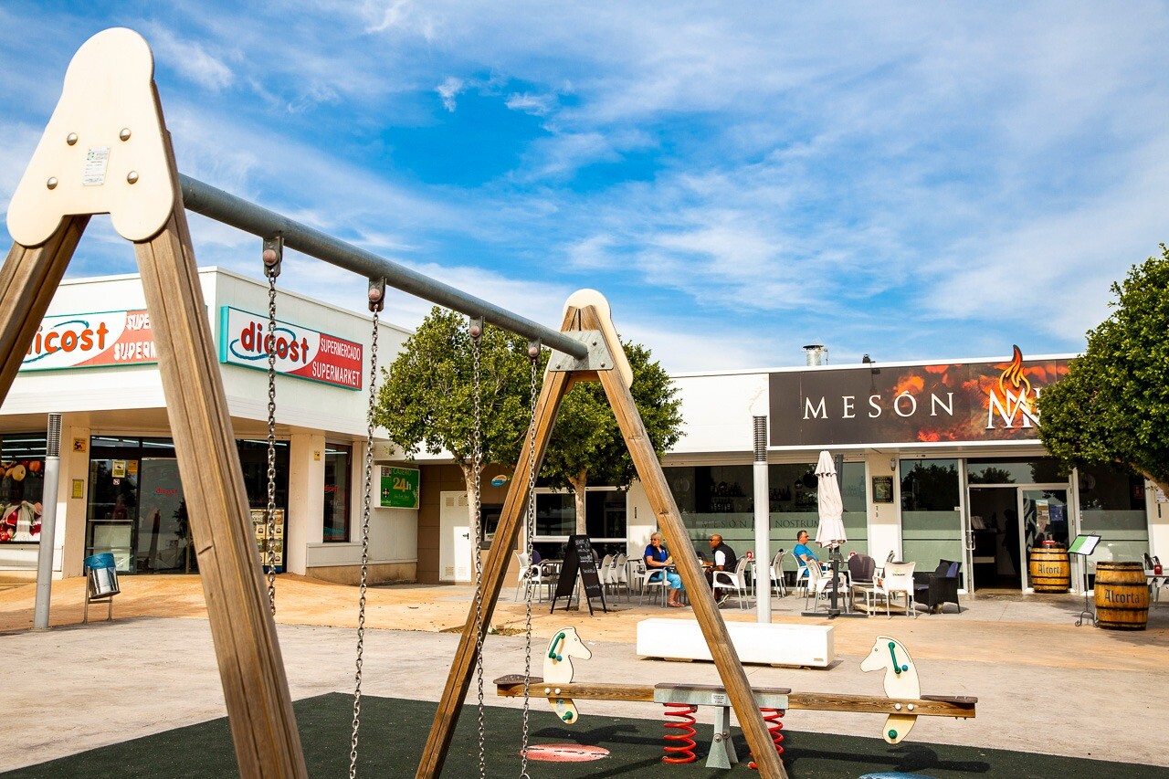 Acest apartament este situat la doar 500 m de centrul comercial cu baruri, restaurante, bancomat și supermarket și la 1000 m de terenul de golf, bowling englezesc și terenuri de padel. Vistabella Golf ar trebui privit mai degrabă ca un mic Pueblo cu toate facilitățile, cum ar fi bancomat, supermarket, diverse baruri și restaurante, farmacie .... cu... avantajul că este o zonă complet securizată, cu 1 intrare și ieșire printr-un post de securitate unde plăcuța de înmatriculare a fiecărei mașini este înregistrată electronic. Costurile pentru securitate sunt suportate integral de Vistabella Golf și de promotorul însuși. De aici există o conexiune fixă de autobuz în fiecare joi între Vistabella și La Zenia Shopping Boulevard. Există, de asemenea, o linie fixă de autobuz între Orihuela și Torrevieja. De la Vistabella Golf, toate orașele de coastă din Orihuela Costa sunt la aproximativ 15 minute cu mașina. La aeroportul Alicante se poate ajunge în aproximativ 40 de minute și la Corvera (Murcia) în aproximativ o oră.