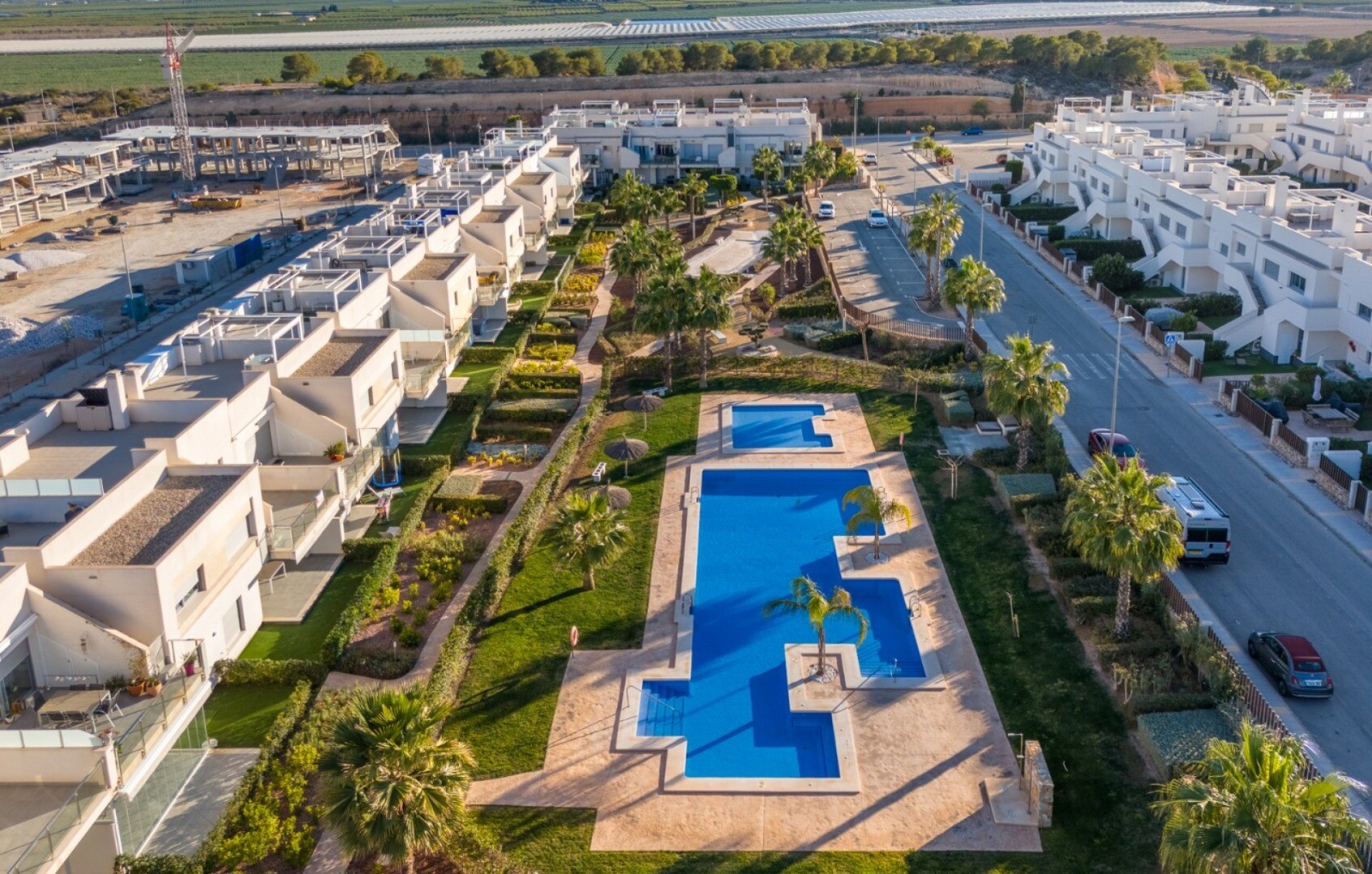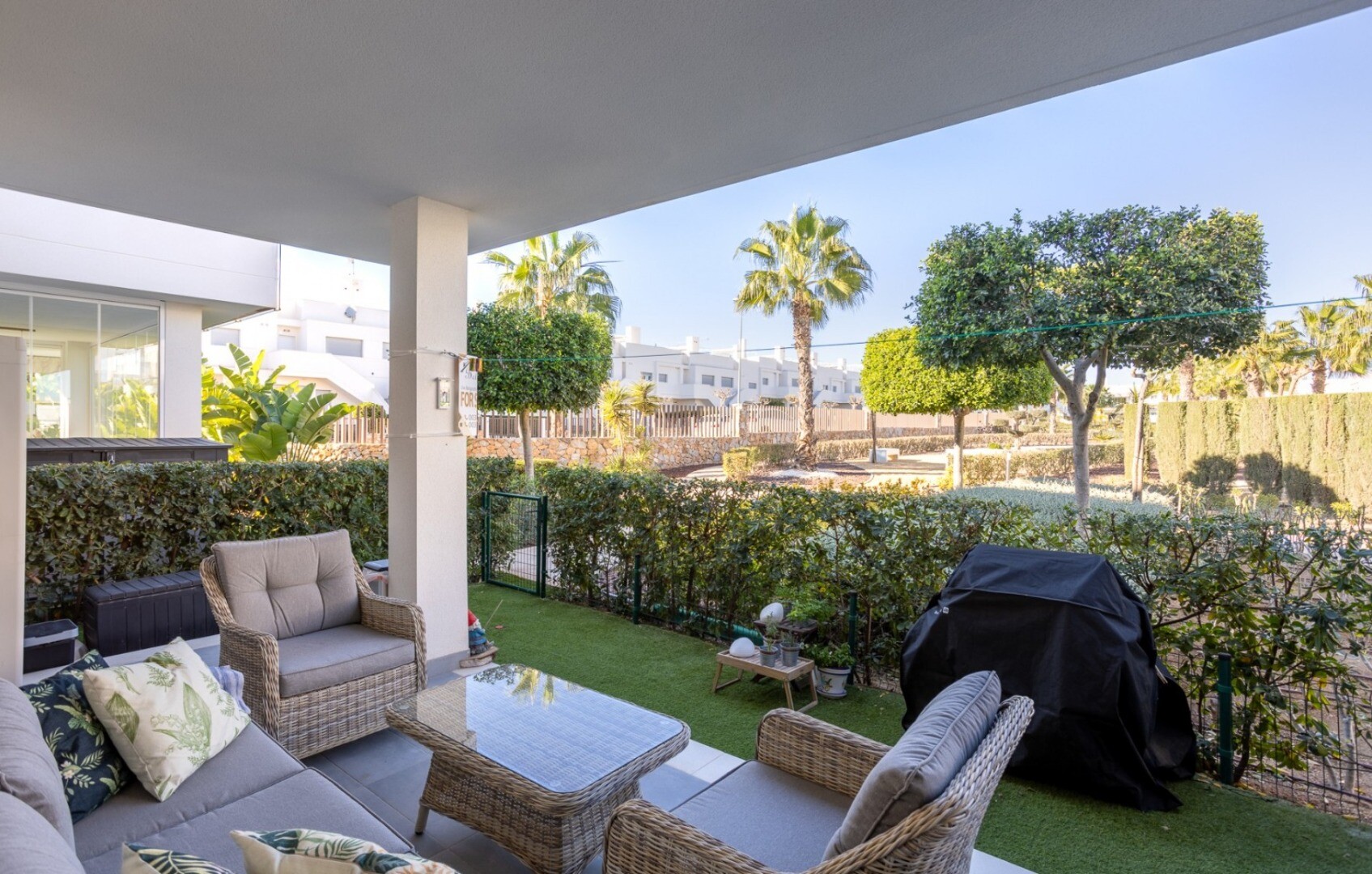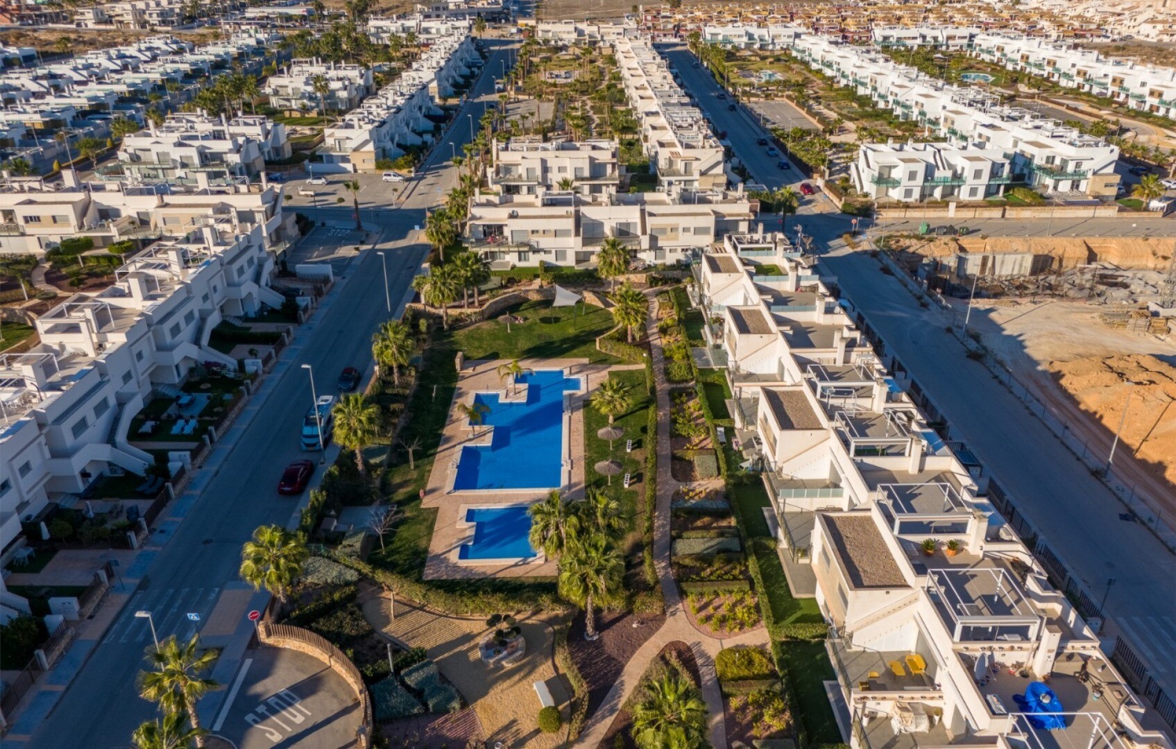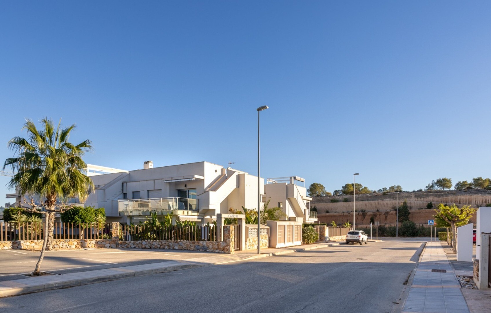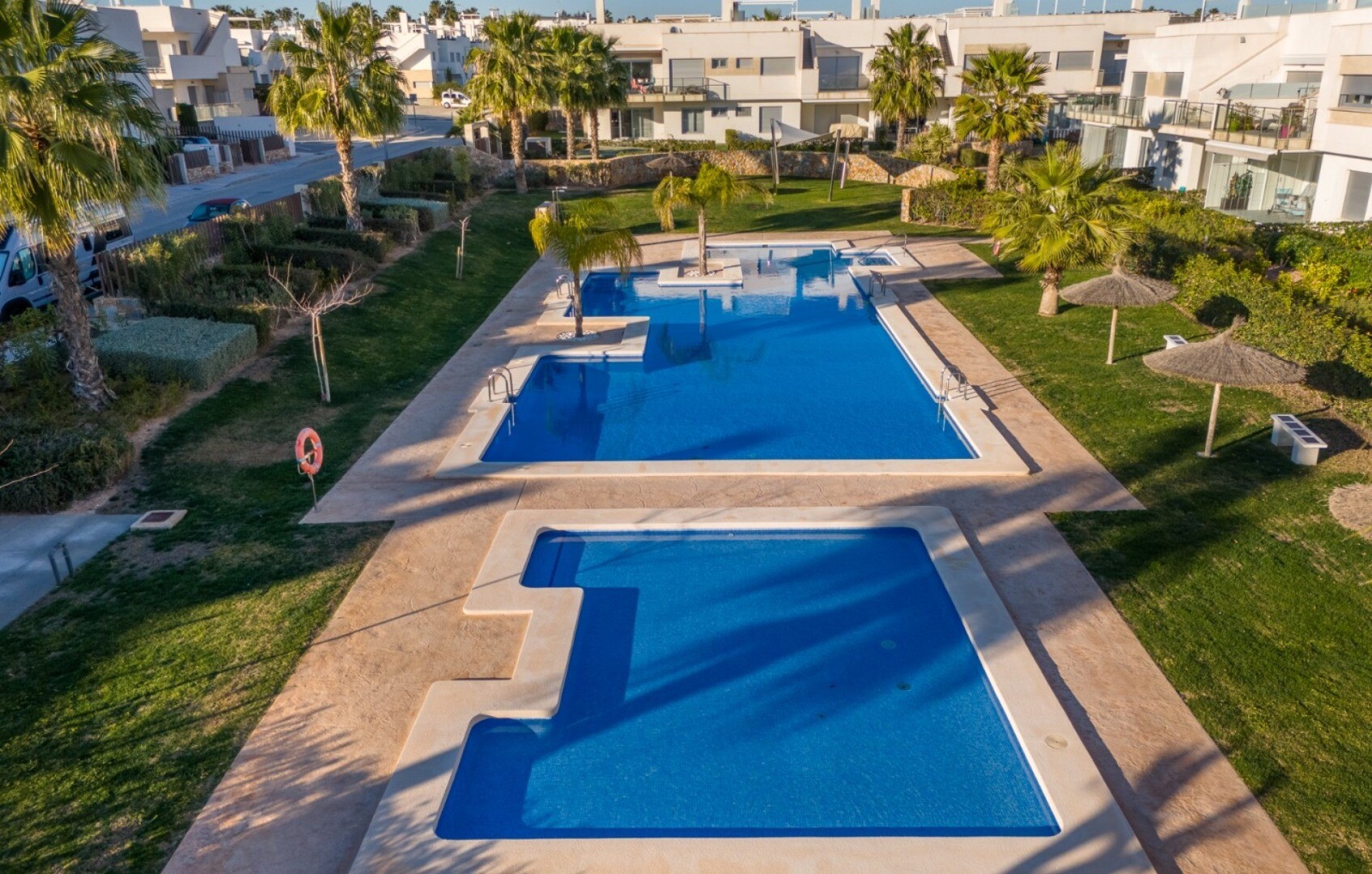 Acest apartament este situat la doar 500 m de centrul comercial cu baruri, restaurante, bancomat și supermarket și la 1000 m de terenul de golf, bowling englezesc și terenuri de padel. Vistabella Golf ar trebui privit mai degrabă ca un mic Pueblo cu toate facilitățile, cum ar fi bancomat, supermarket, diverse baruri și restaurante, farmacie .... cu... avantajul că este o zonă complet securizată, cu 1 intrare și ieșire printr-un post de securitate unde plăcuța de înmatriculare a fiecărei mașini este înregistrată electronic. Costurile pentru securitate sunt suportate integral de Vistabella Golf și de promotorul însuși. De aici există o conexiune fixă de autobuz în fiecare joi între Vistabella și La Zenia Shopping Boulevard. Există, de asemenea, o linie fixă de autobuz între Orihuela și Torrevieja. De la Vistabella Golf, toate orașele de coastă din Orihuela Costa sunt la aproximativ 15 minute cu mașina. La aeroportul Alicante se poate ajunge în aproximativ 40 de minute și la Corvera (Murcia) în aproximativ o oră.