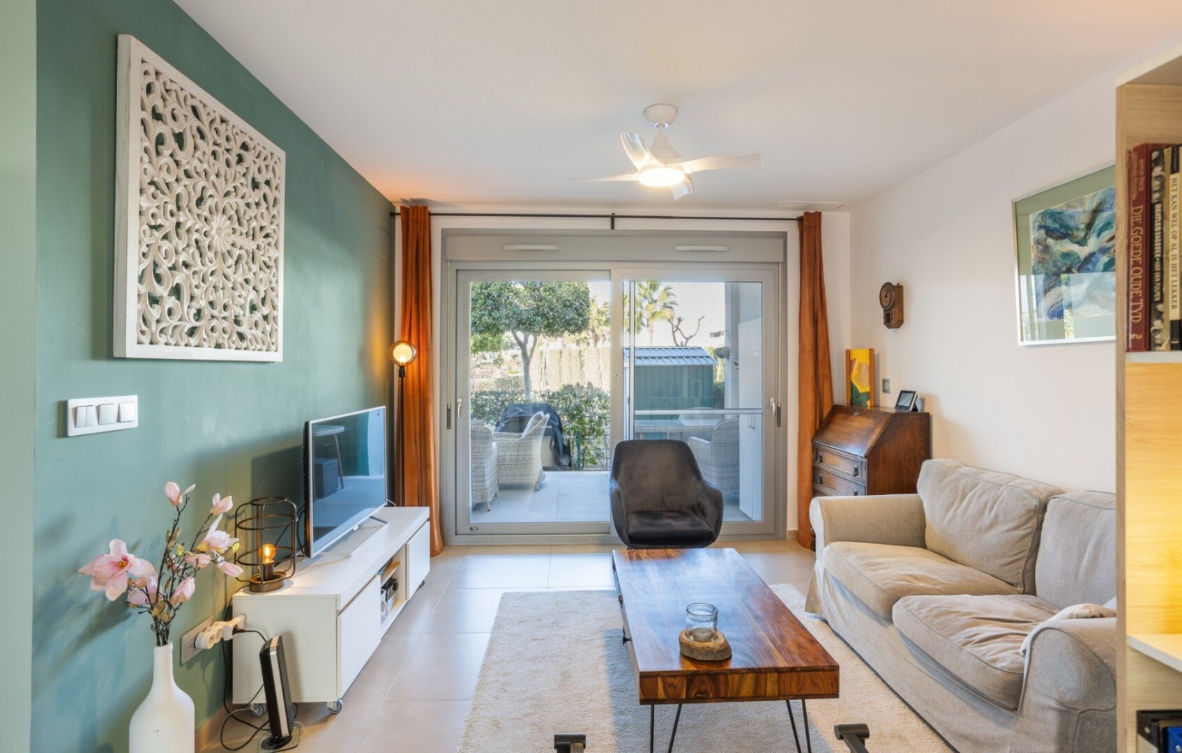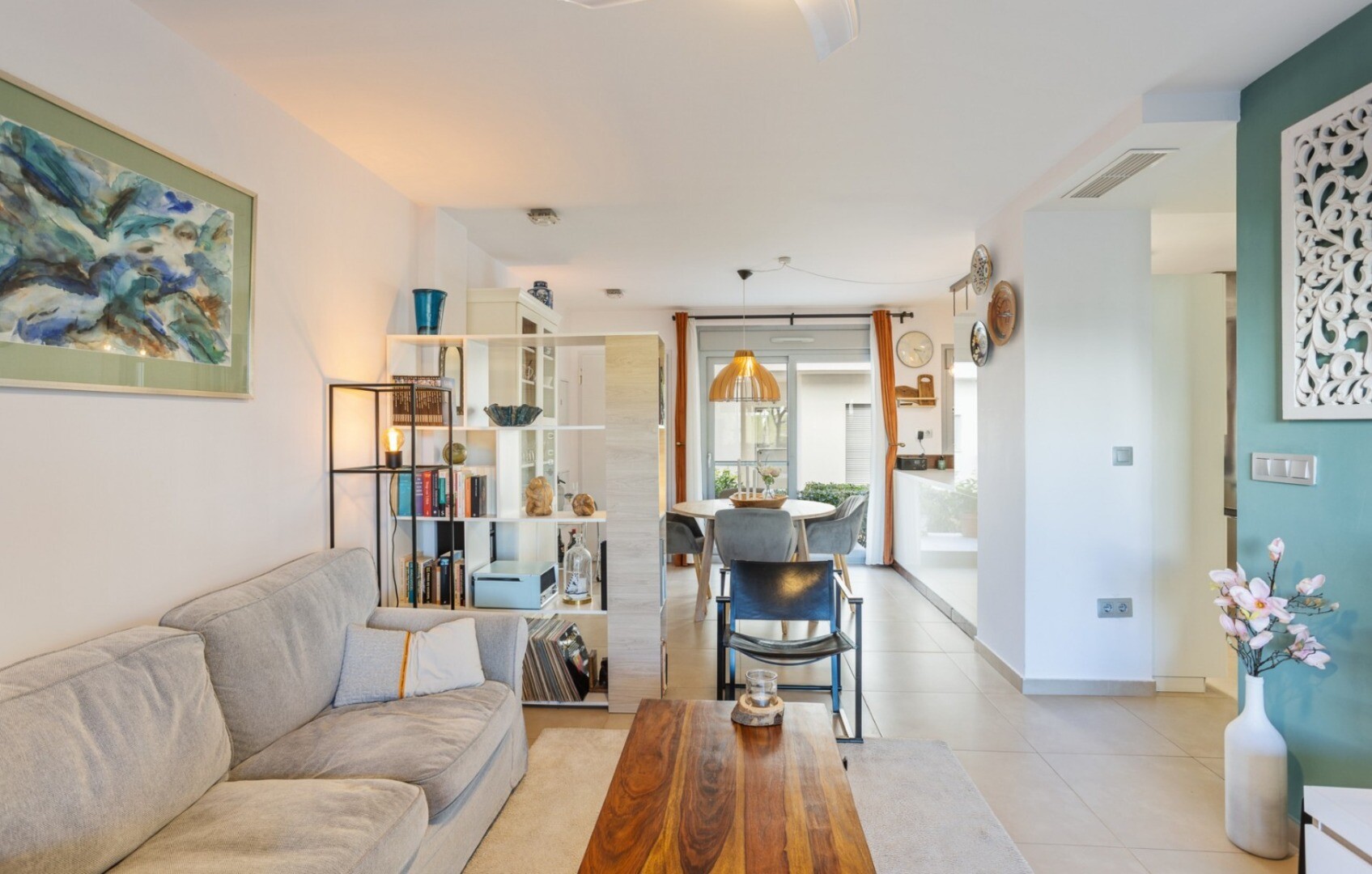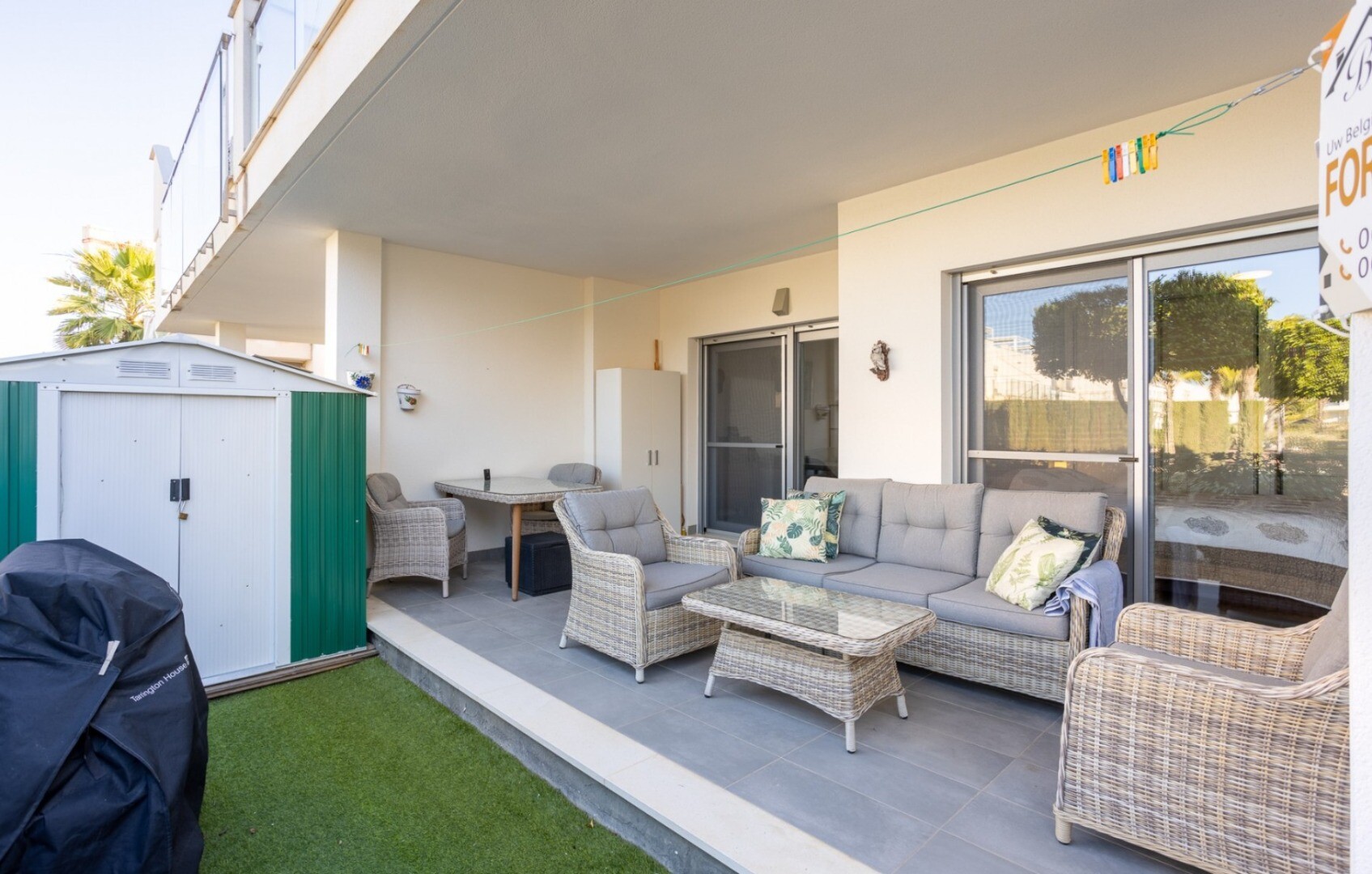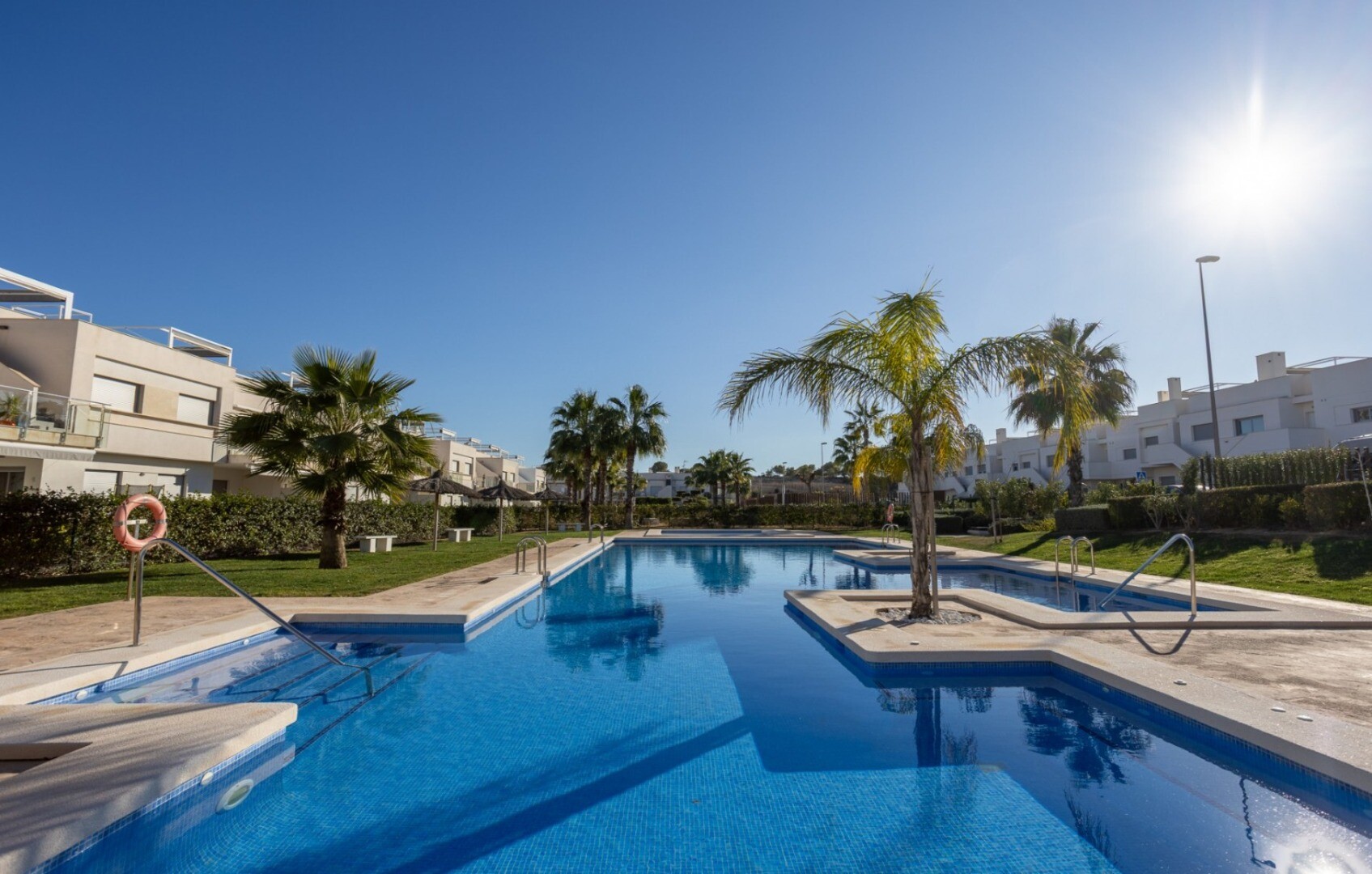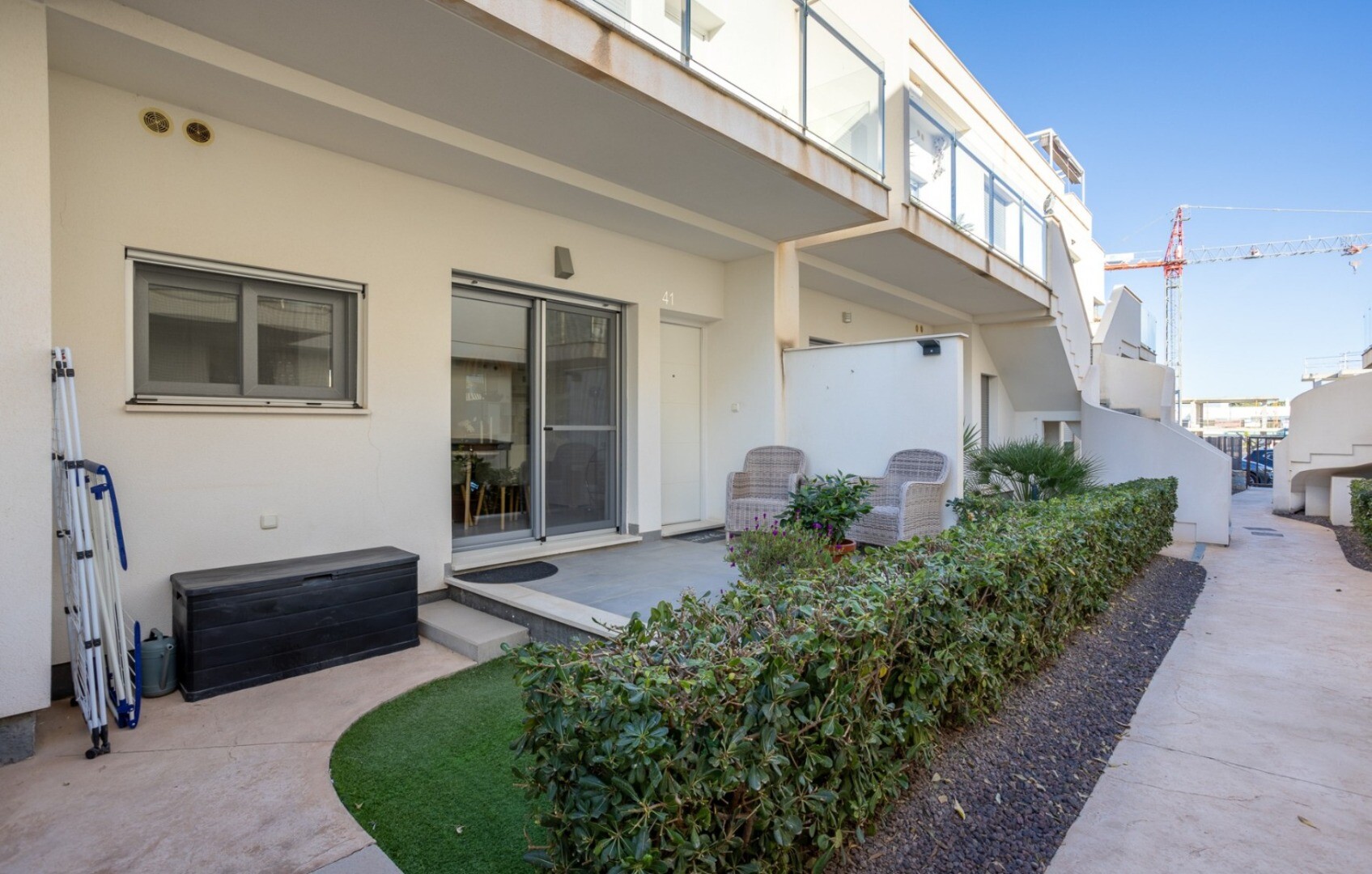 Acest apartament este situat la doar 500 m de centrul comercial cu baruri, restaurante, bancomat și supermarket și la 1000 m de terenul de golf, bowling englezesc și terenuri de padel. Vistabella Golf ar trebui privit mai degrabă ca un mic Pueblo cu toate facilitățile, cum ar fi bancomat, supermarket, diverse baruri și restaurante, farmacie .... cu... avantajul că este o zonă complet securizată, cu 1 intrare și ieșire printr-un post de securitate unde plăcuța de înmatriculare a fiecărei mașini este înregistrată electronic. Costurile pentru securitate sunt suportate integral de Vistabella Golf și de promotorul însuși. De aici există o conexiune fixă de autobuz în fiecare joi între Vistabella și La Zenia Shopping Boulevard. Există, de asemenea, o linie fixă de autobuz între Orihuela și Torrevieja. De la Vistabella Golf, toate orașele de coastă din Orihuela Costa sunt la aproximativ 15 minute cu mașina. La aeroportul Alicante se poate ajunge în aproximativ 40 de minute și la Corvera (Murcia) în aproximativ o oră.
