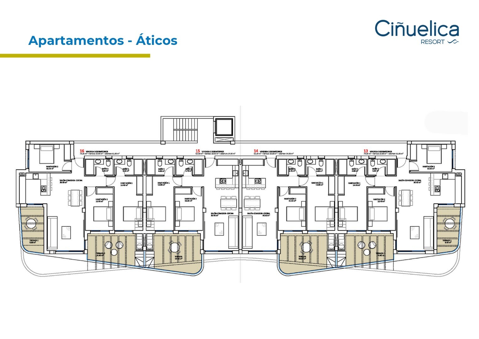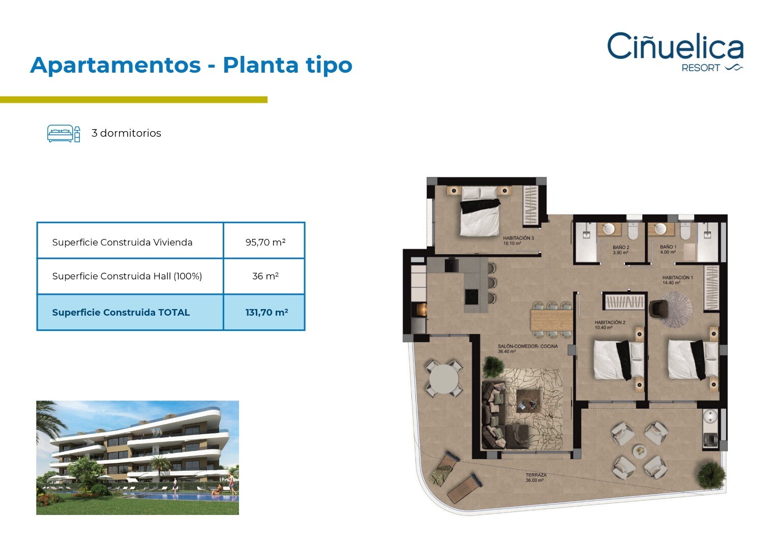 Stațiunea La Cinuelica este o reședință formată din 4 blocuri de apartamente cu un total de 32 de apartamente cu 2 dormitoare, 32 de apartamente cu 3 dormitoare și 14 bungalouri cu 3 dormitoare. Apartamentele sunt prevazute cu loc de parcare subteran si camera de depozitare, electrocasnice de bucatarie (combinatie frigider-congelator, plita ceramic...a, cuptor, cuptor cu microunde, masina de spalat vase, masina de spalat rufe si hota), obloane electrice, boiler de apa aerotermala, preinstalare A/C prin conducte de aer si pentru solarii de acoperis preinstalare pentru bucatarie exterioara si Jaccuzi. Zonele comune includ grădini amenajate cu 3 piscine și 2 jacuzzi încălzite, o zonă de fitness în aer liber și un loc de joacă. Reședința este situată la 1000m de plaja Punta Prima și la 500m de centrele comerciale cu supermarket, baruri, restaurante, bancomate, magazine etc.