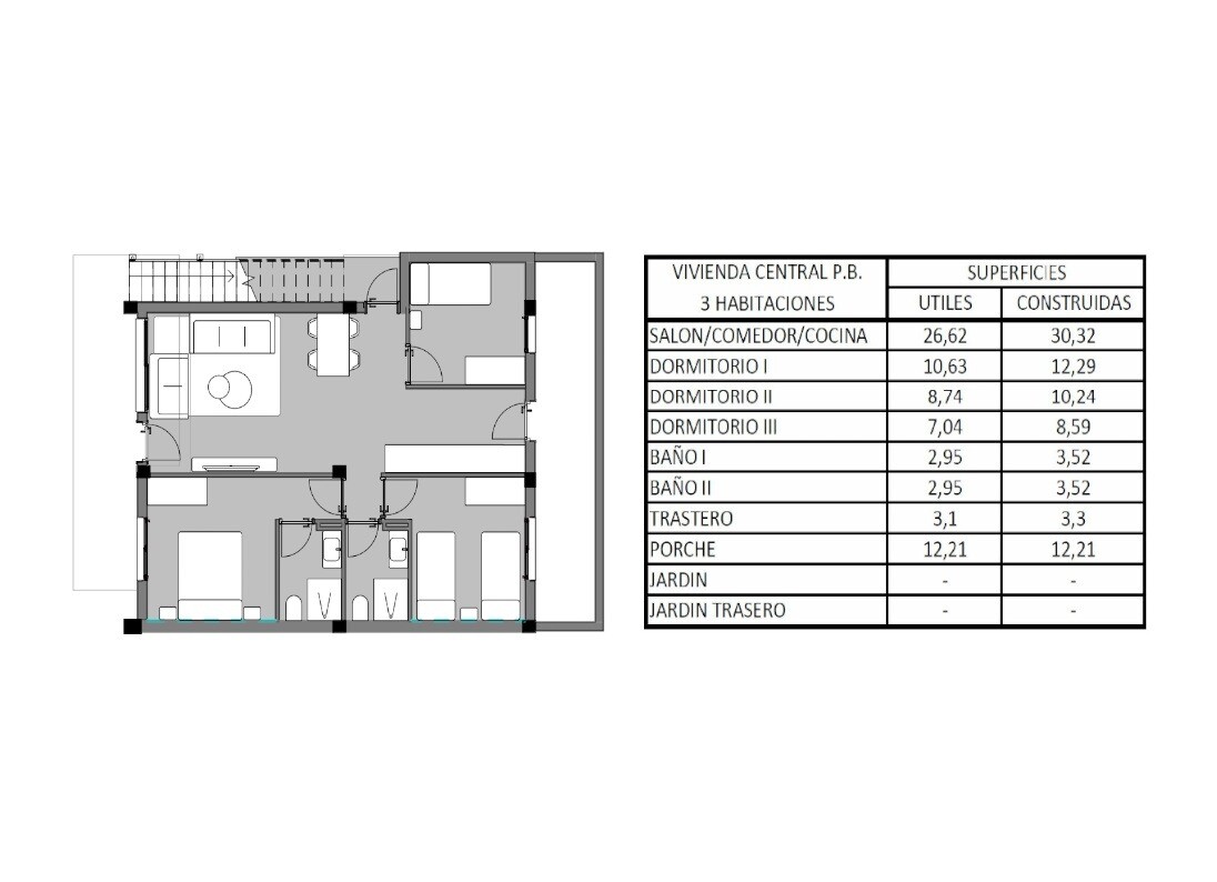 Apartamentele de la parter pot fi amenajate cu 2 dormitoare sau 3 dormitoare. San Miguel de Salinas are acces bun la aeroportul din Alicante prin AP-7. În 10 minute cu mașina puteți alege dintre 5 terenuri de golf. Plaja și bulevardul comercial din La Zenia sunt, de asemenea, accesibile în aproximativ 10 minute. În San Miguel de Salinas aveți toate... facilitățile imaginabile, supermarketuri, bănci, baruri și restaurante tipice spaniole, precum și bucătărie internațională, școli, terenuri de sport, piscină publică etc.