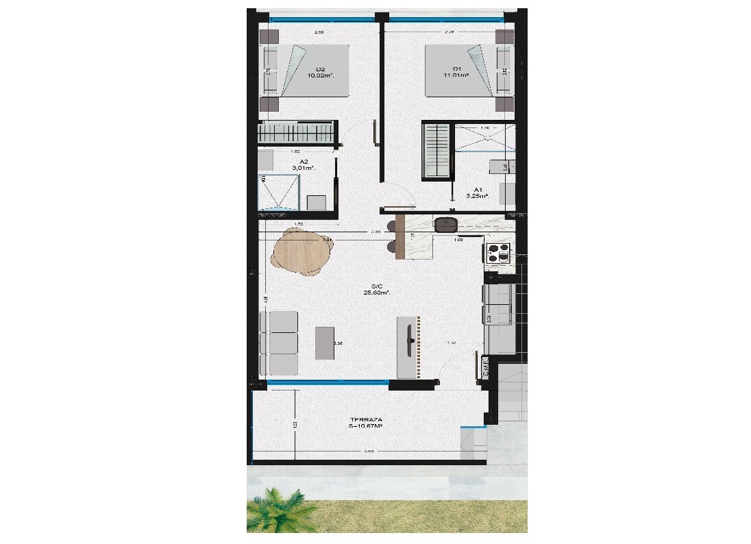 Reședință la scară mică, repartizată pe 2 faze de 3 apartamente la parter și 3 apartamente la primul etaj cu solar și bucătărie în aer liber cu loc de parcare suprateran la 2 km de plajă și toate facilitățile imaginabile la câțiva pași. Finalizarea este programată pentru iarna anului 2024. În prezent sunt dotate cu electrocasnice de bucătărie, băi ...