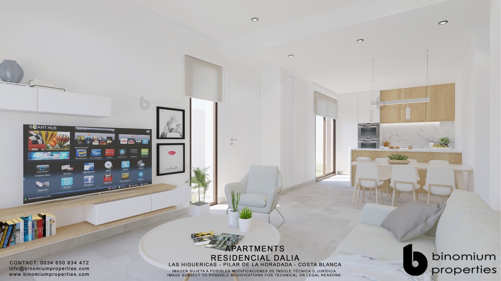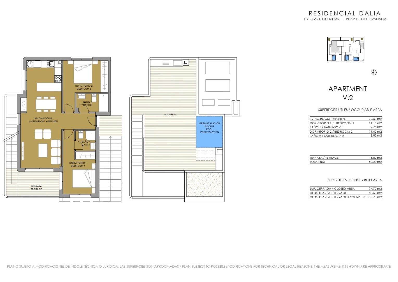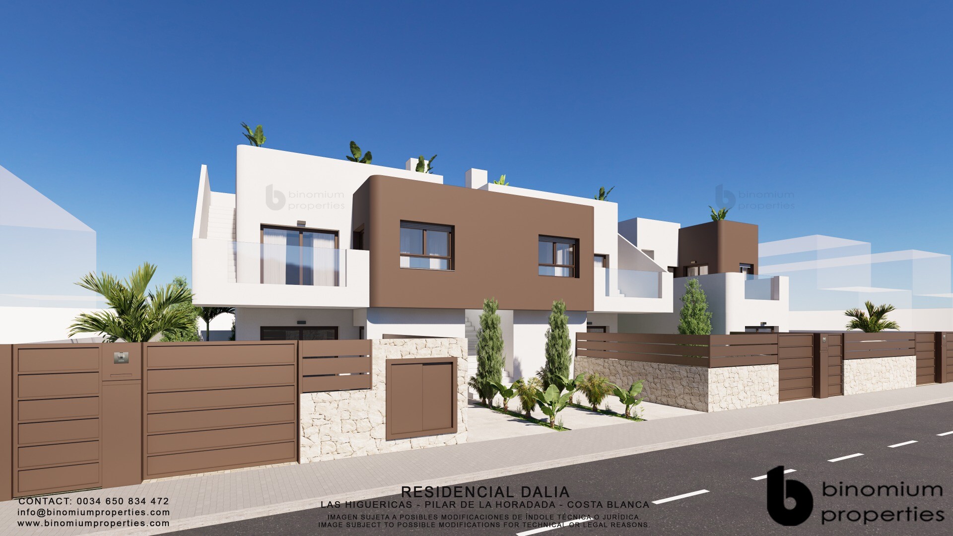 Solar 50m2. Teren mic de 4 apartamente la 100 m de plaja Playa de las Higuericas. 2 apartamente la parter cu gradina si 2 apartamente la etaj cu terasa pe acoperis. Ambele apartamente au opțiunea de a avea instalată opțional o piscină. Aeroportul Alicante este accesibil în 50 de minute, aeroportul Covera în 35 de minute.
