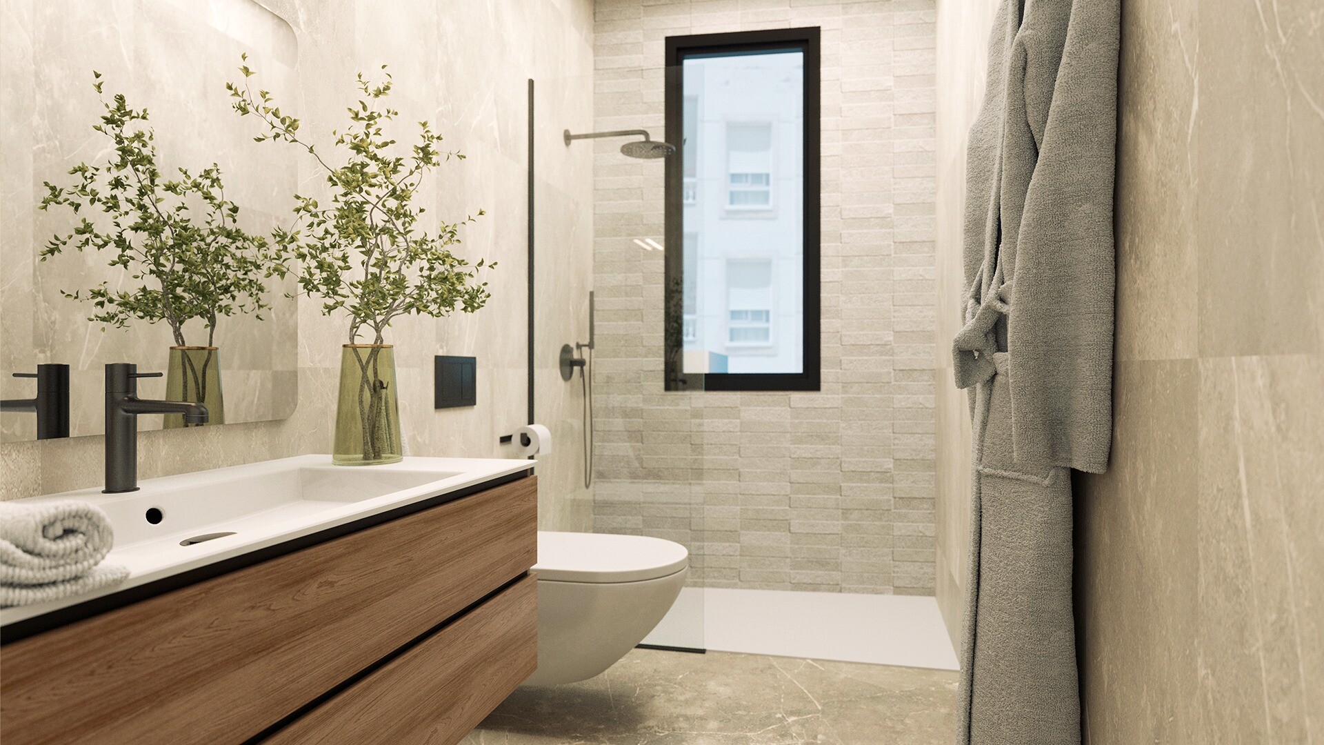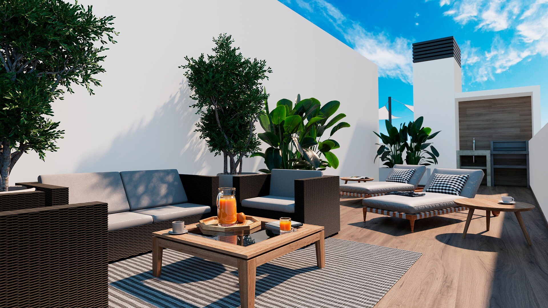 Locuința are 69 m² construiți, distribuiți în 2 dormitoare cu dulapuri încorporate, 2 băi complete și un living luminos cu sufragerie și bucătărie open space. Spațiul exterior de 35 m², împărțit între terasă și sola...riu privat, permite să te bucuri pe deplin de climatul mediteranean. De asemenea, dispune de preinstalare pentru aer condiționat prin conducte.