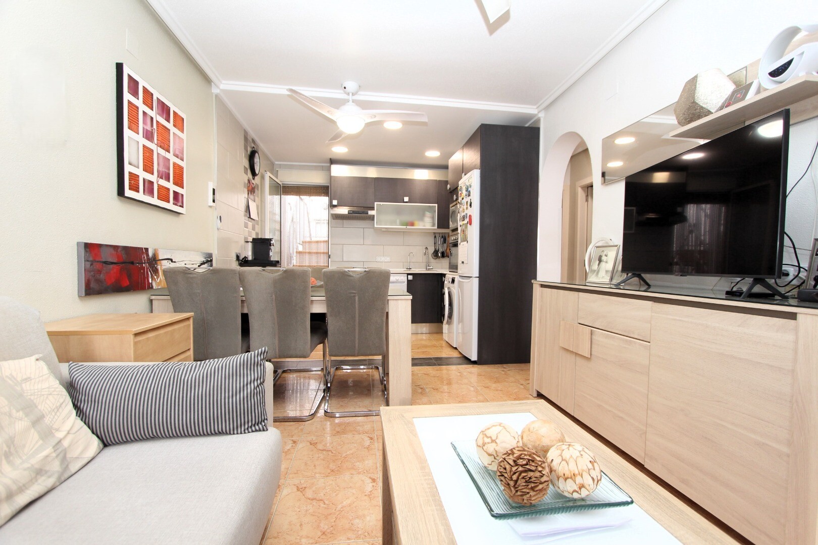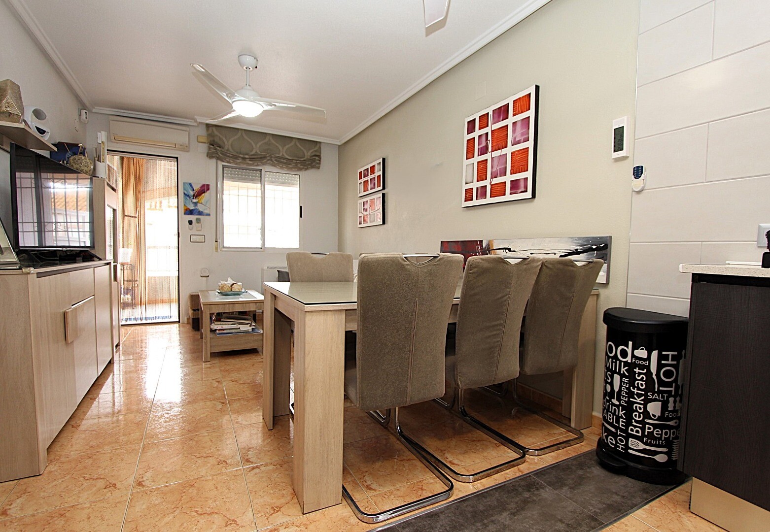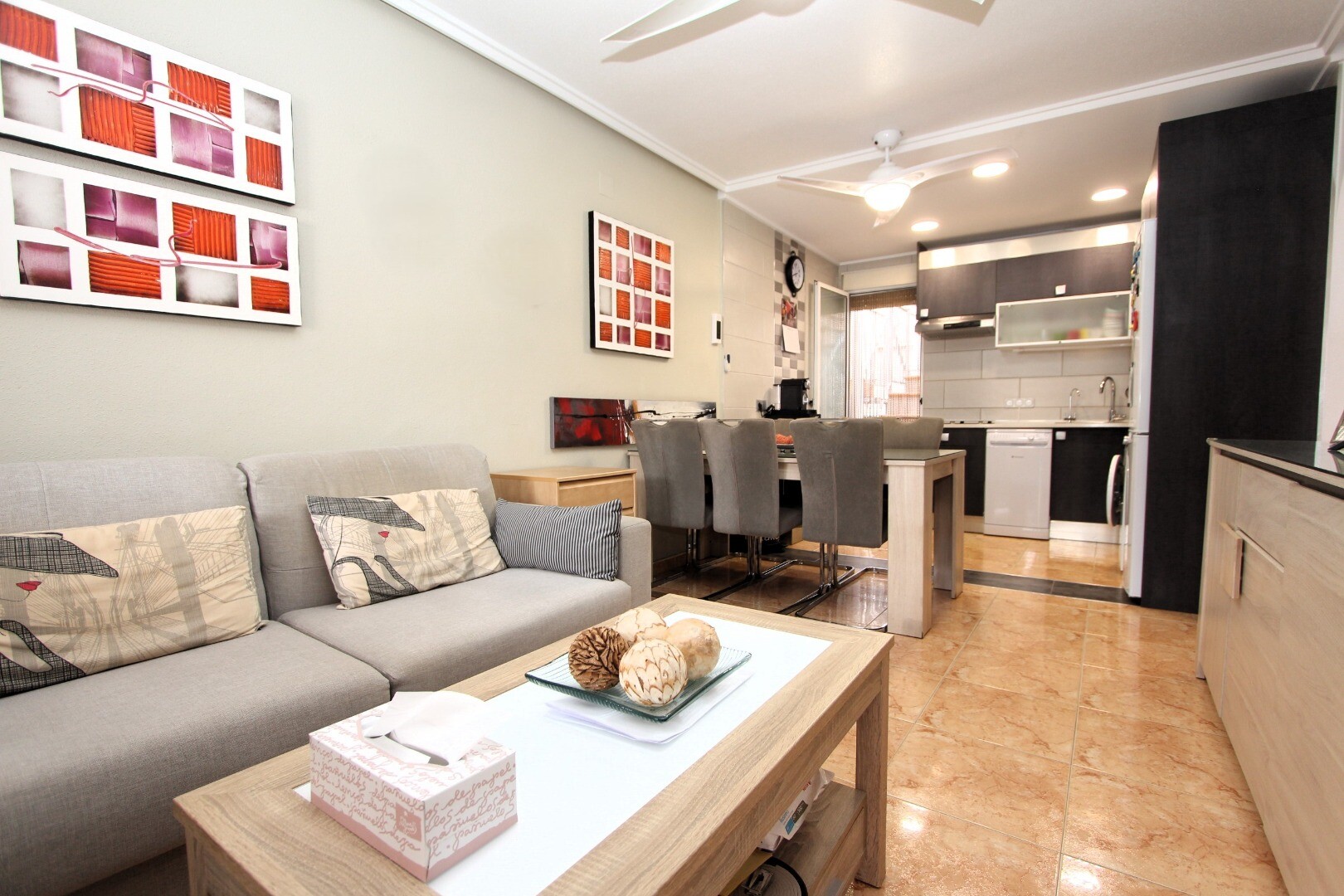 Îți imaginezi cum ar fi să locuiești într-un loc liniștit, unde să te poți bucura de soarele mediteranean pe tot parcursul anului? Îți prezentăm această casă duplex situată la etajul întâi, în complexul rezidențial Altos del Limonar din Torrevieja. Locuința are două dormitoare, o baie, o terasă orientată spre est și un solarium privat spațios la et...ajul superior. Imobilul a fost renovat în bucătărie și baie cu materiale de calitate excelentă. Complexul rezidențial este închis, dispune de un teren multifuncțional și o piscină comună spațioasă, unde vă veți putea petrece momente plăcute în zilele calde de vară. Centrul comercial Habaneras se află la doar 3 minute cu mașina, iar celebrele plaje Playas del Cura, Los Locos și Los Naúfragos la aproximativ 10 minute cu mașina. Spitalul Universitar din Torrevieja este situat la aproximativ 15 minute, iar Aeroportul Internațional din Alicante, cu zboruri directe către principalele destinații europene, la aproximativ 40 de minute. Contactați-ne pentru mai multe informații!