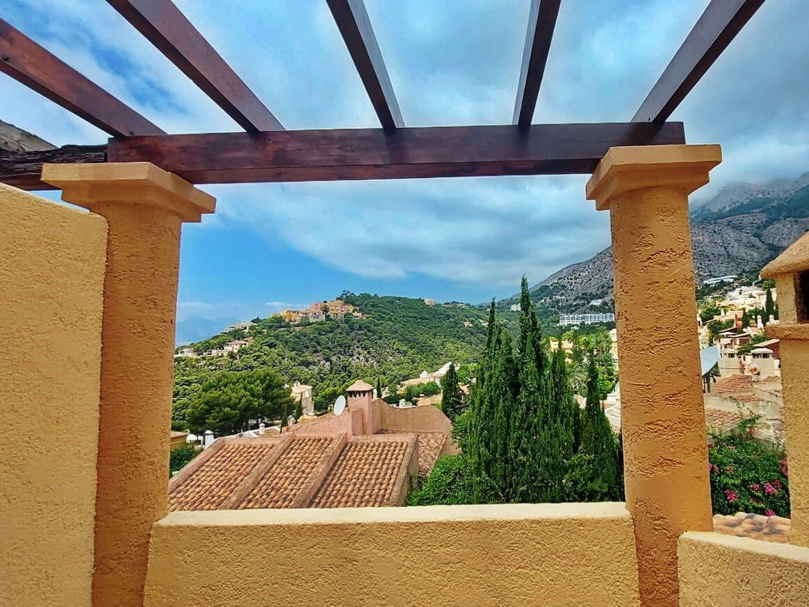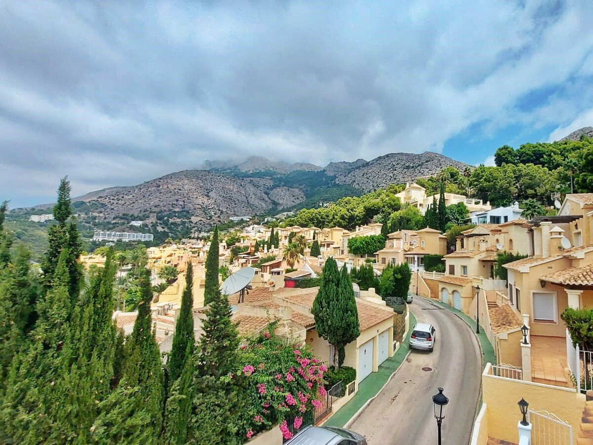Casa de oras cu 3 camere in prestigioasa urbanizare Altea Hills cu paza 24/7. Aceasta proprietate ofera cazare pe 2 etaje, parter: dormitor, baie, bucatarie si lounge cu acces direct la terasa, beneficiaza si de piscina privata. Primul etaj: 2 dormitoare si o baie. Garaj privat la nivelul străzii. Proprietatea are vedere frumoasă la mare, peste Gol...ful Altea. Există și o piscină comună.