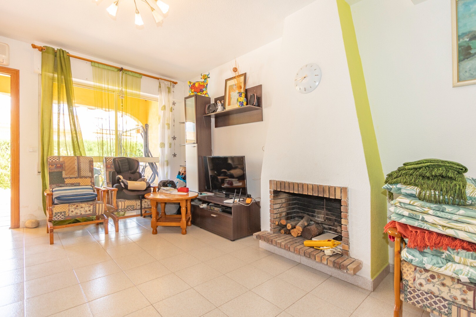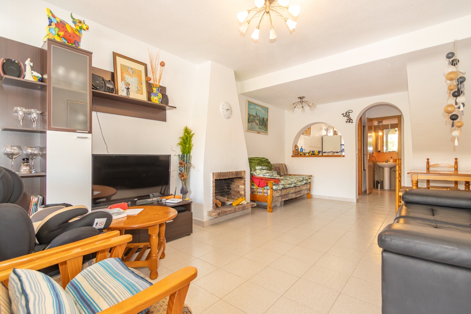 Livingul spațios, echipat cu un șemineu, este inima casei, ideal pentru întâlniri de familie și momente de relaxare. Bucătăria funcțională și bine echipată include o galerie/cămară care găzduiește și electrocasnicele necesare pentru spălatul rufelor.