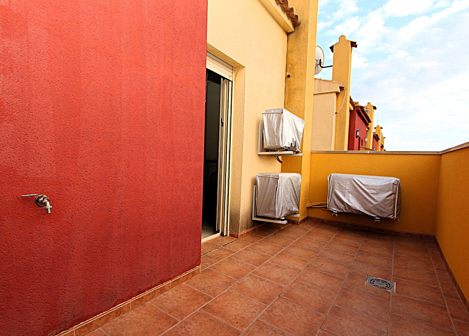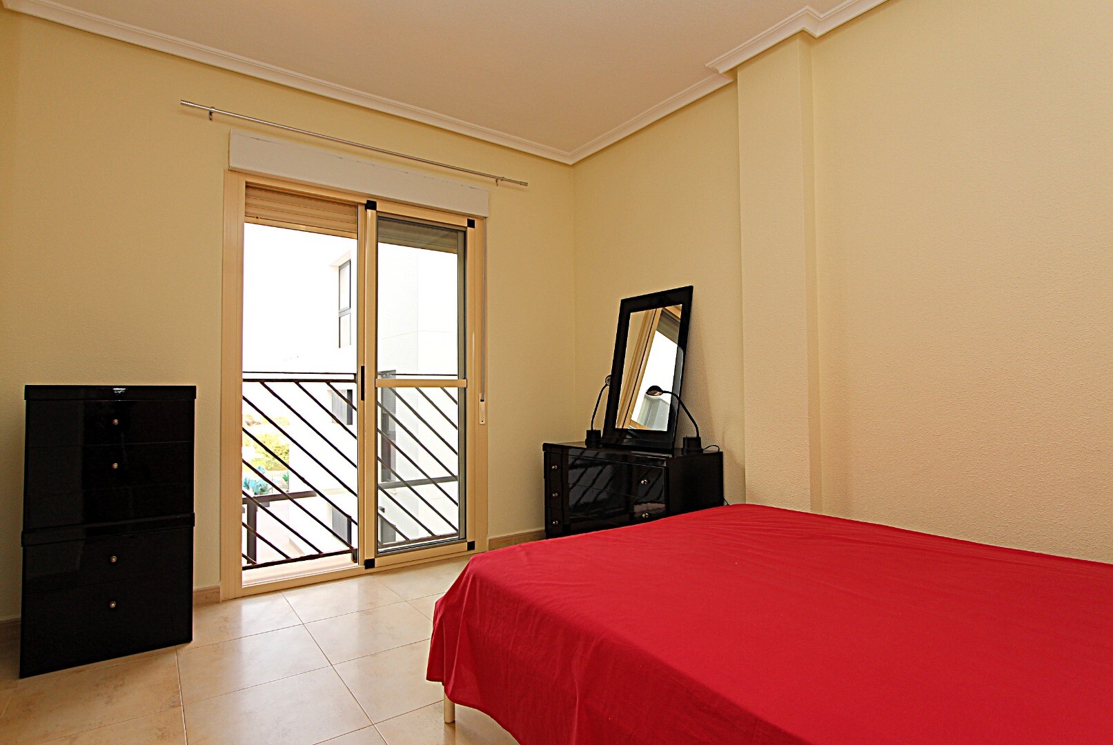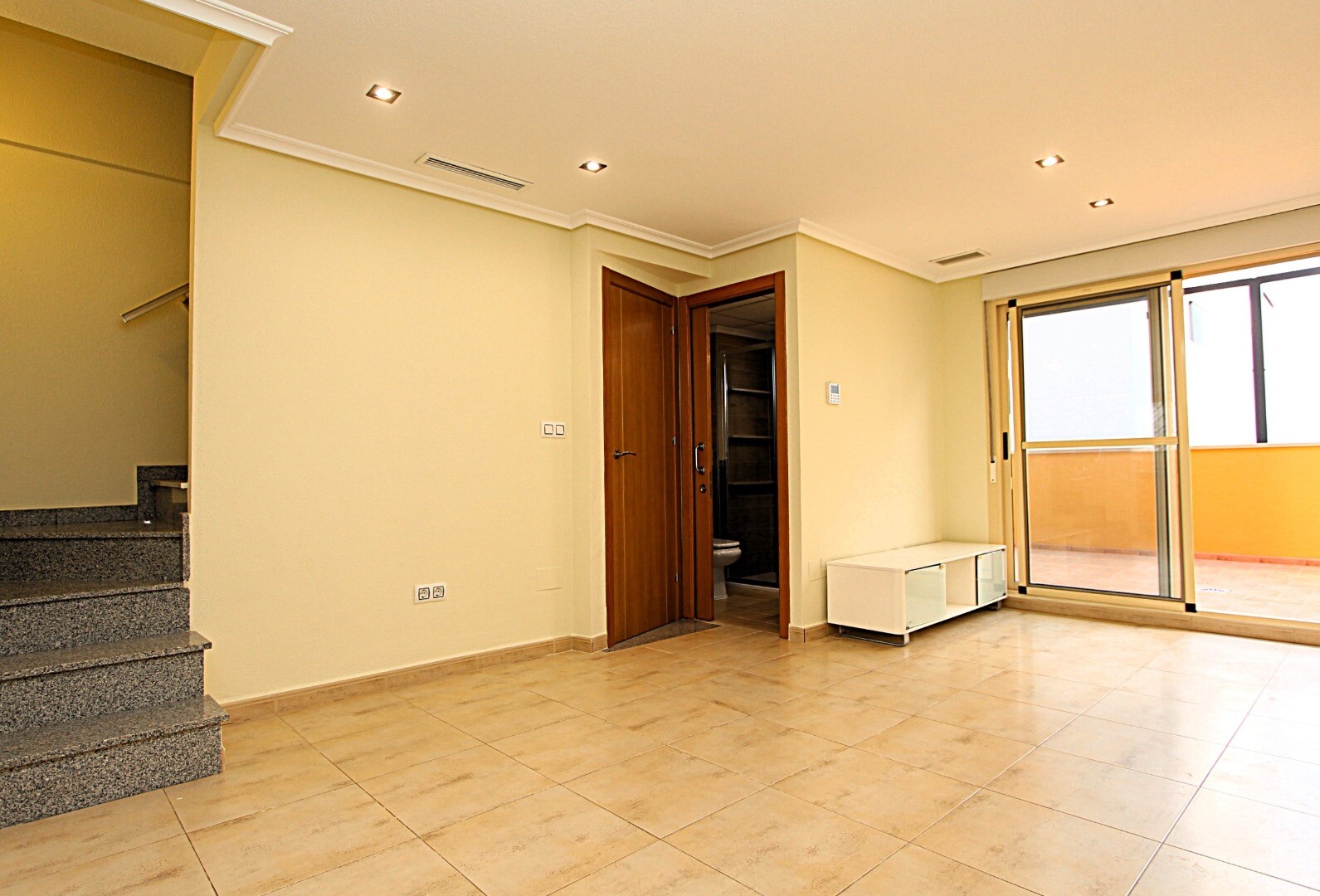 Proprietatea are trei dormitoare duble, trei băi, dintre care una en suite, aer condiționat prin conducte și... terase spațioase, una dintre ele cu vedere la Marea Mediterană. La subsol există un garaj închis, cu capacitate pentru două vehicule și cameră de depozitare.