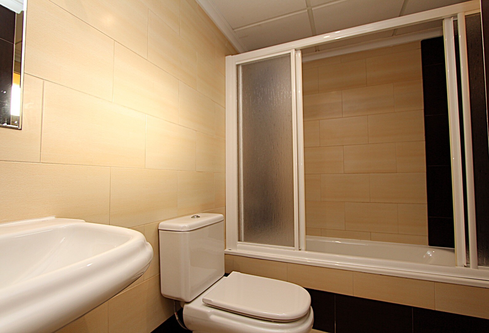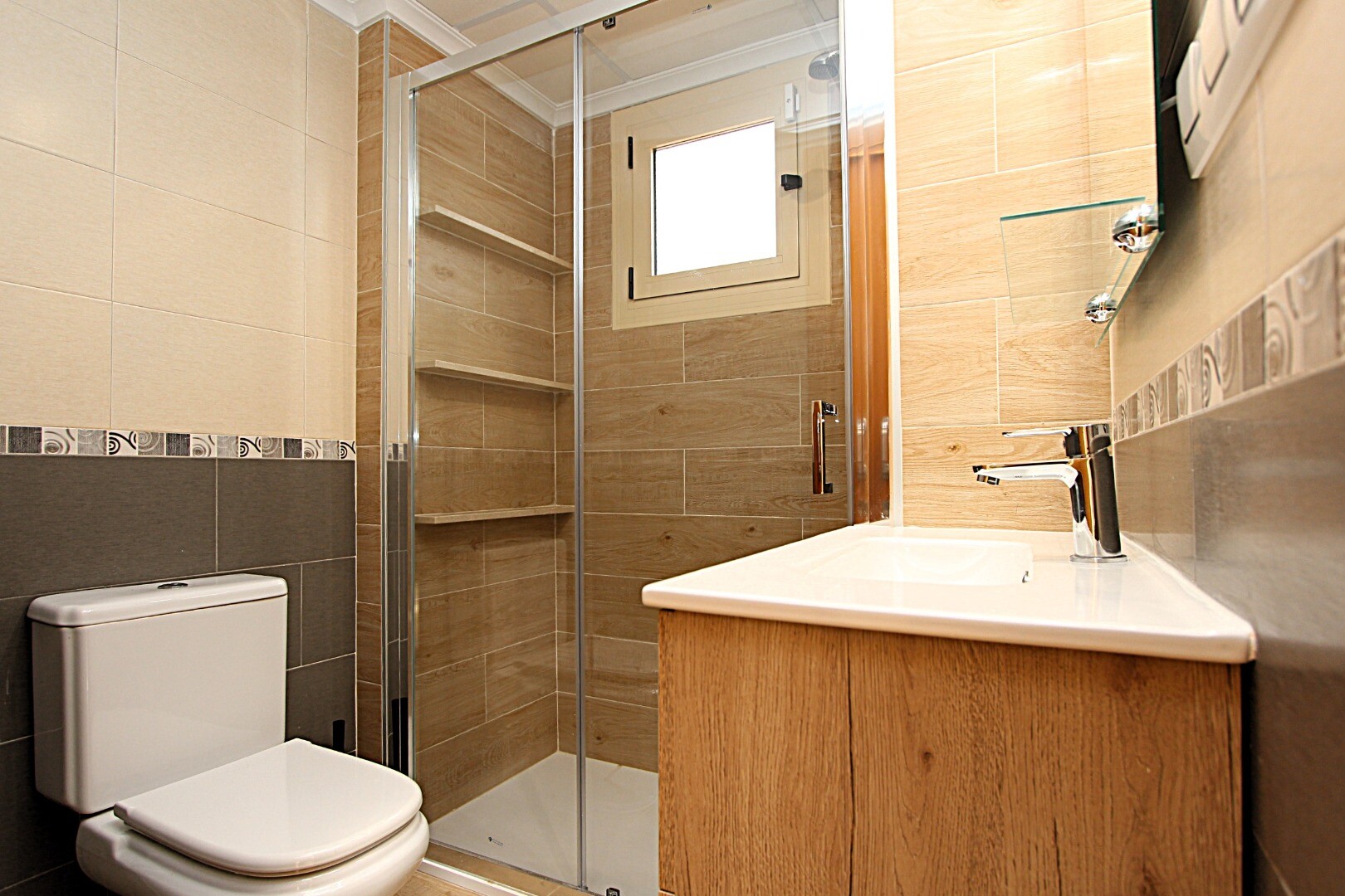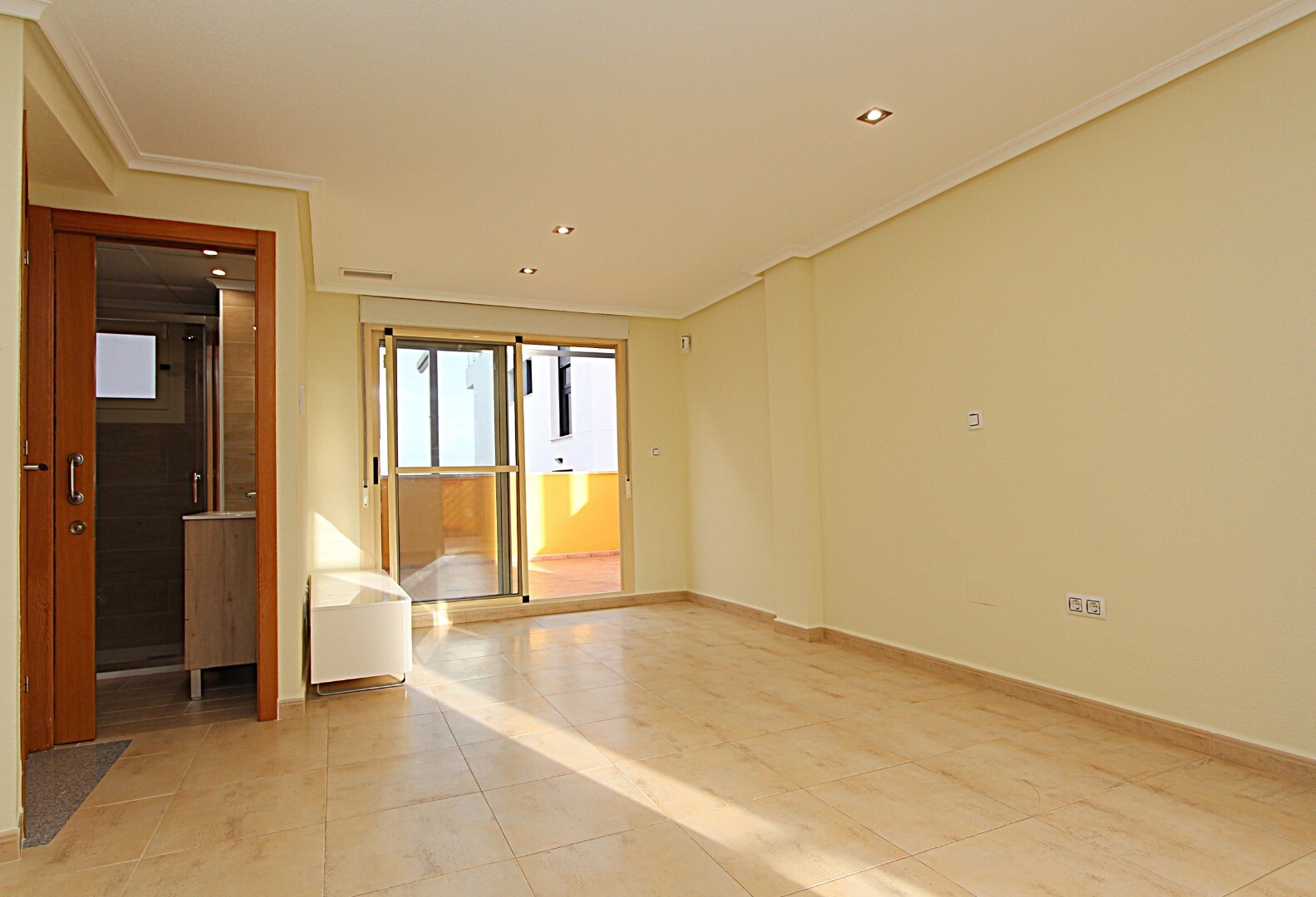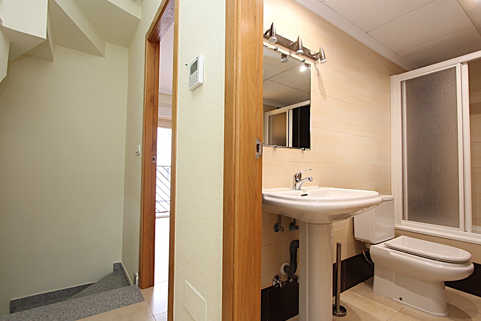 Proprietatea are trei dormitoare duble, trei băi, dintre care una en suite, aer condiționat prin conducte și... terase spațioase, una dintre ele cu vedere la Marea Mediterană. La subsol există un garaj închis, cu capacitate pentru două vehicule și cameră de depozitare.