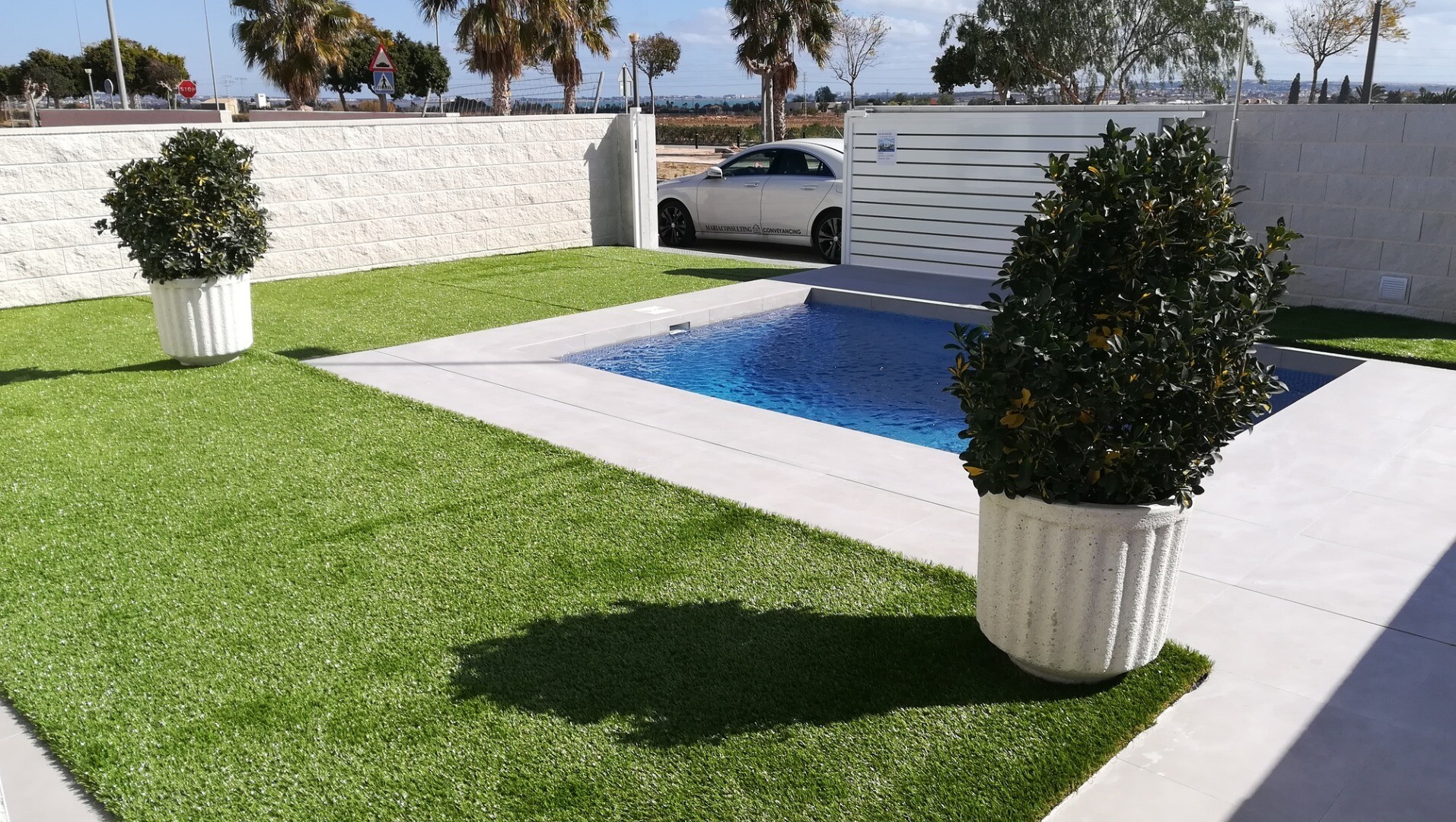Vile frumoase cu un singur etaj, cu piscină finisată, grădină, solar, obloane electrice și deschizător de porți motorizat cu vedere panoramică la orizont și lacurile sărate roz din Torrevieja.