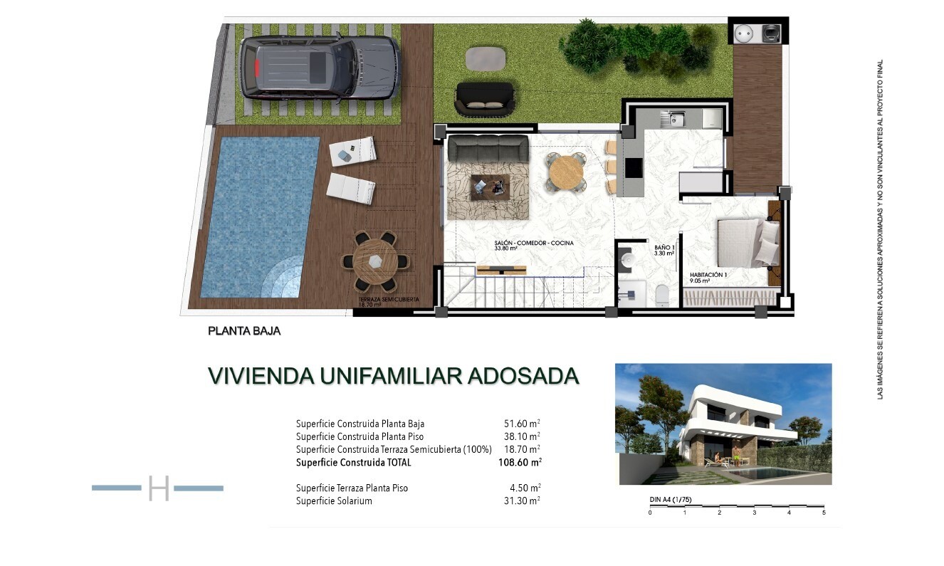 solar de 31m2. O reședință mică de 32 de RV-uri și 4 case individuale în zona liniștită din Los Montesinos, aproape de toate facilitățile și stațiunile de golf posibile. Un loc ideal pentru cei cărora le place să meargă cu bicicleta, deoarece există o conexiune foarte bună de piste de biciclete. La diferite locuri de joacă se poate ajunge cu mașina... în aproximativ 20 de minute. Aeroportul Alicante aproximativ 30 de minute