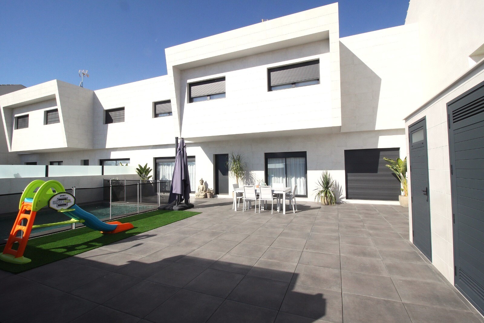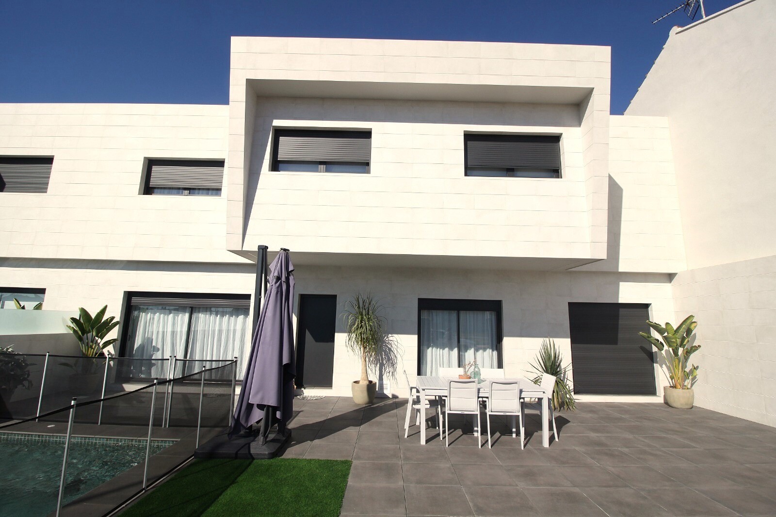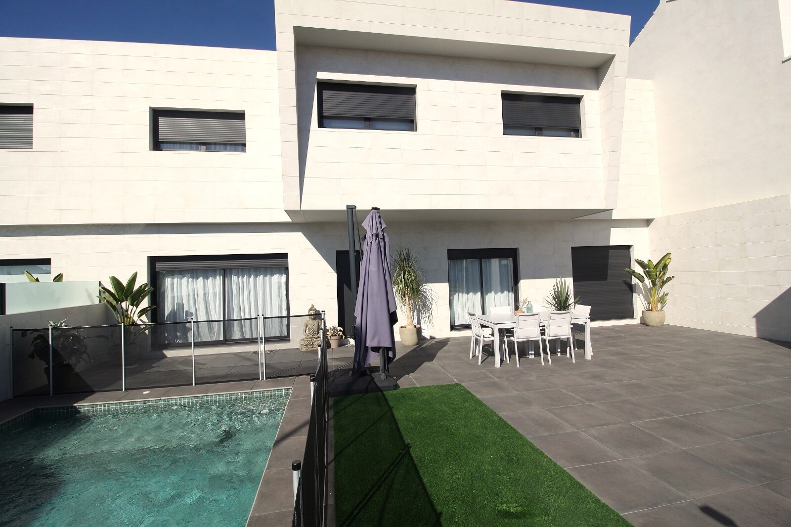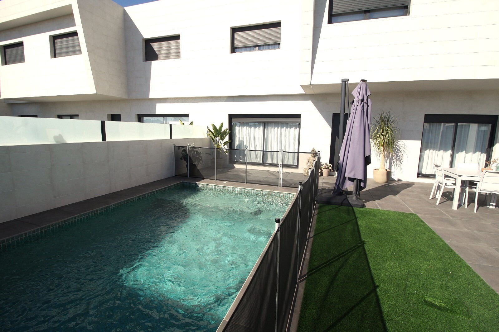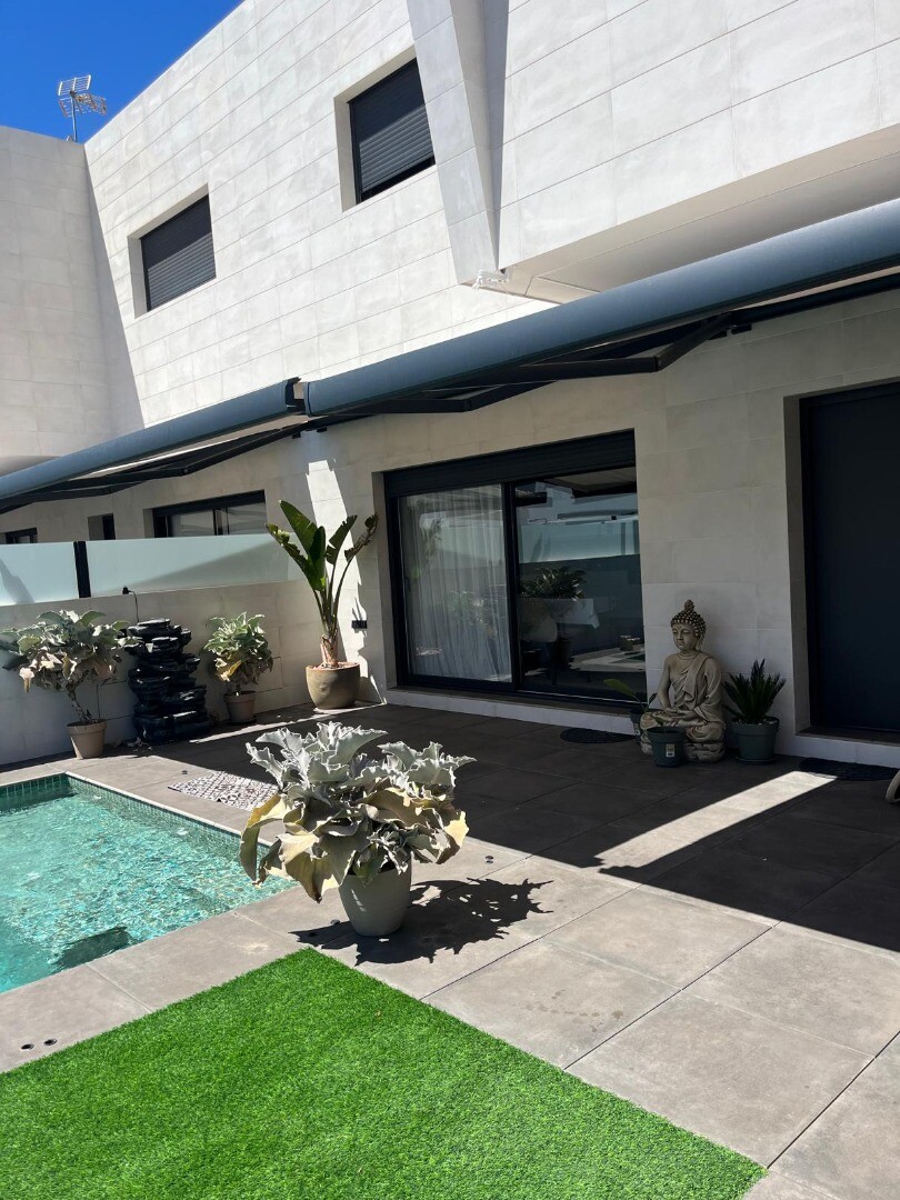 Casă terasată recent semidecomandată, revândută, în San Pedro del Pinatar, cu 4 dormitoare și 2 băi și o toaletă în aer liber la piscina de 6x4m cu jacuzzi încorporat. Casa este situata la 3 km de Marea Mediterana si la 500 m de centru. Casa vine complet mobilata cu incalzire in pardoseala, A/C si electrocasnice de bucatarie. Aeroporturile Corvera ...și Alicante sunt accesibile în 30, respectiv 50 de minute.