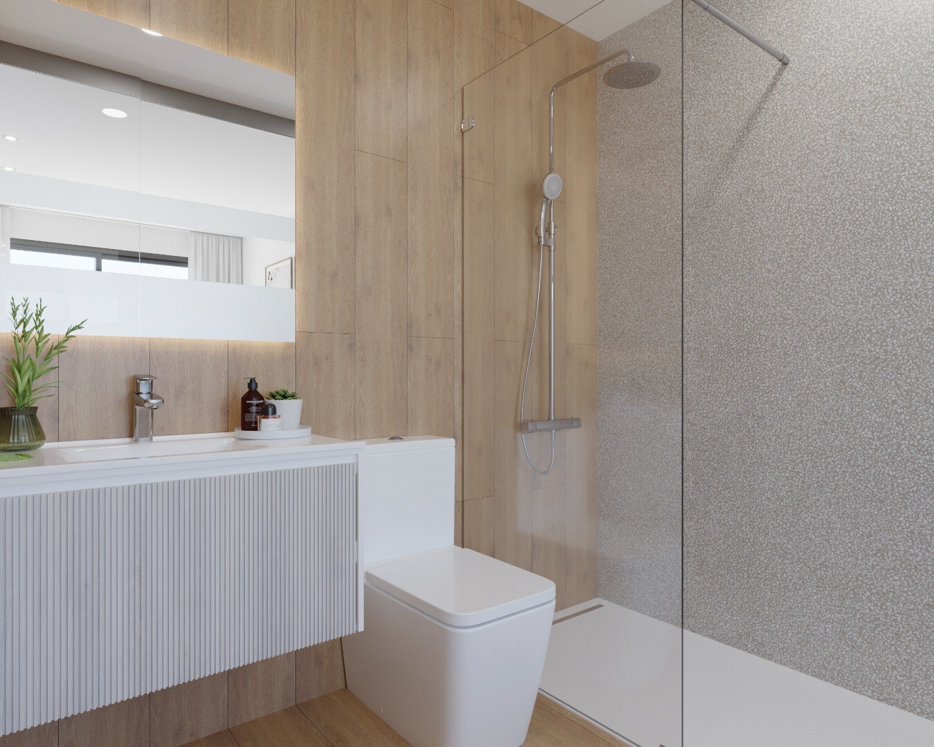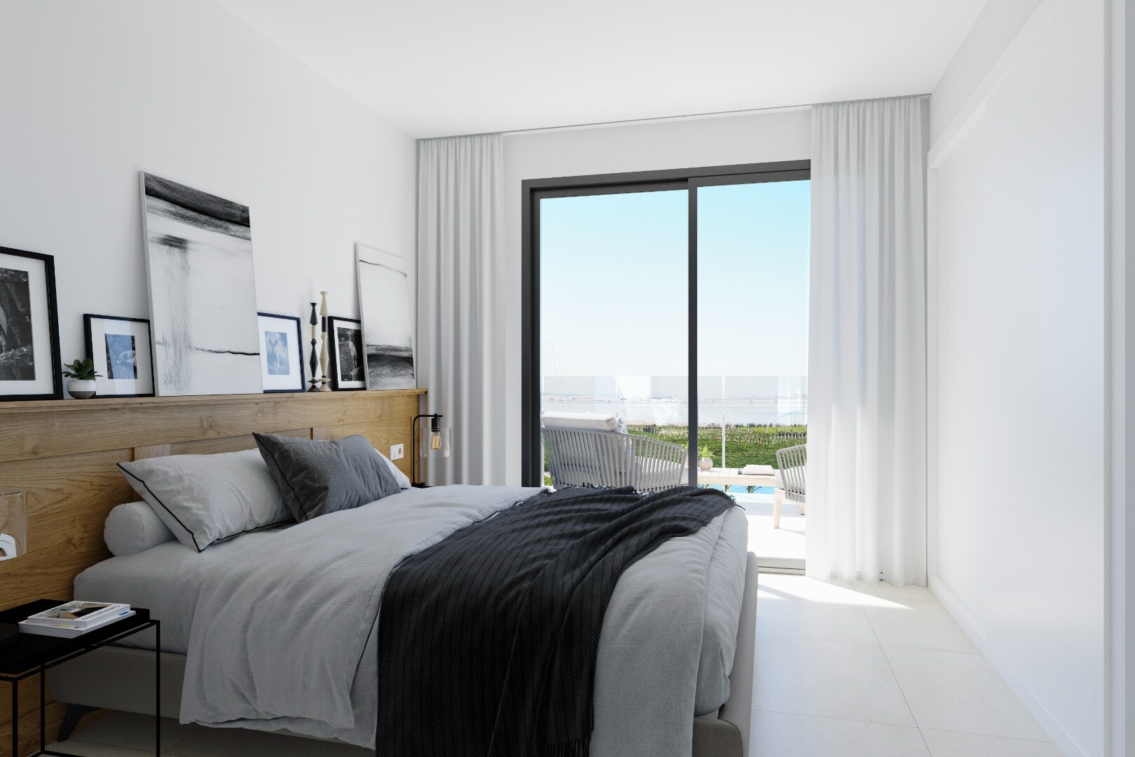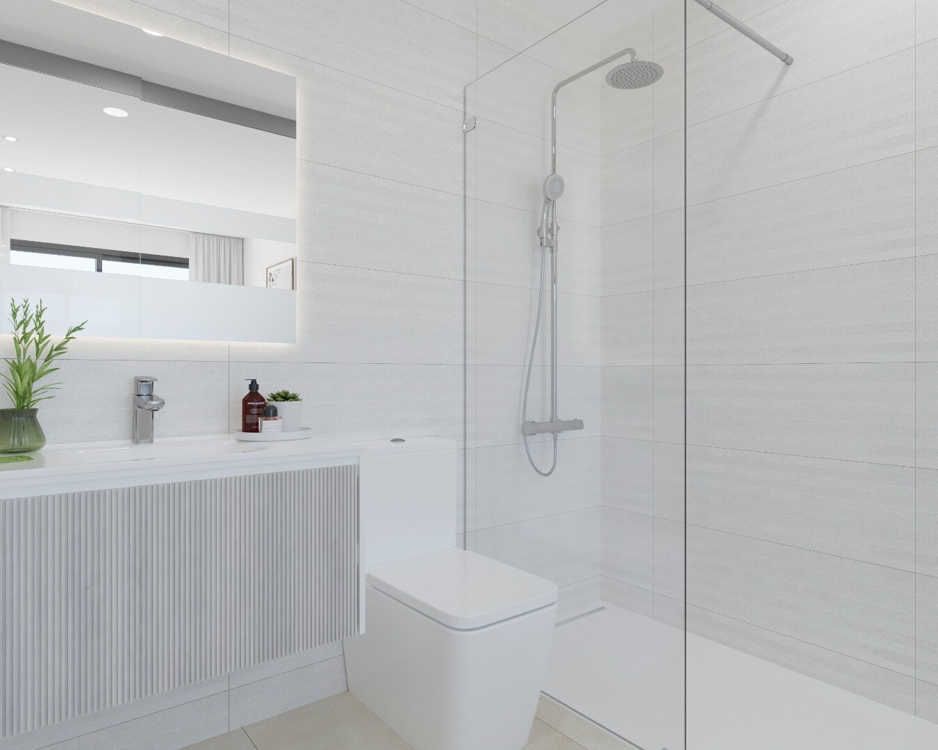Această casă de oraș nou construită la ultimul etaj, situată în zona exclusivistă Los Balcones, Torrevieja, combină designul modern, spațialitatea și confortul. Cu o suprafață construită de 77 m², proprietatea are două dormitoare cu dulapuri montate și două băi elegante. Camera de zi-sufragerie, luminoasă și confortabilă, este integrată cu o bucătă...rie open space complet echipată cu electrocasnice, oferind un spațiu funcțional și contemporan.