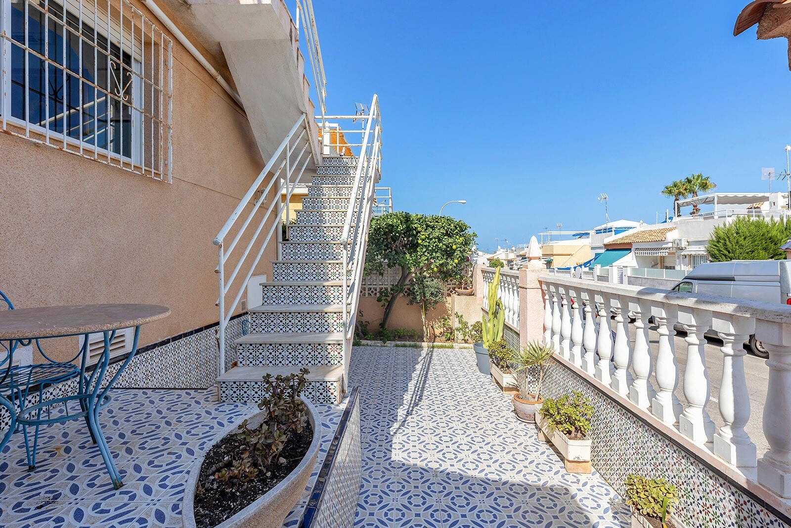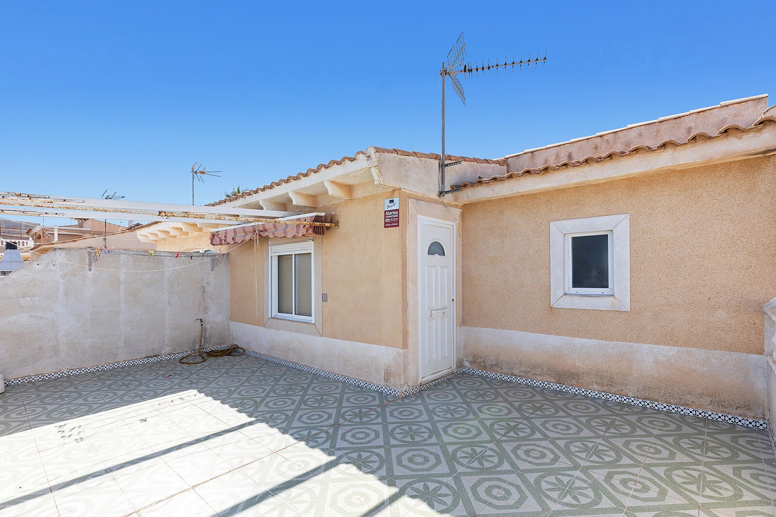 Casa semidecomandata in Los Altos cu 3 dormitoare si 2 bai. La parter se afla un living cu bucatarie deschisa, 2 dormitoare si o baie. Pe terasa de pe acoperiș, cu vedere la mare, există un alt dormitor separat și o baie. Ideal când ai oaspeți în vizită. Este situat în exteriorul unei comunități închise cu grădină comună și piscină. Este situat la ...aproximativ 2000 m de mare și pe o rază de 1000 m veți găsi toate facilitățile imaginabile. La aeroportul din Alicante se poate ajunge în aproximativ 45 de minute.
