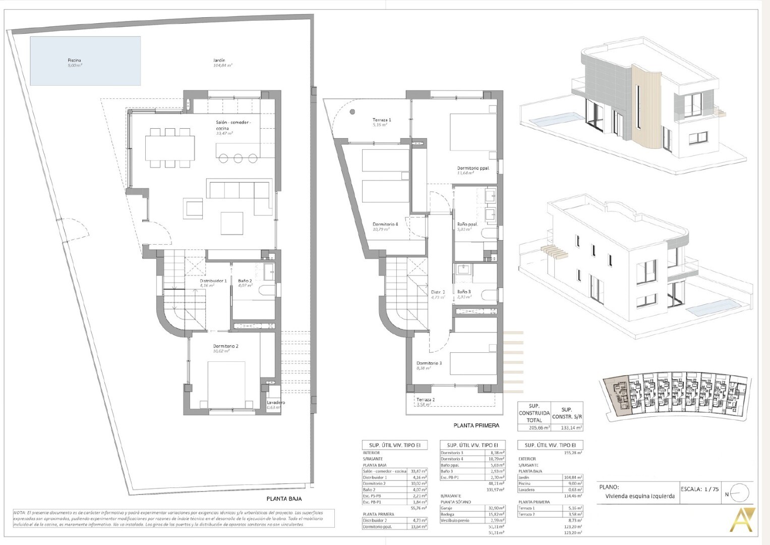 Aceste vile moderne, detașate, sunt situate în zona rezidențială exclusivistă Los Jardines și oferă spații de locuit cuprinse între 188 m² și 207 m², concepute pentru a asigura spațiu, confort și o dispunere funcțională în fiecare cameră.
