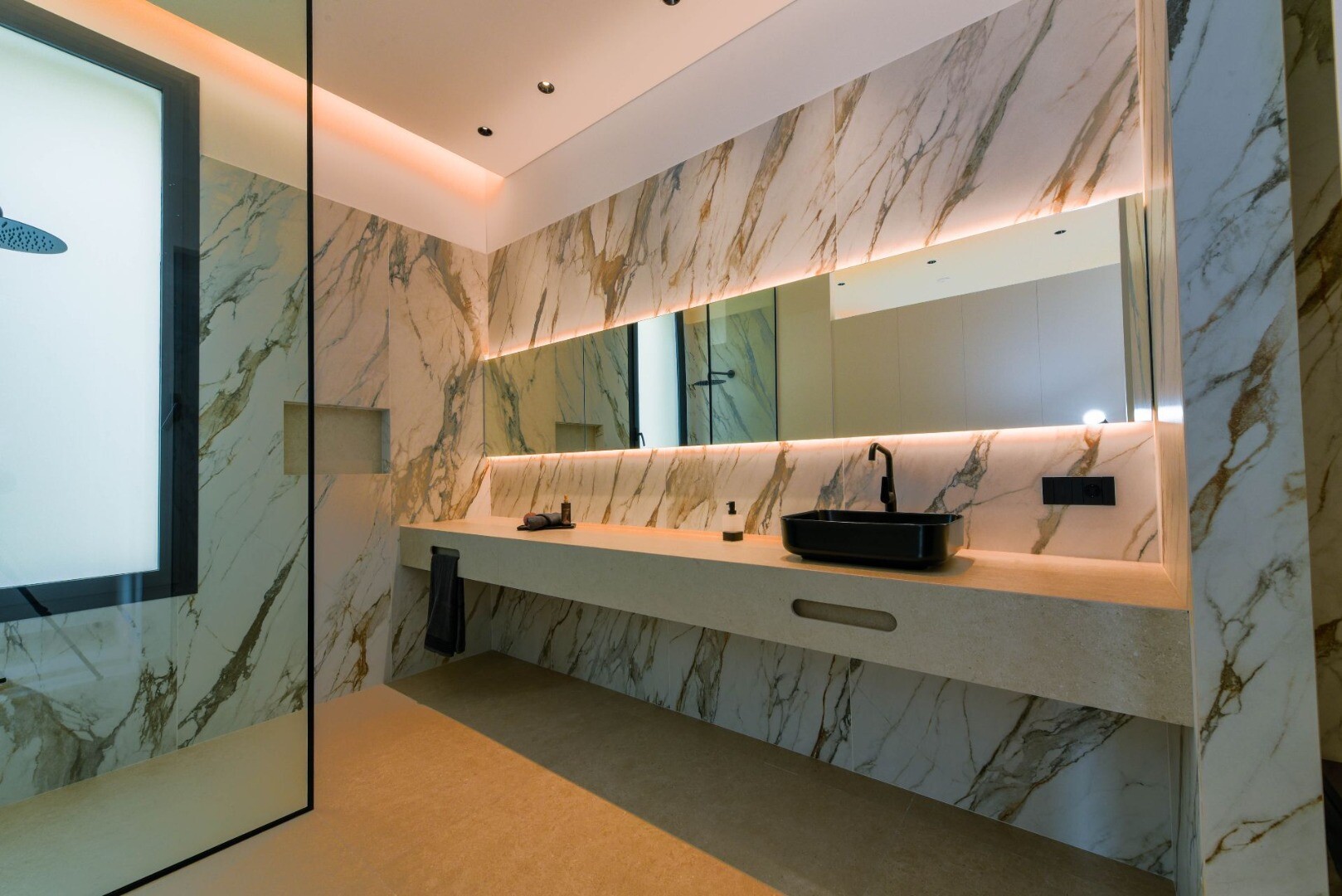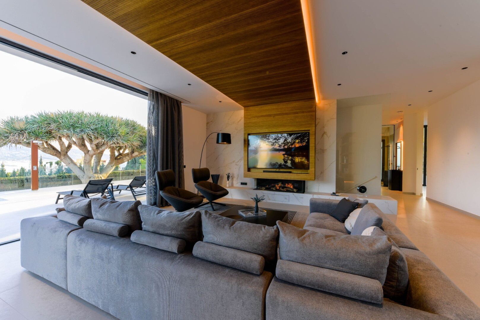 Li...ving spatios cu bucatarie deschisa cu insula mai mare decat in mod normal, care are ferestre controlate electric care se potrivesc discret in pereti pentru a aduce exteriorul inauntru si invers. Livingul are și un frumos șemineu modern pe gaz pentru nopți confortabile de iarnă. 4 dormitoare si 5 bai. Există un arbore dragon mare, care este o specie protejată lângă piscină și se estimează că are peste 300 de ani.