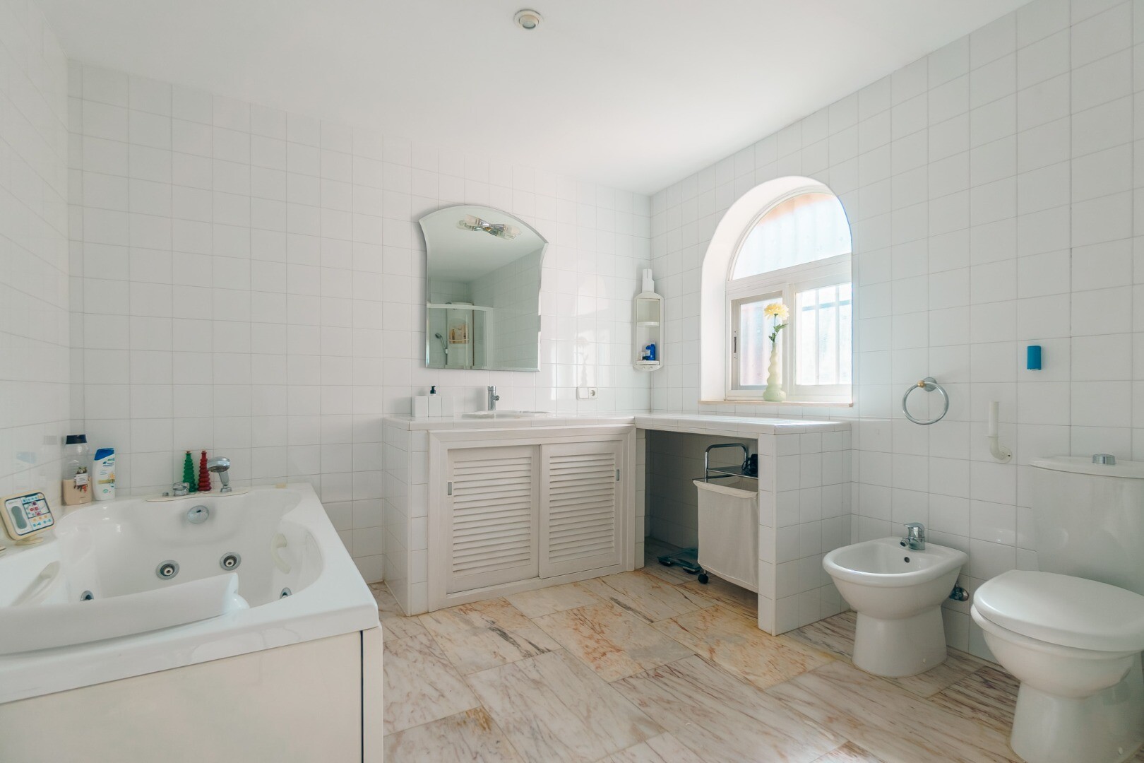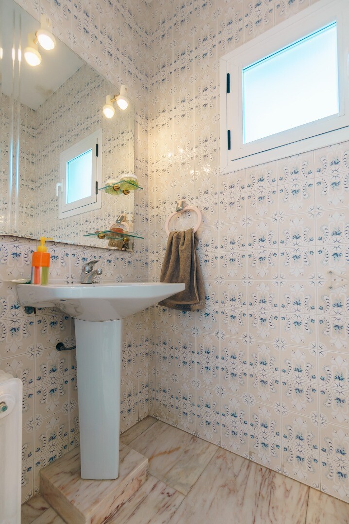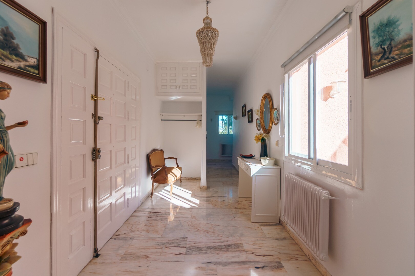 Casa principală este distribuită pe un singur etaj și oferă două dormitoare spațioase, ambele cu băi proprii, precum și o toaletă pentru oaspeți. De asemenea, dispune de un living-sufragerie luminos, o bucătărie independentă și un birou care poate fi ușor transformat într-un al treilea dormitor. Proprietatea include un garaj cu zonă de spălătorie, ...mai multe spații de depozitare și o terasă interioară plăcută. În plus, există o zonă generoasă de grădină cu un mare potențial de a fi transformată într-un frumos spațiu de locuit în aer liber.