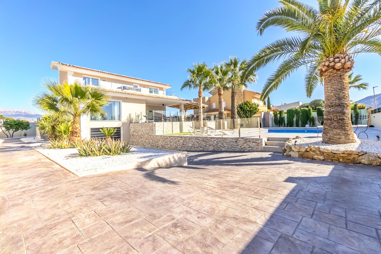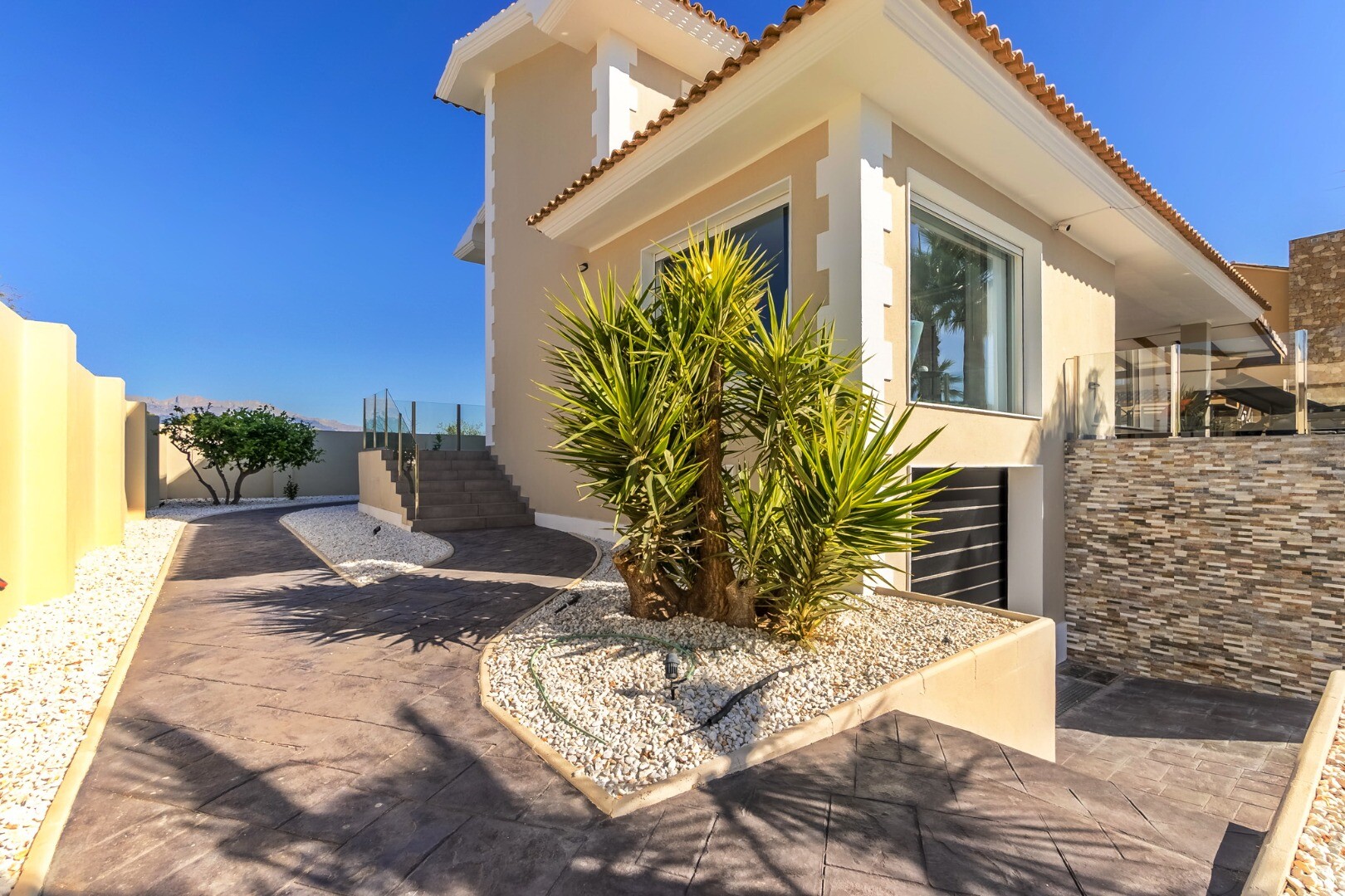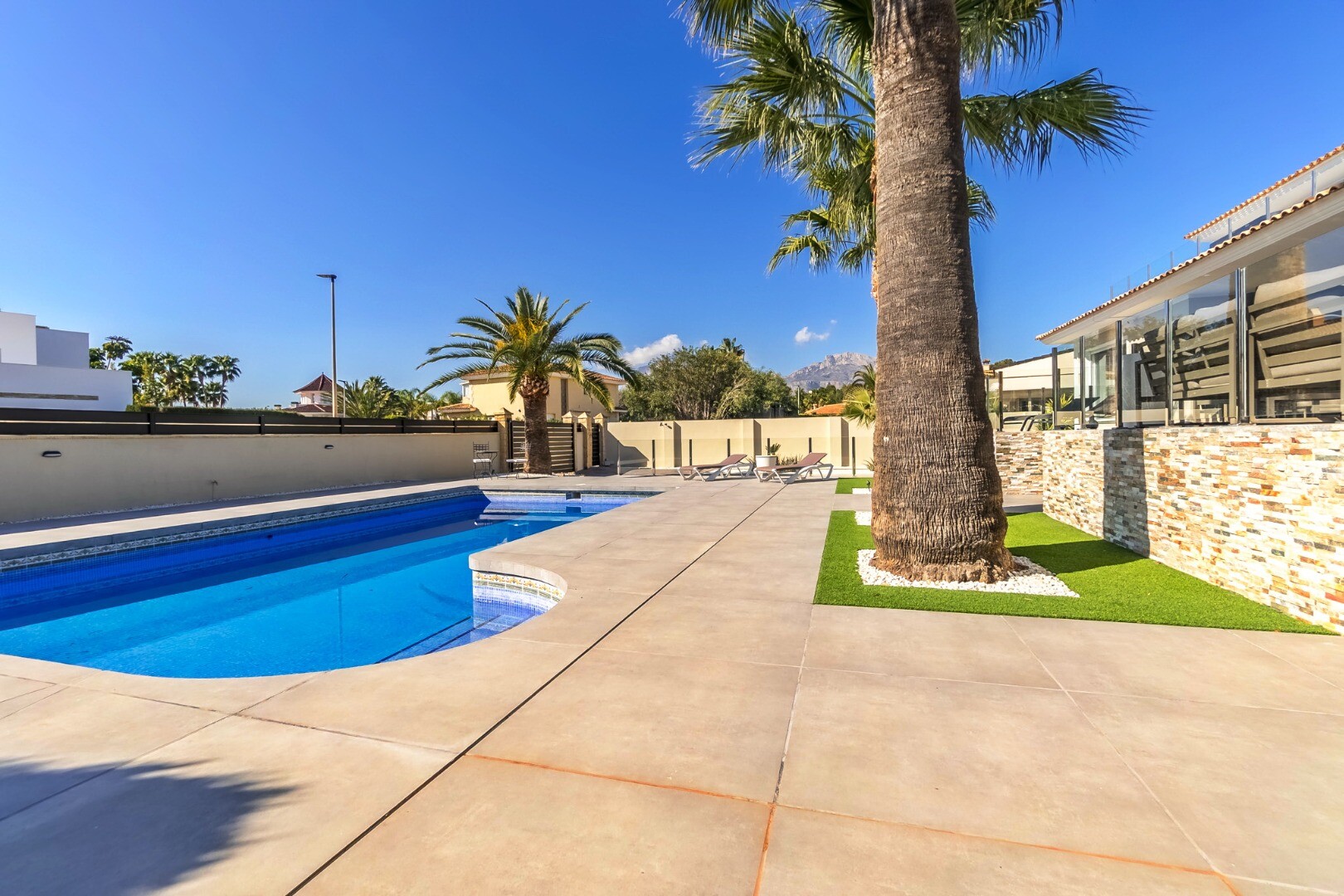 Complet renovată în 2023, această vilă modernă de 350 m² se află pe un teren privat de 1.250 m² într-o zonă rezidențială liniștită, la doar 10 minute de plajă și la 15 minute de Benidorm. Se vinde complet mobilată și gata de mutat.