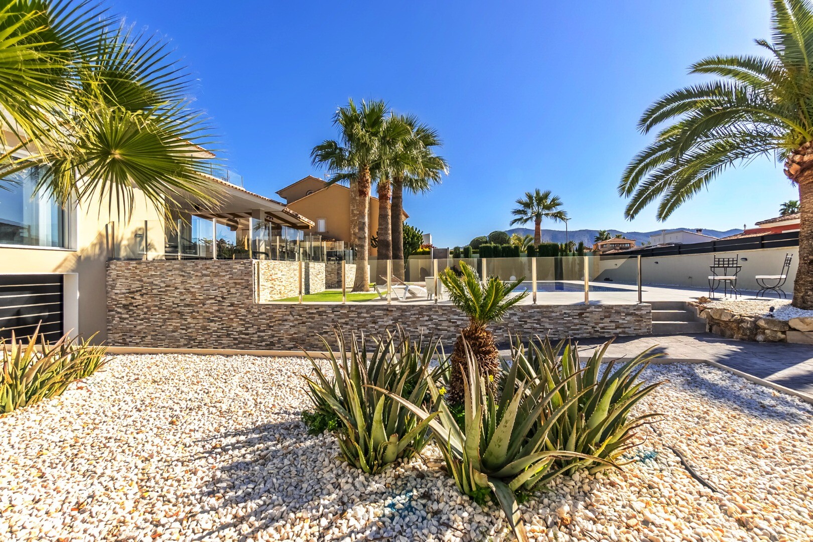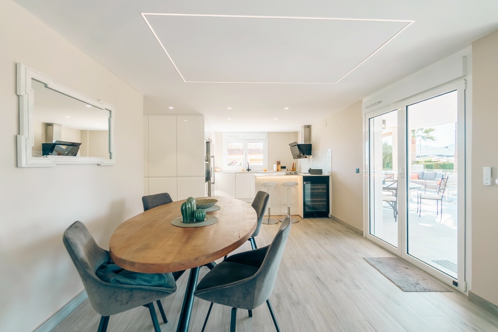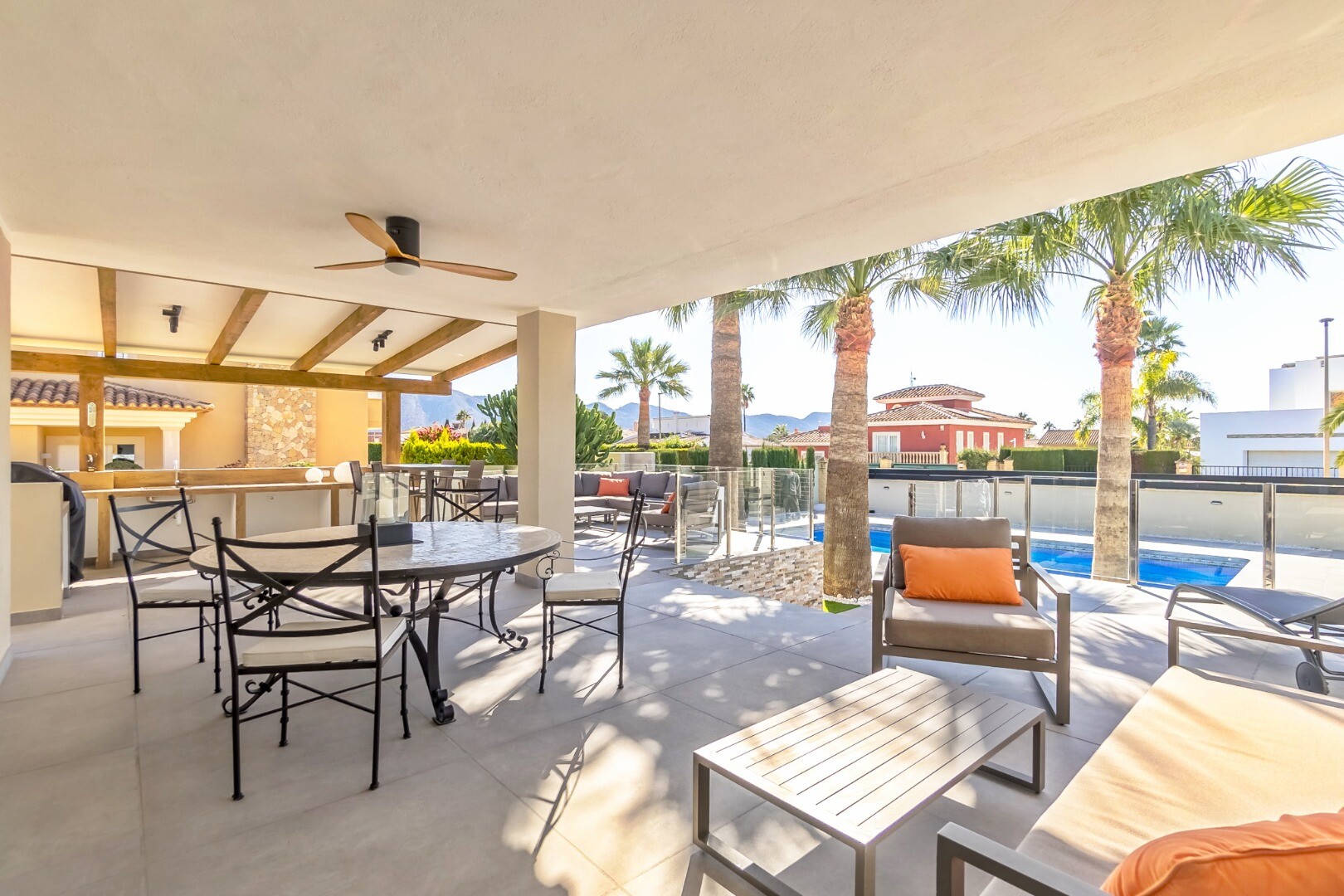 Complet renovată în 2023, această vilă modernă de 350 m² se află pe un teren privat de 1.250 m² într-o zonă rezidențială liniștită, la doar 10 minute de plajă și la 15 minute de Benidorm. Se vinde complet mobilată și gata de mutat.
