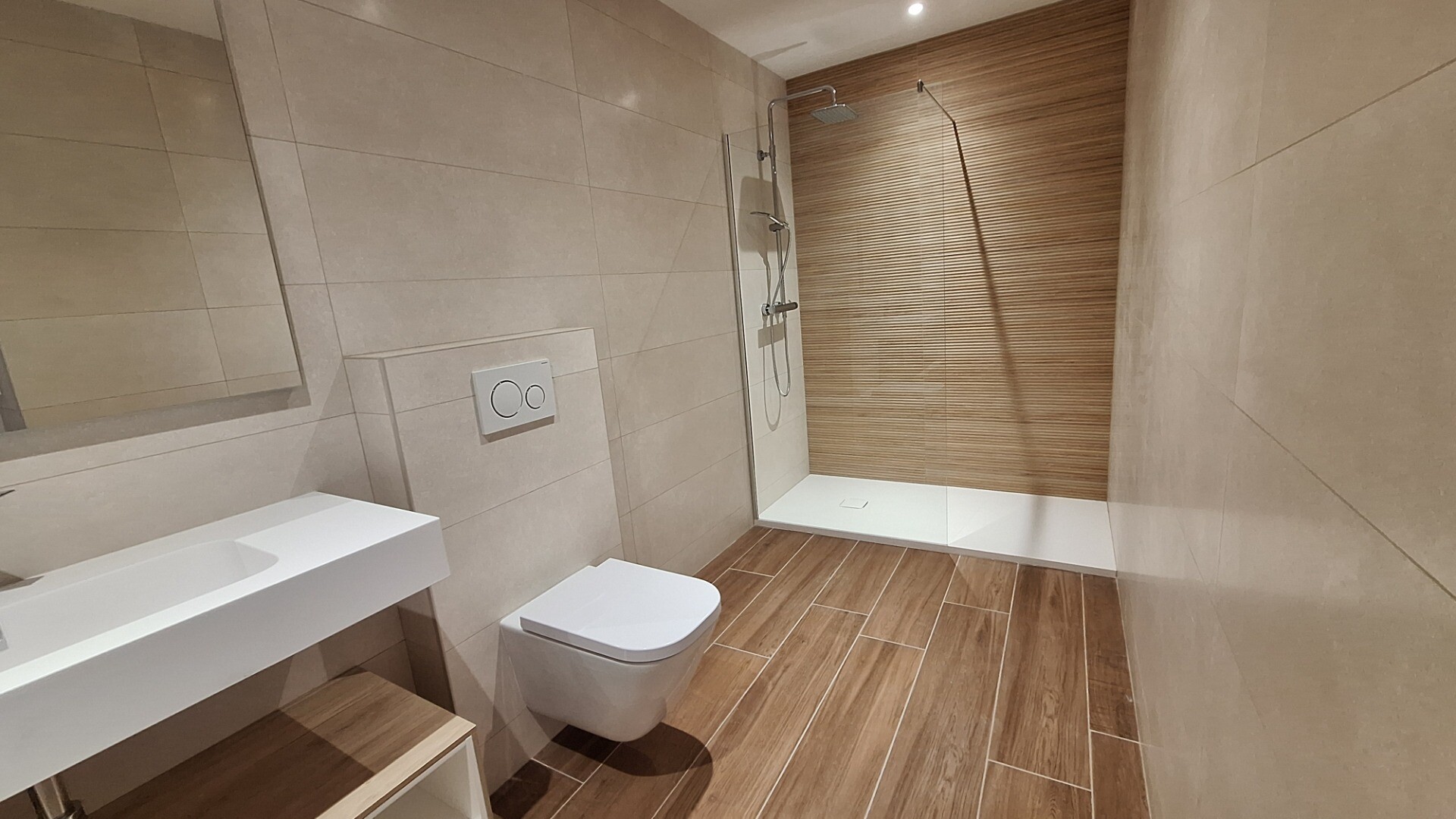 Dormitorul principal include o baie privată elegantă, care oferă o cadă cu vedere frumoasă și un duș spațios, în timp ce celelalte dormitoare oferă și acces direct la băi moderne.