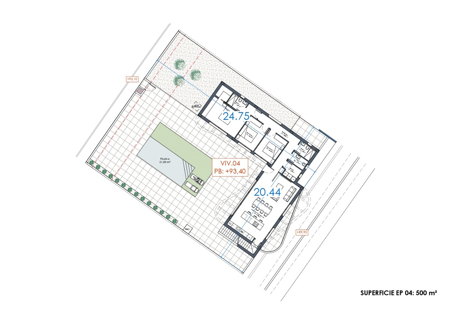 Sunt oferite trei modele de case în locații diferite. Casele de pe parcele mai mari au o piscină de 7x3m. Cele mai mici au o piscină de 6x3m. Casele de pe parcelele mai mari includ un subsol ca dotare standard, deși acesta este opțional pentru majoritatea. Casele au aer condiționat preinstalat prin conducte.